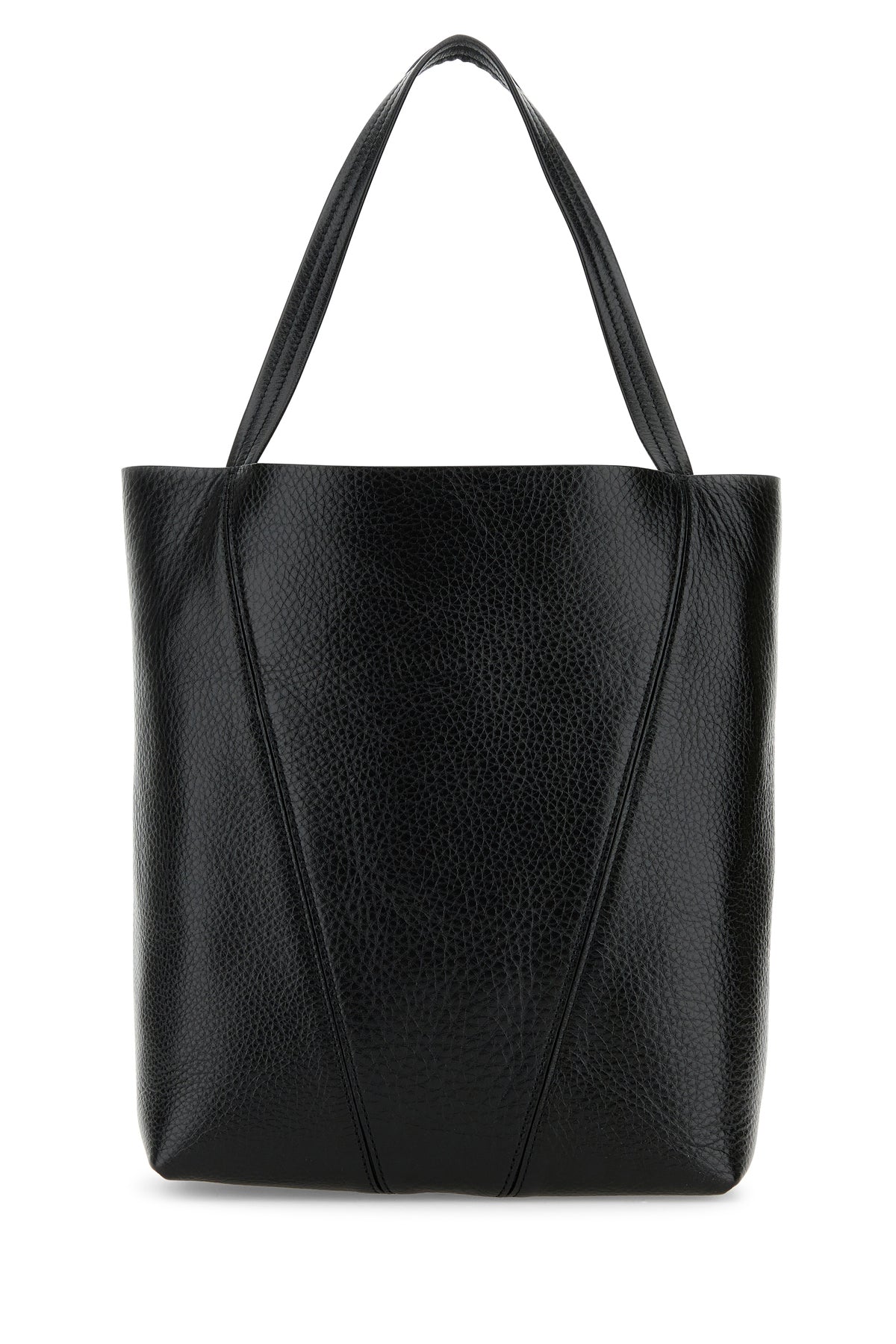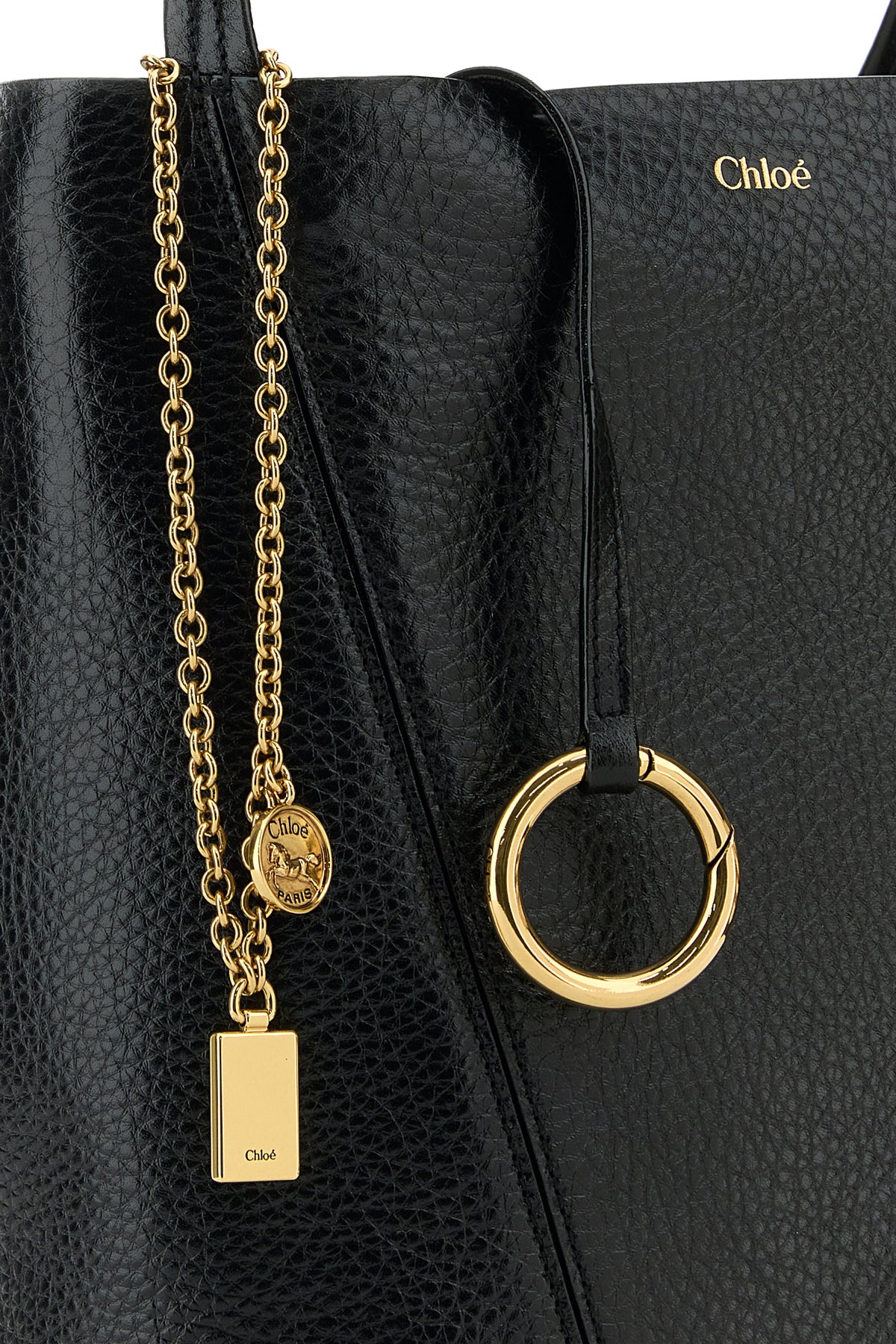 Shopping bag realized in pebble calf leather characterized by laminated printed logo at the front enriched by detachable metal accessory with logoed charms.