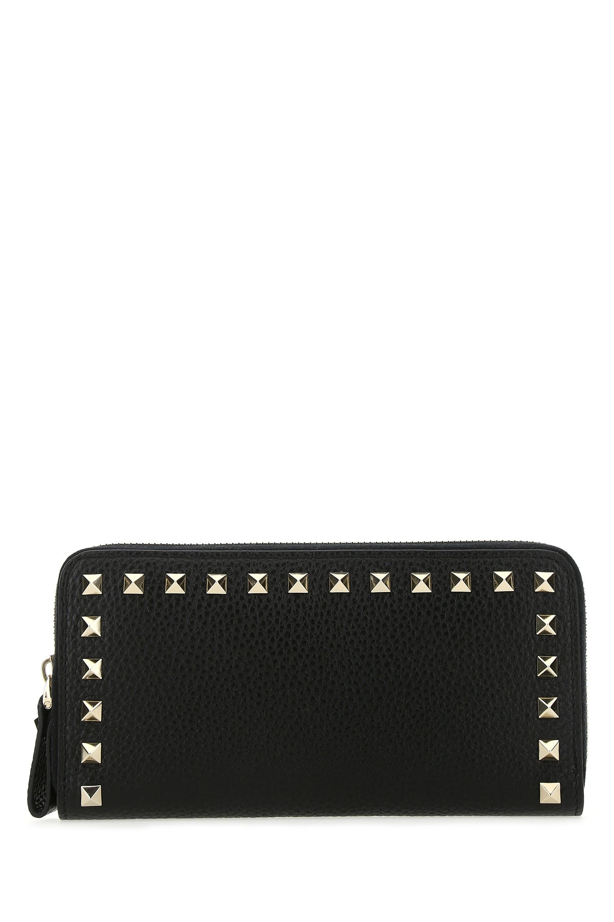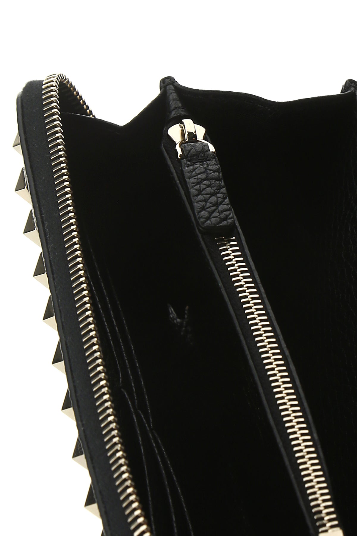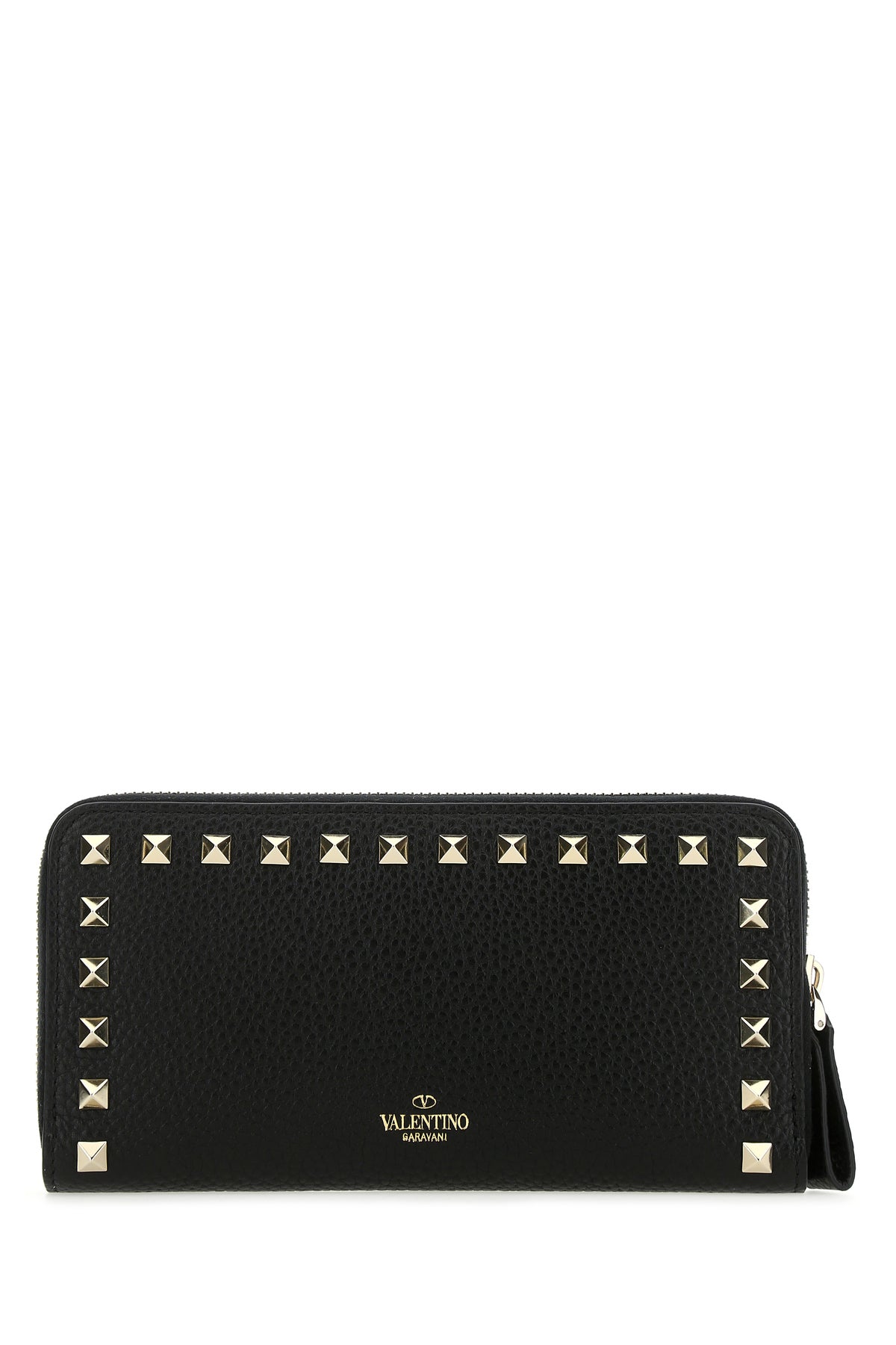 Wallet realized in pebble calf leather characterized by contrasting logoed print at the back enriched by decorative studs on the trimmings.