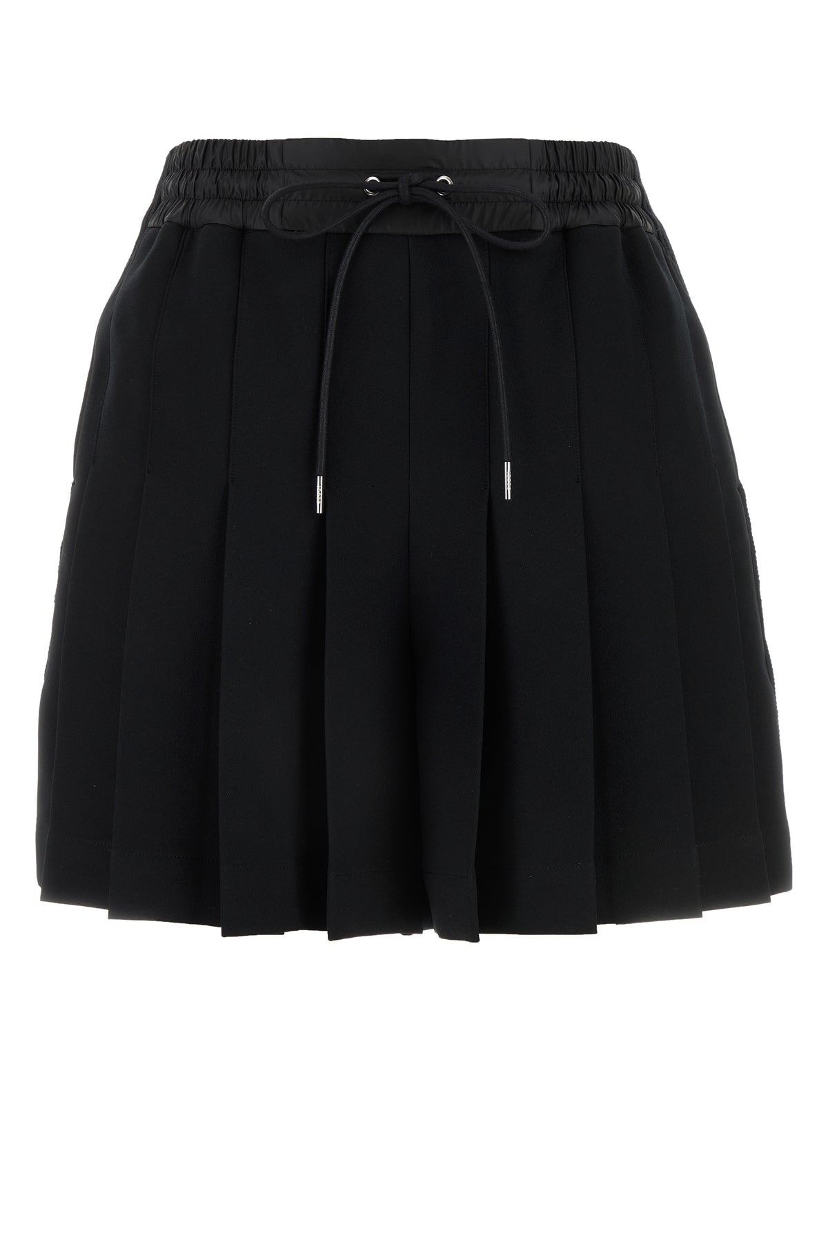 Pleated shorts realized in polyester characterized by elastic was it with drawstring.