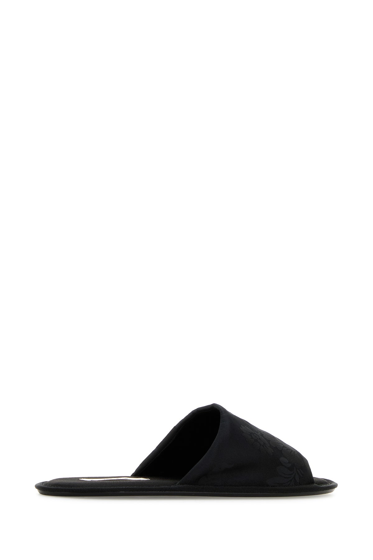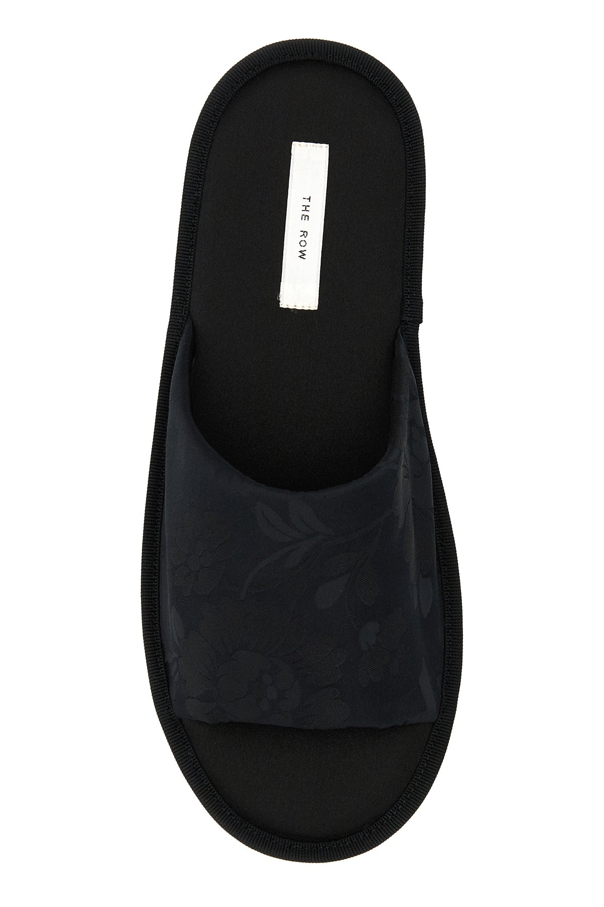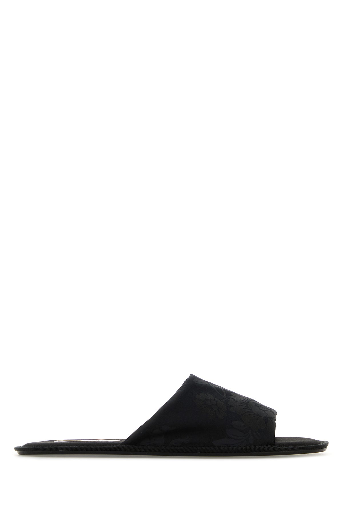 Slippers realized in satin characterized by tonal peculiar embroideries on the entire surface.