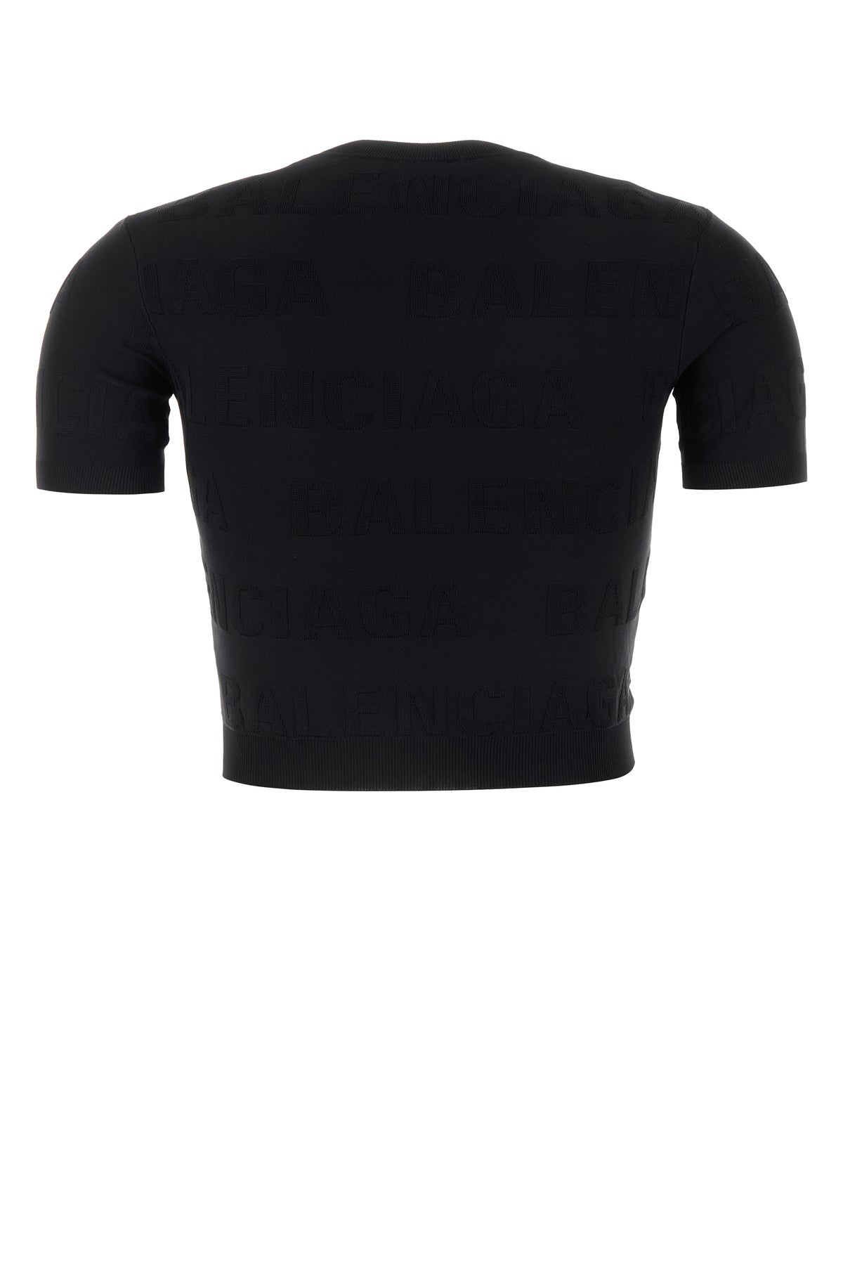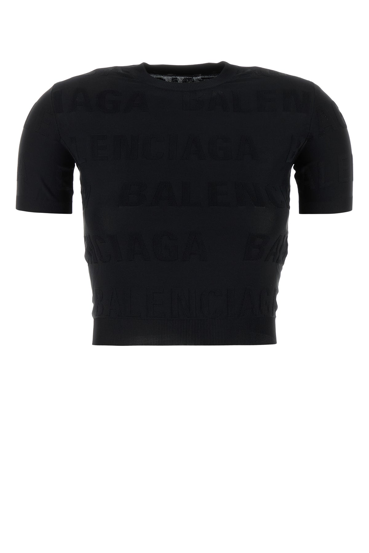 T-shirt realized in stretch viscose blend characterized by tonal logoed embroideries on the entire surface.