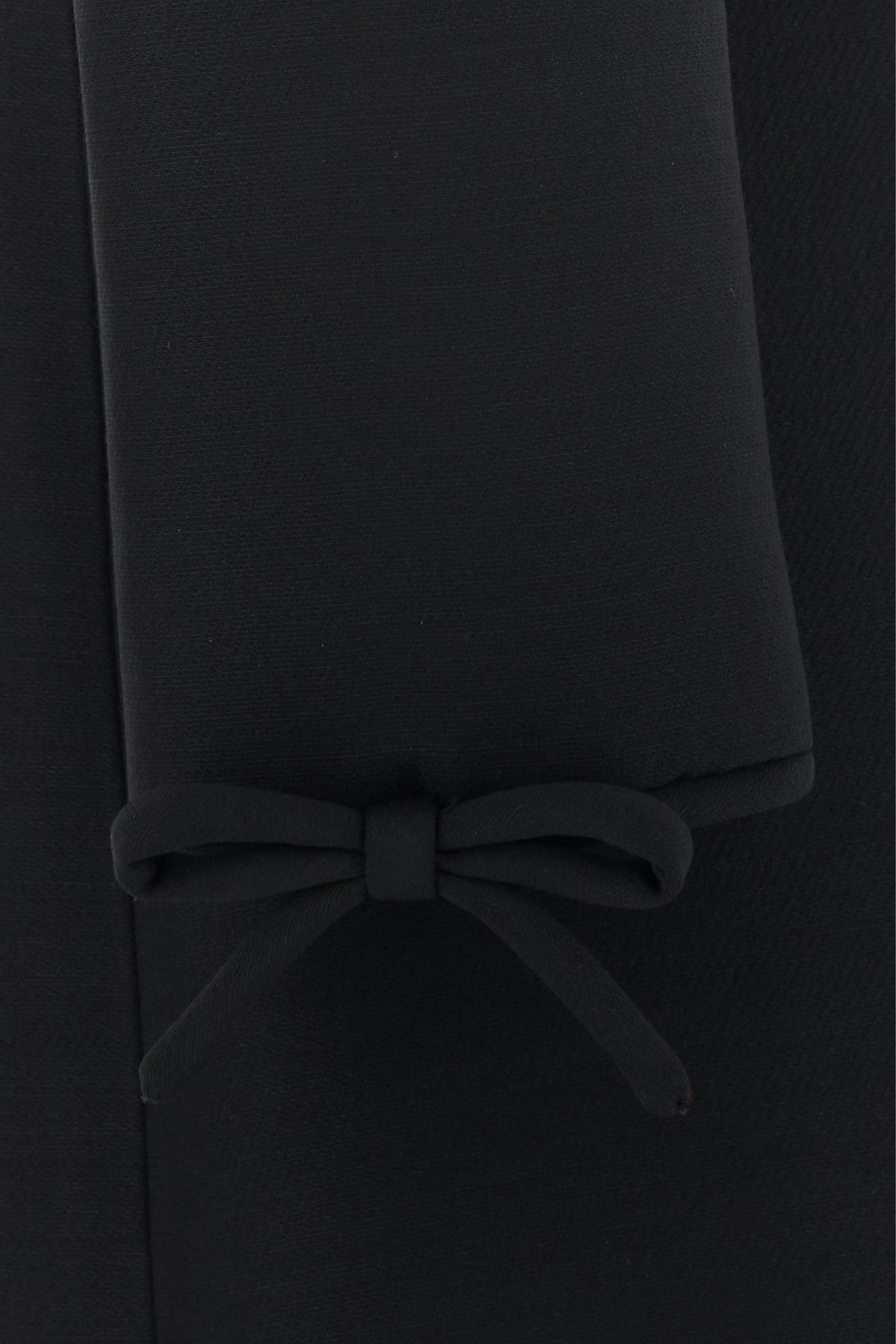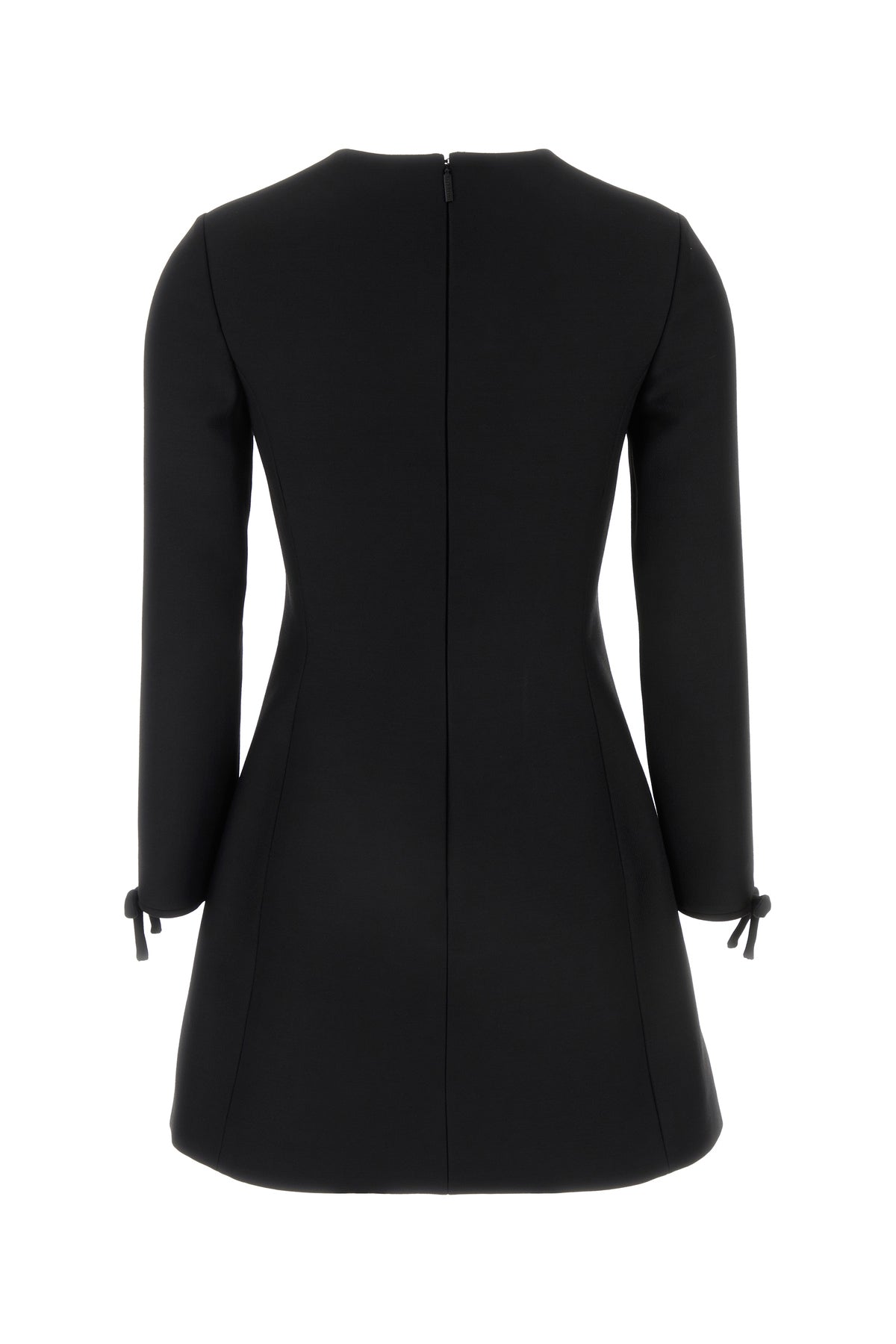 Dress realized in virgin wool and silk enriched by decorative bows on the cuffs.