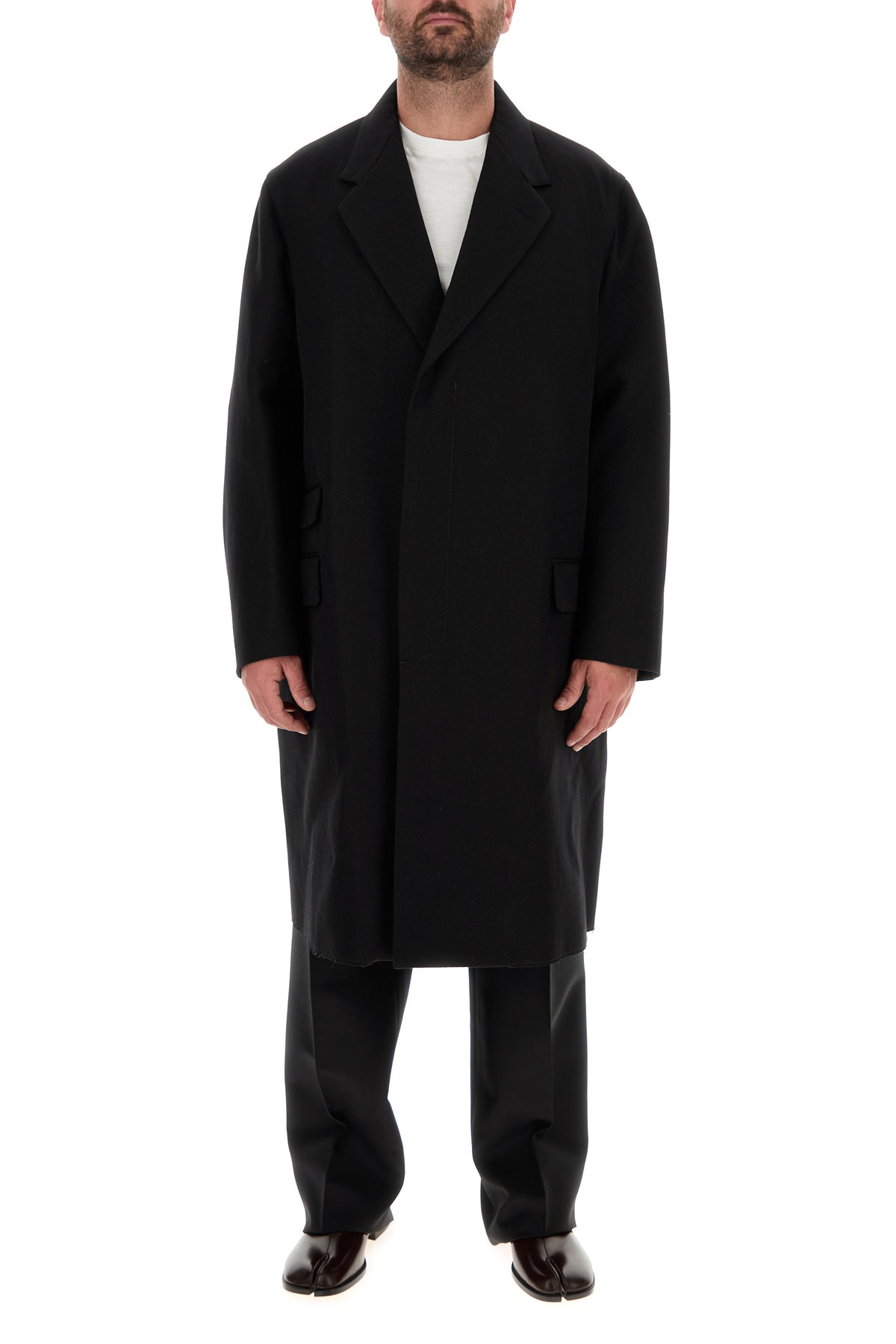 - Concealed zip and single visible button closure