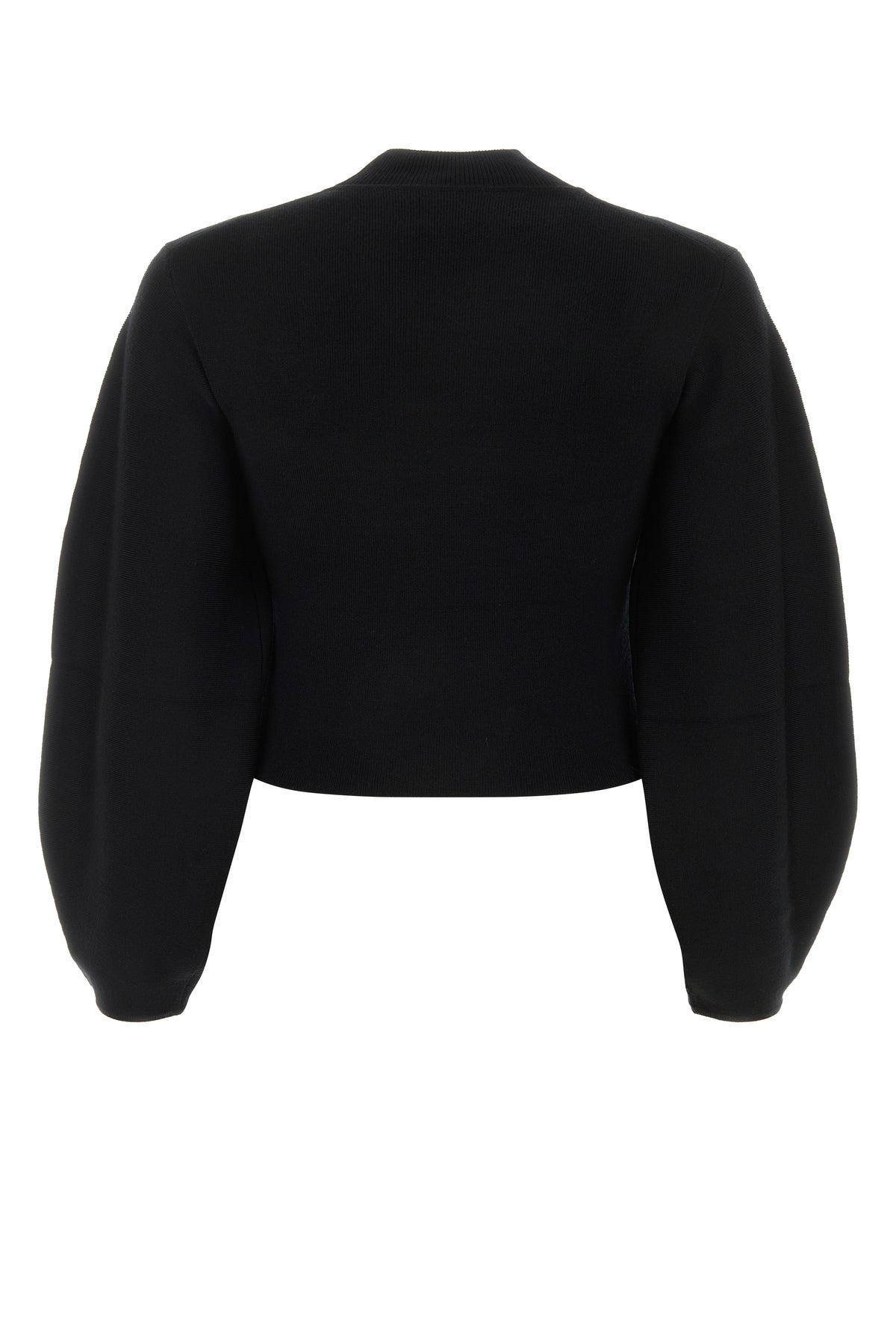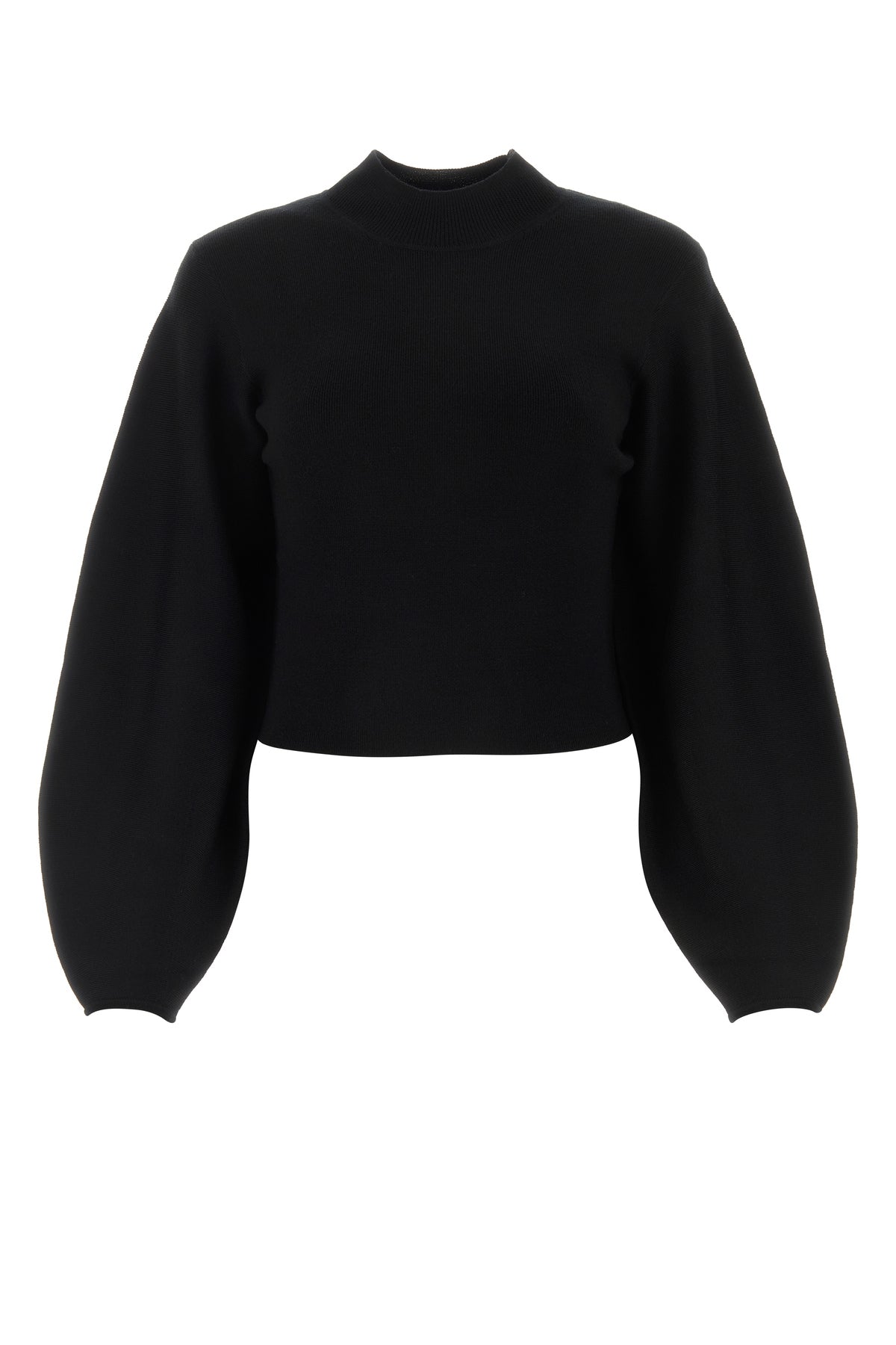 Cropped cut sweater realized in pure wool characterized by maxi sleeves.