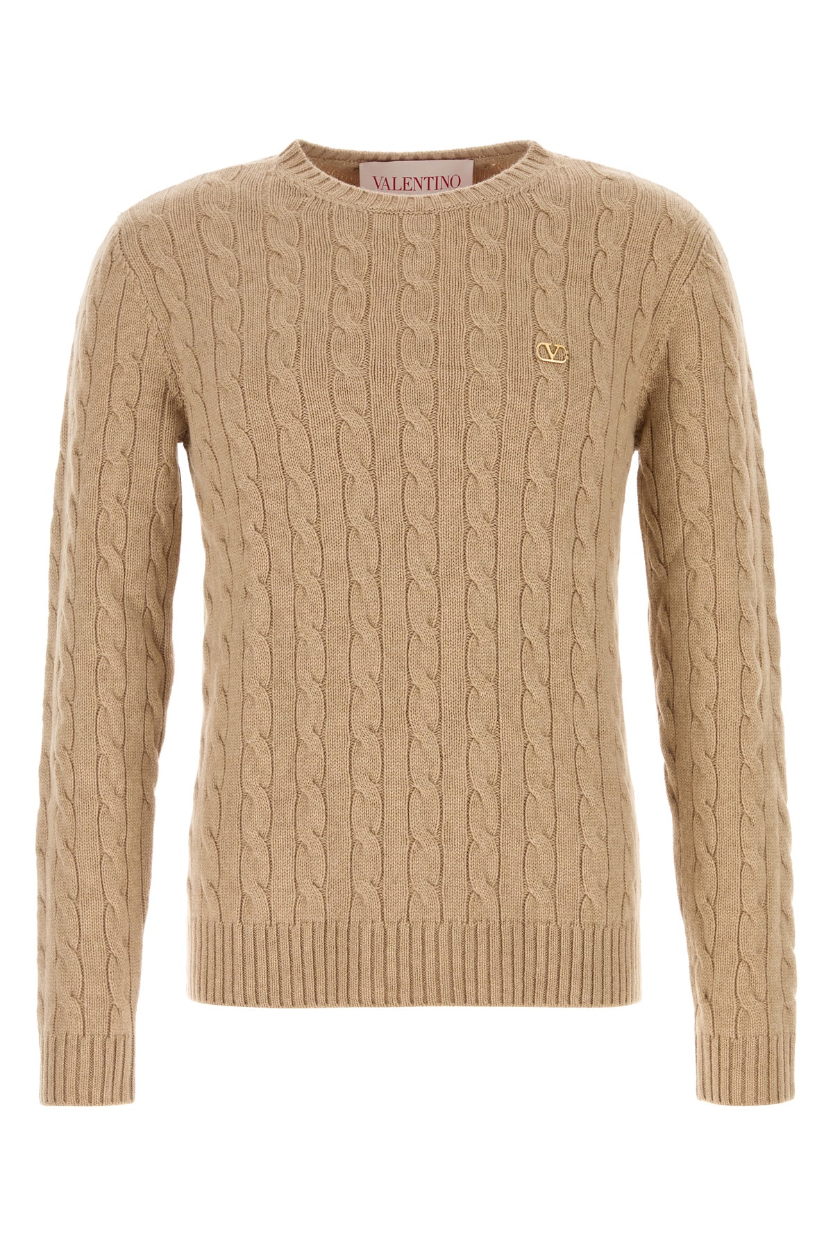 Knitted sweater realized in pure cashmere enriched by VLogo Signature metal detail on the chest.