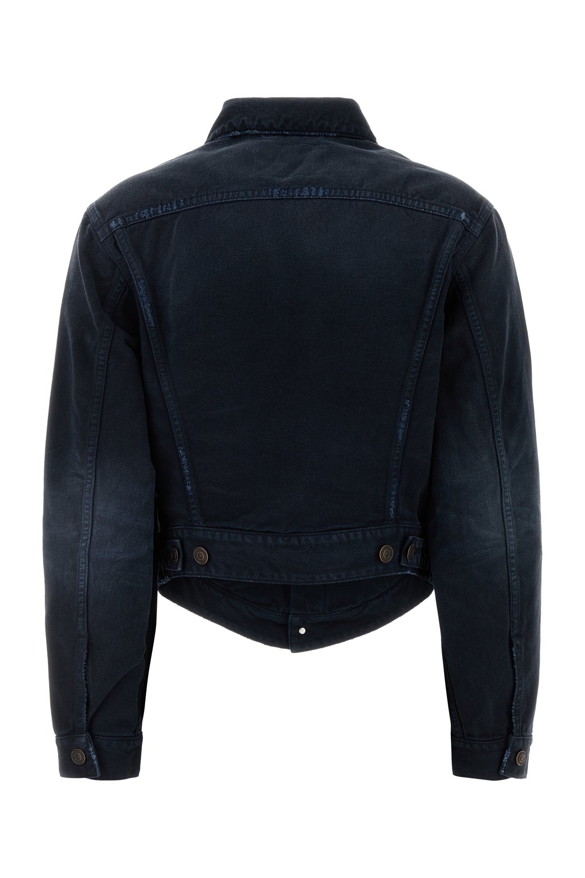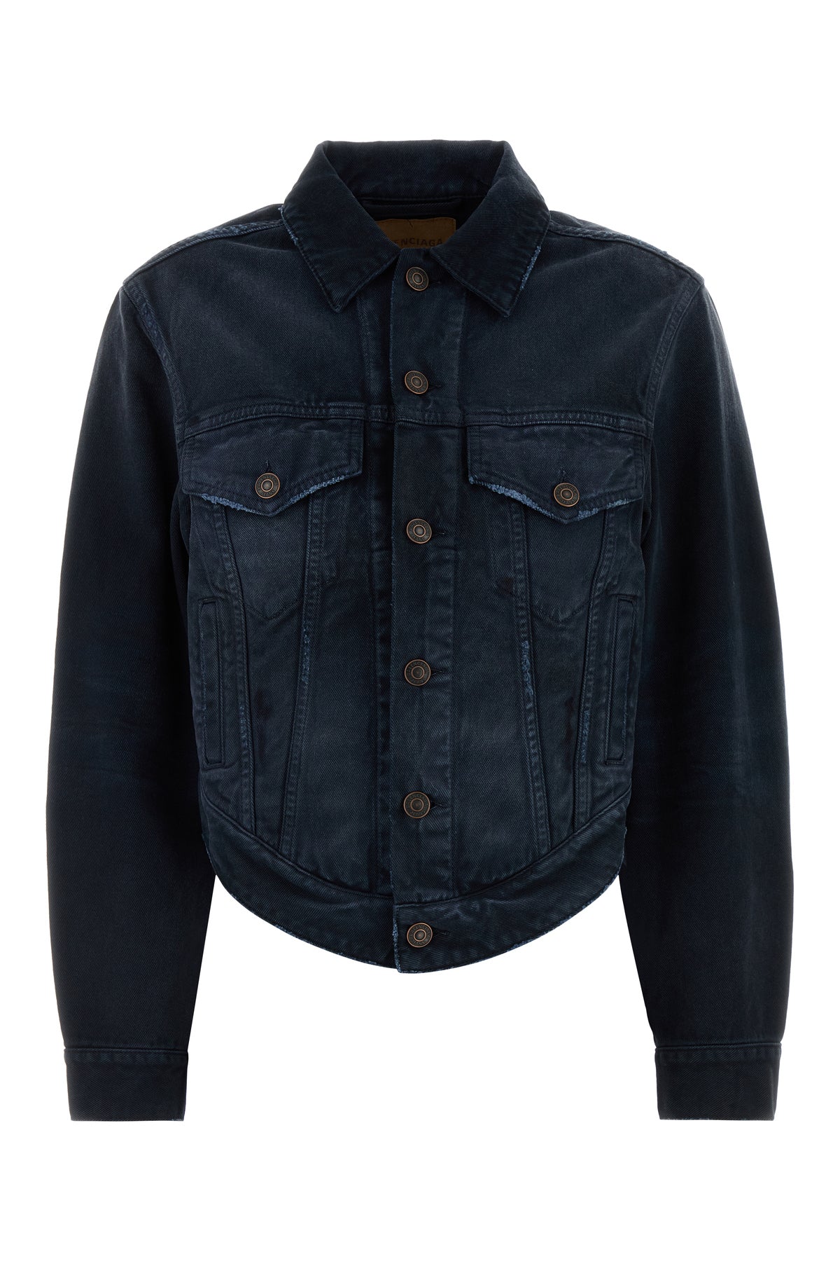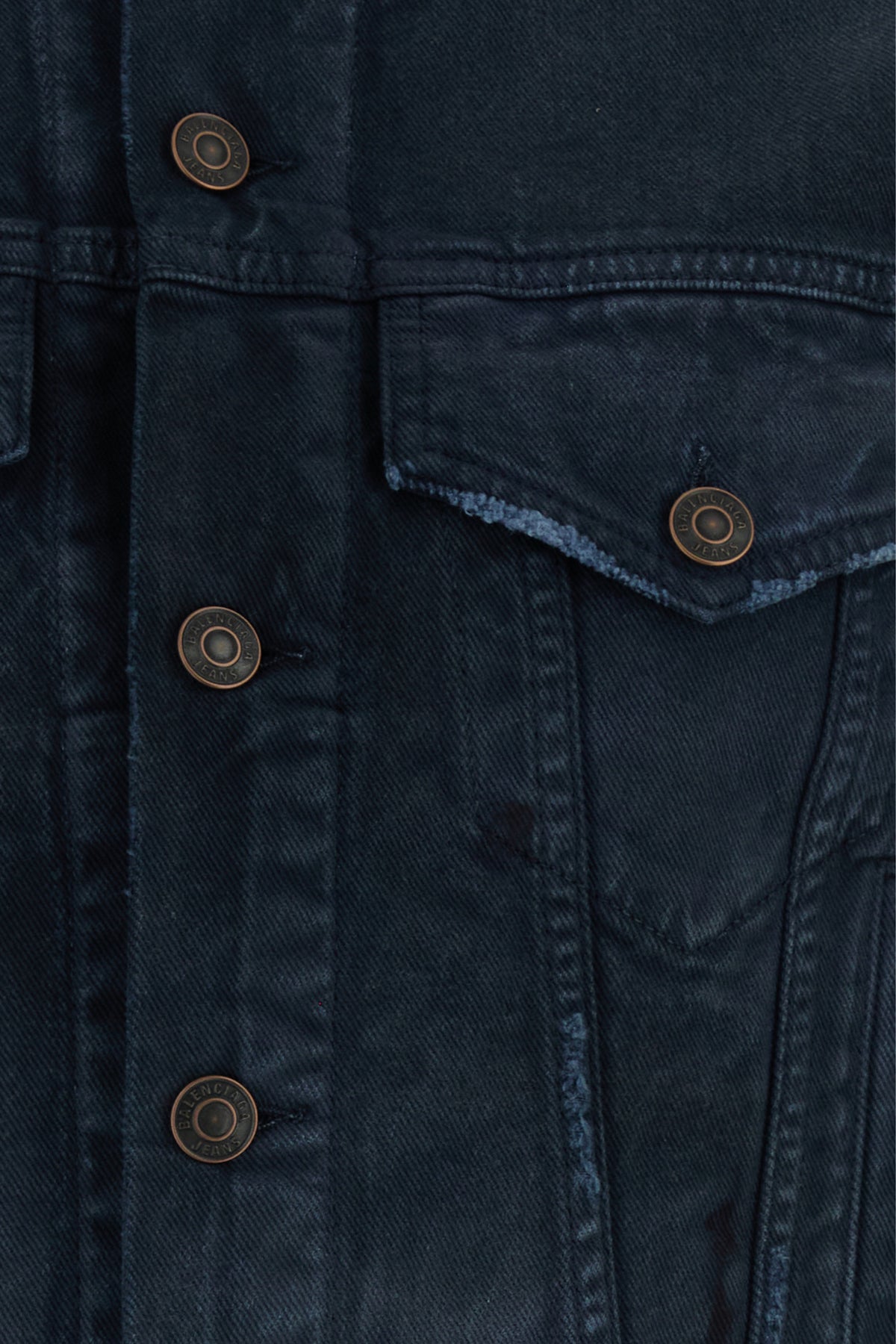 Jacket realized in stonewashed and distressed pure cotton denim characterized by rounded hemline.