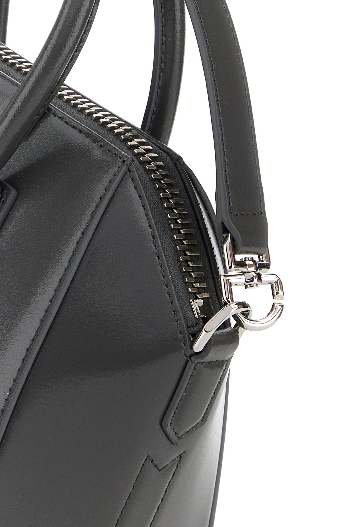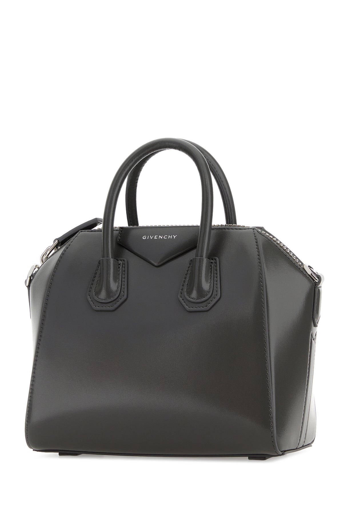 Handbag realized in smooth calf leather characterized by laminated printed logo at the front.