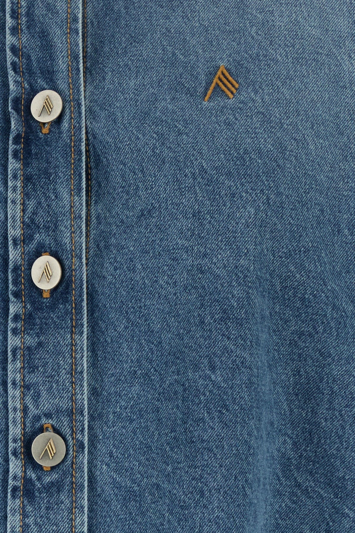 Oversize shirt realized in pure cotton denim characterized by contrasting embroidered logo on the chest.