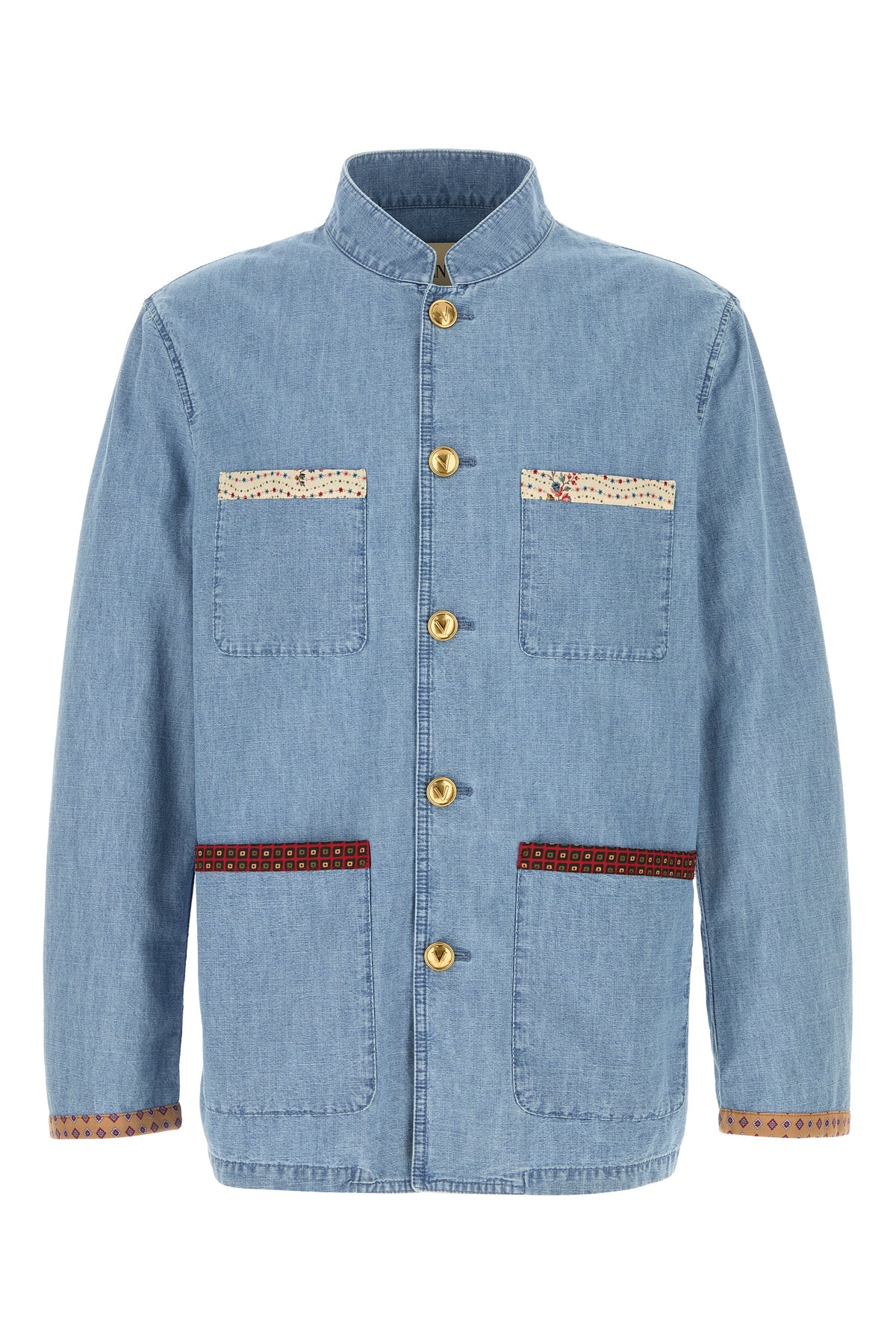 Shirt realized in pure cotton denim enriched by peculiar patches on the chest pockets and on the patch pockets at the front.