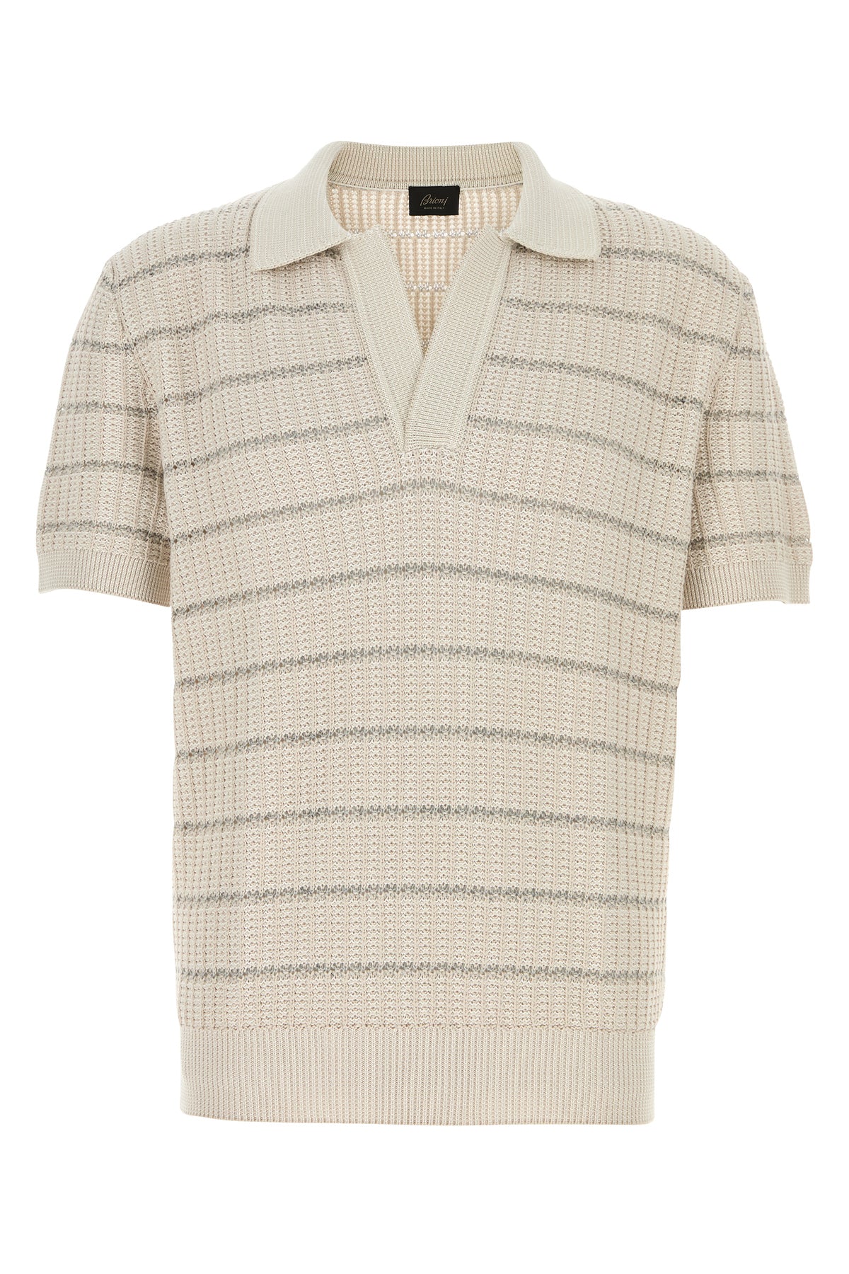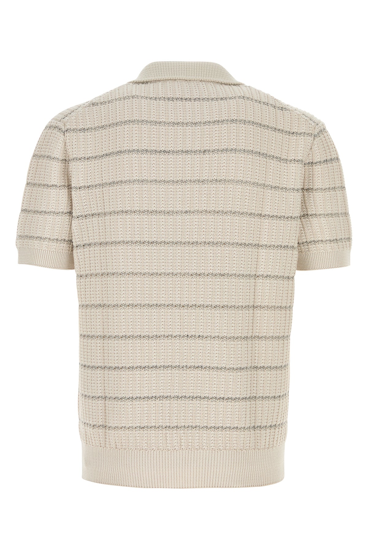 Polo shirt realized in cotton and linen characterized by striped embroidery on the entire surface.