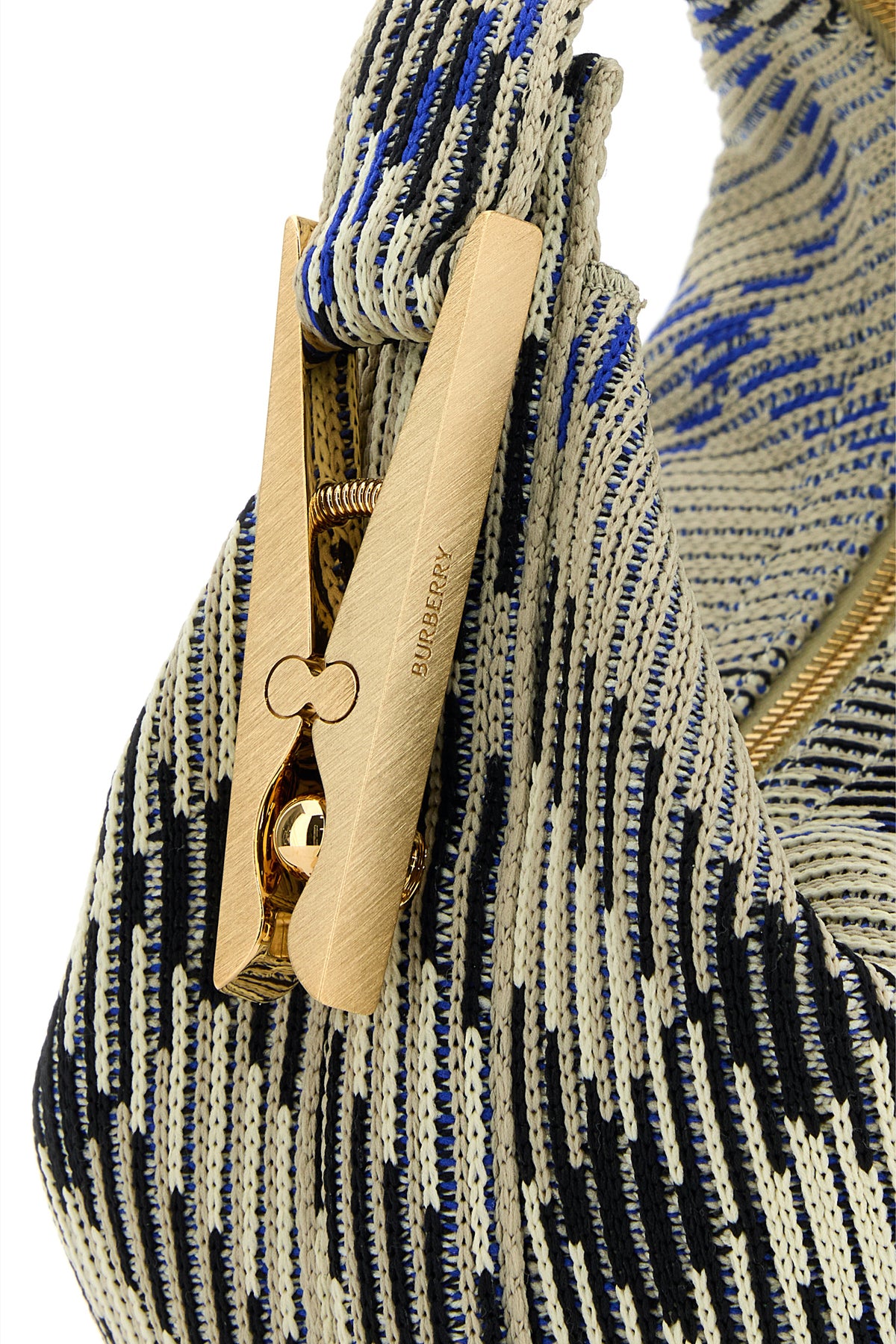 Handbag realized in nylon characterized by Check embroidery on the entire surface enriched by metal detail on the side.