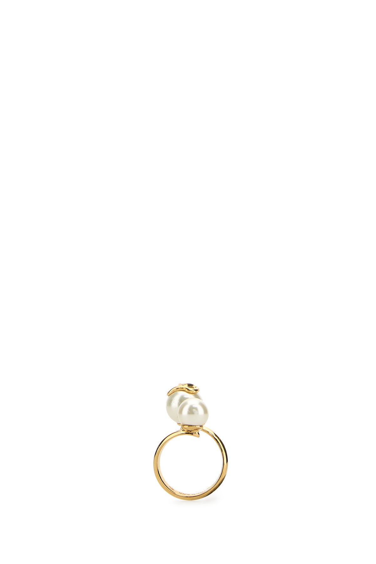 Ring realized in gold-tone plated metal enriched by pearls with metal VLogo detail.
