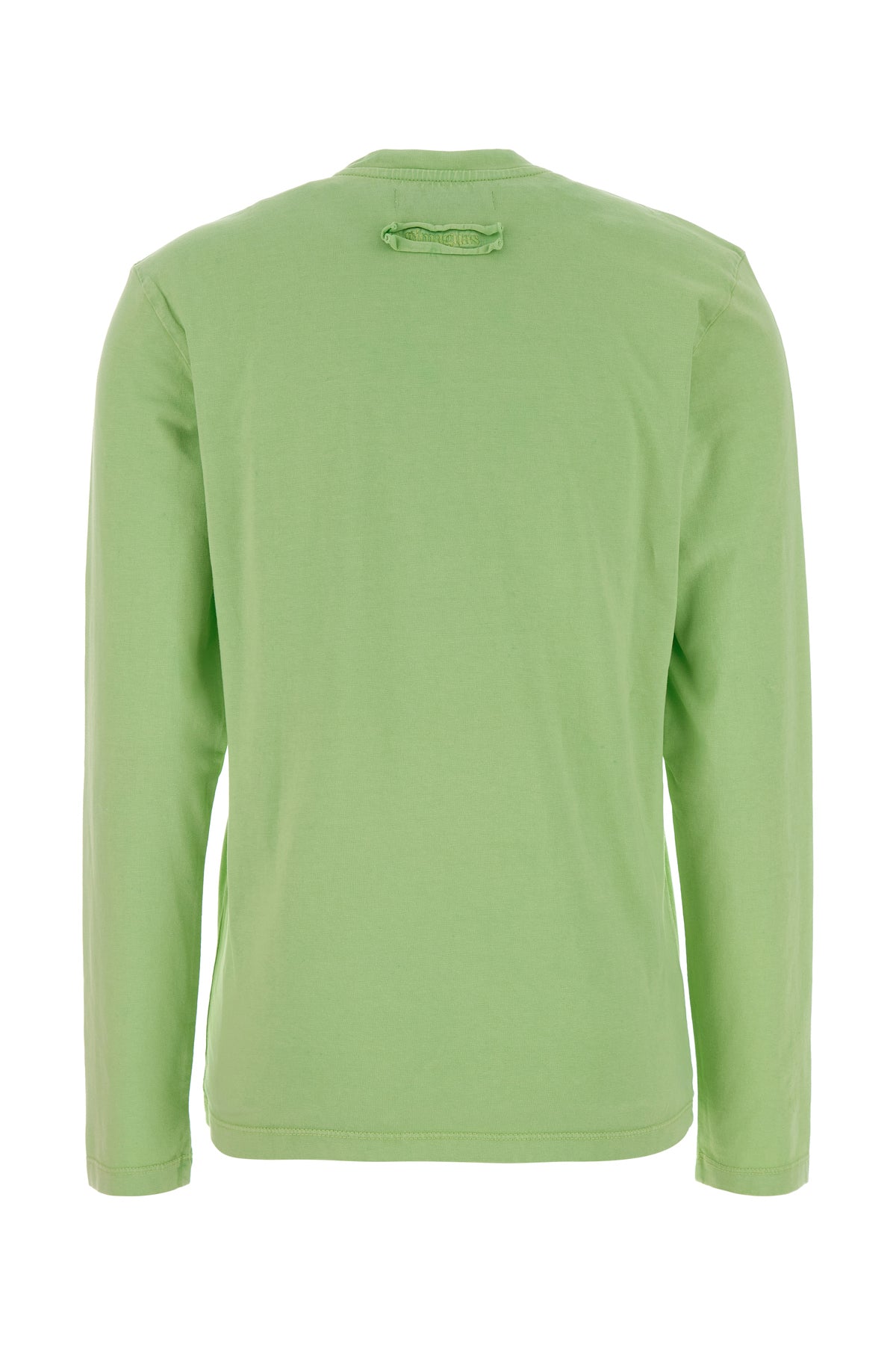 Long-sleeves t-shirt realized in stonewashed effect pure cotton enriched by logoed label at the back.