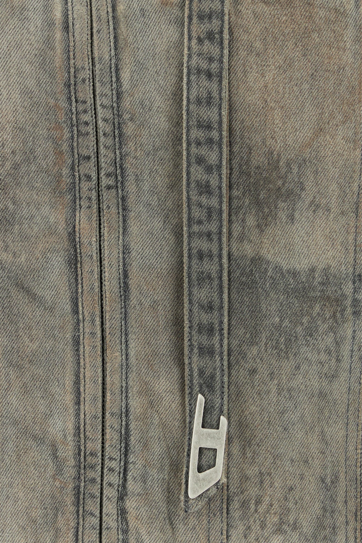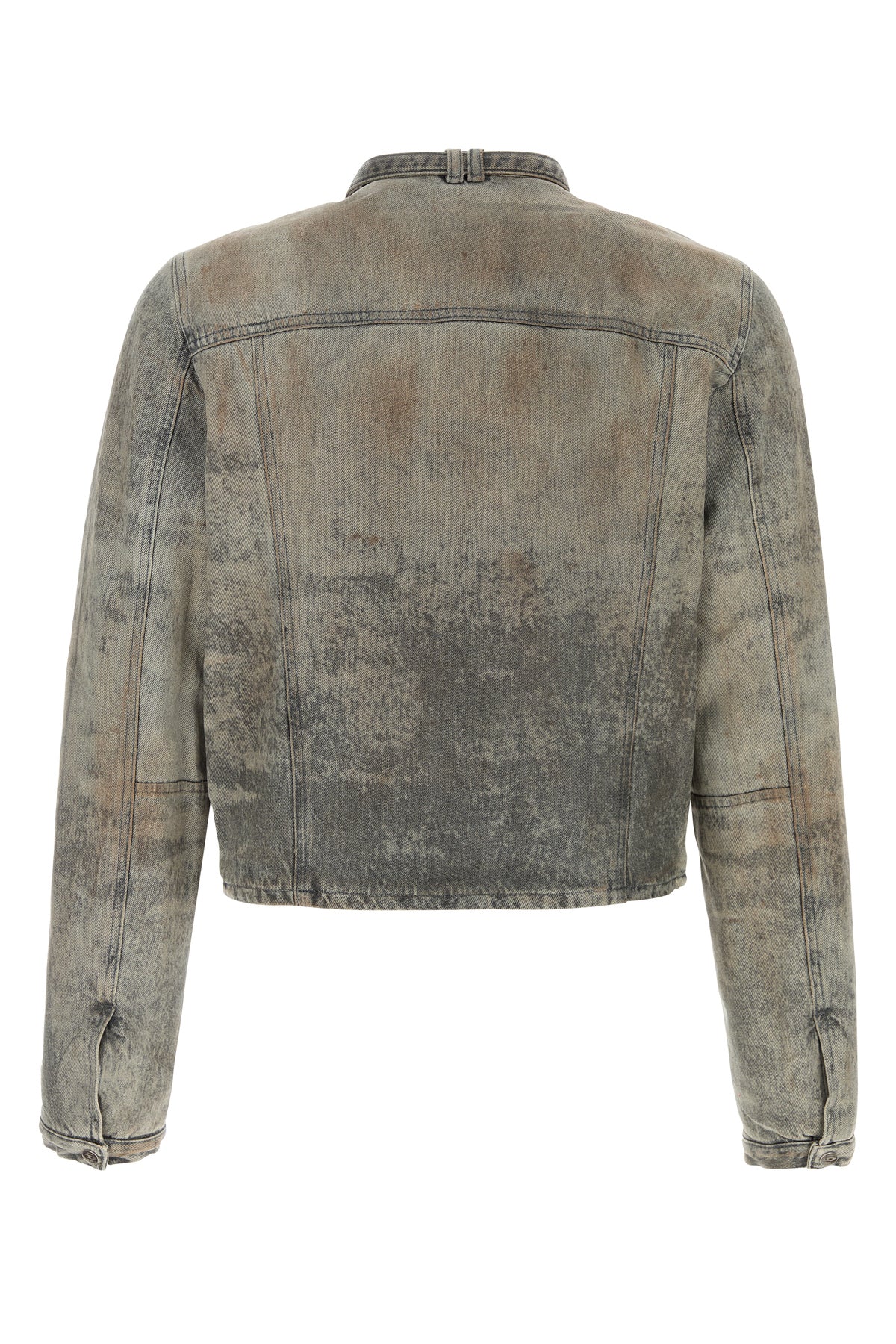 Jacket realized in stonewashed and distressed cotton and hemp denim enriched by strap with D metal detail on the crew-neck.
