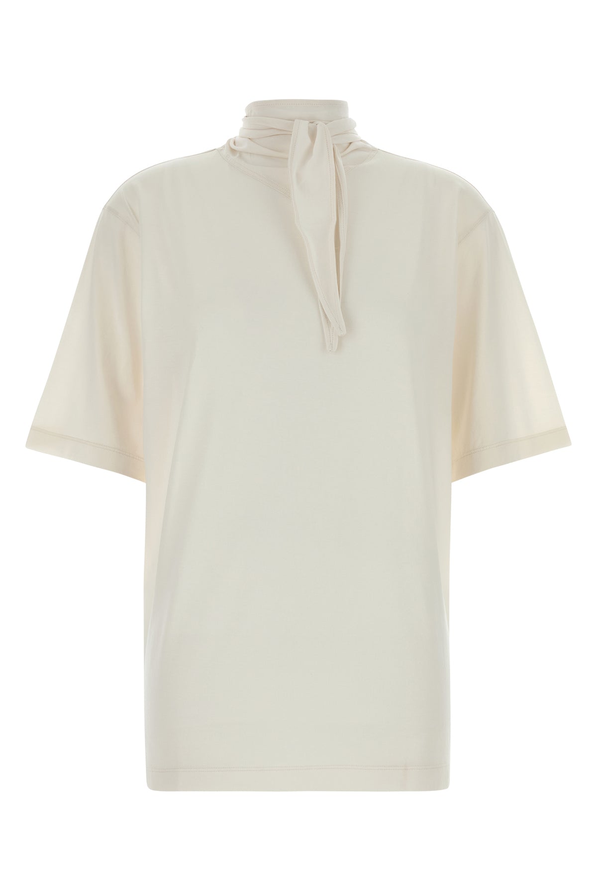 T-shirt realized in pure cotton characterized by laces to tie on the neck.