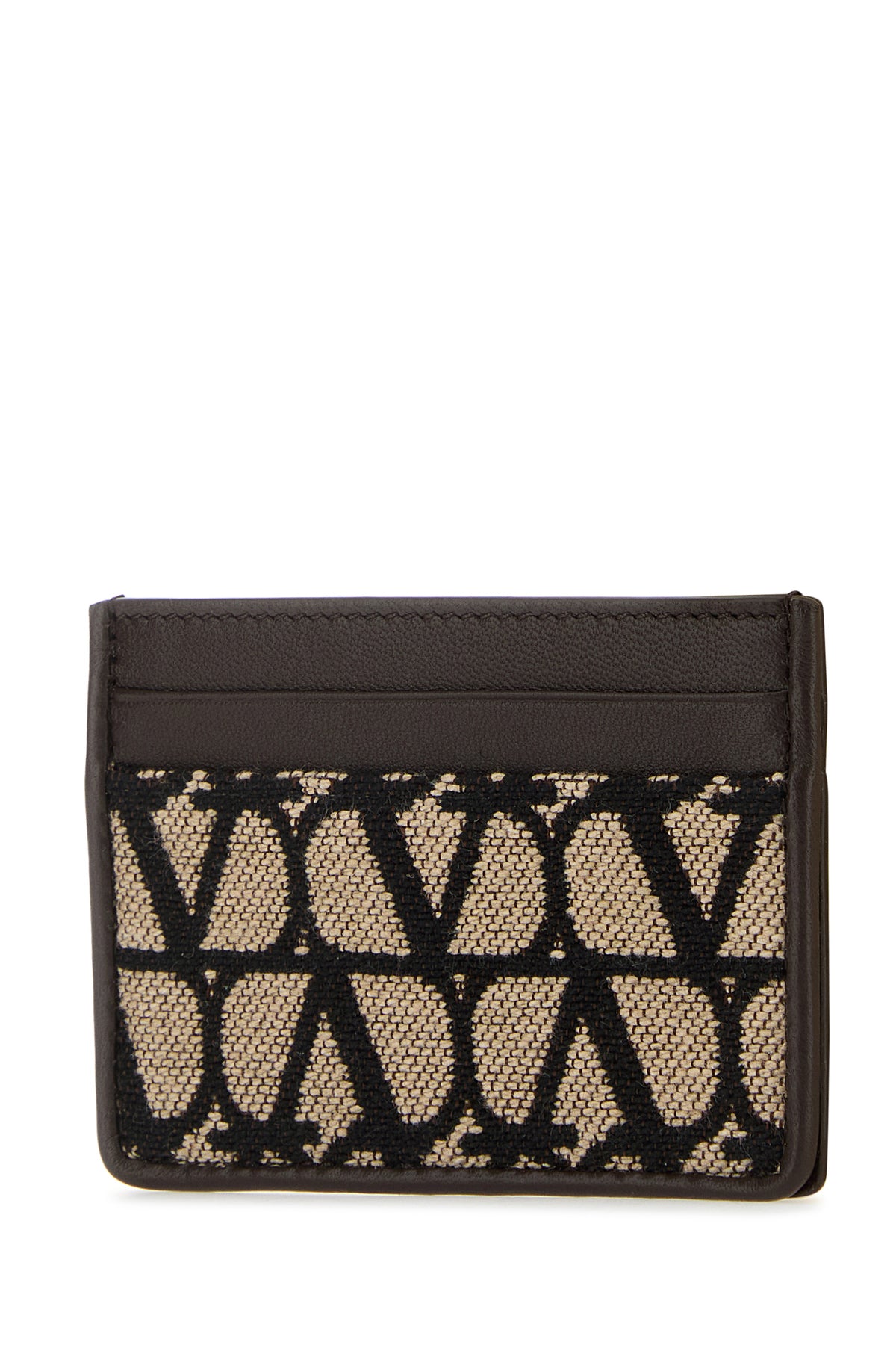 Card holder realized in slightly pebble calf leather and Toile Iconographe fabric.