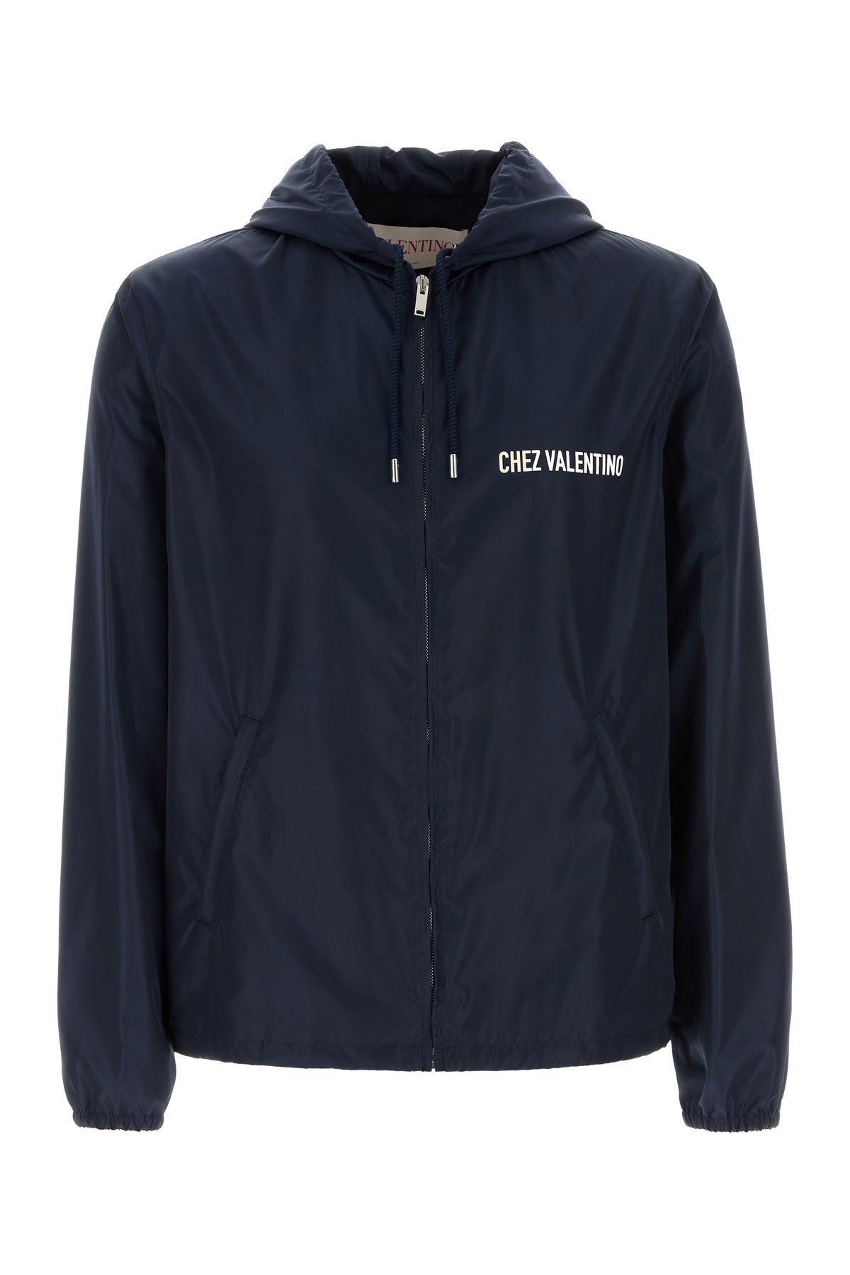 Jacket realized in nylon characterized by contrasting printed logo on the chest.
