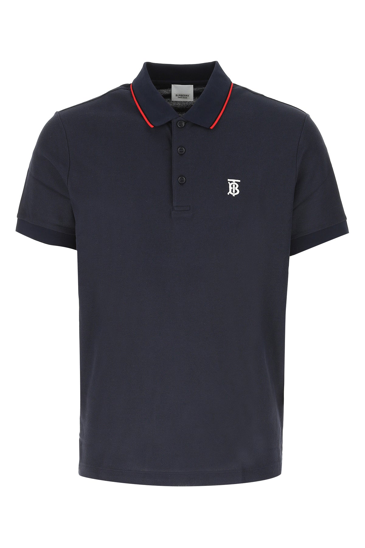 Polo shirt realized in pure cotton piquet characterized by contrasting embroidered TB on the chest.