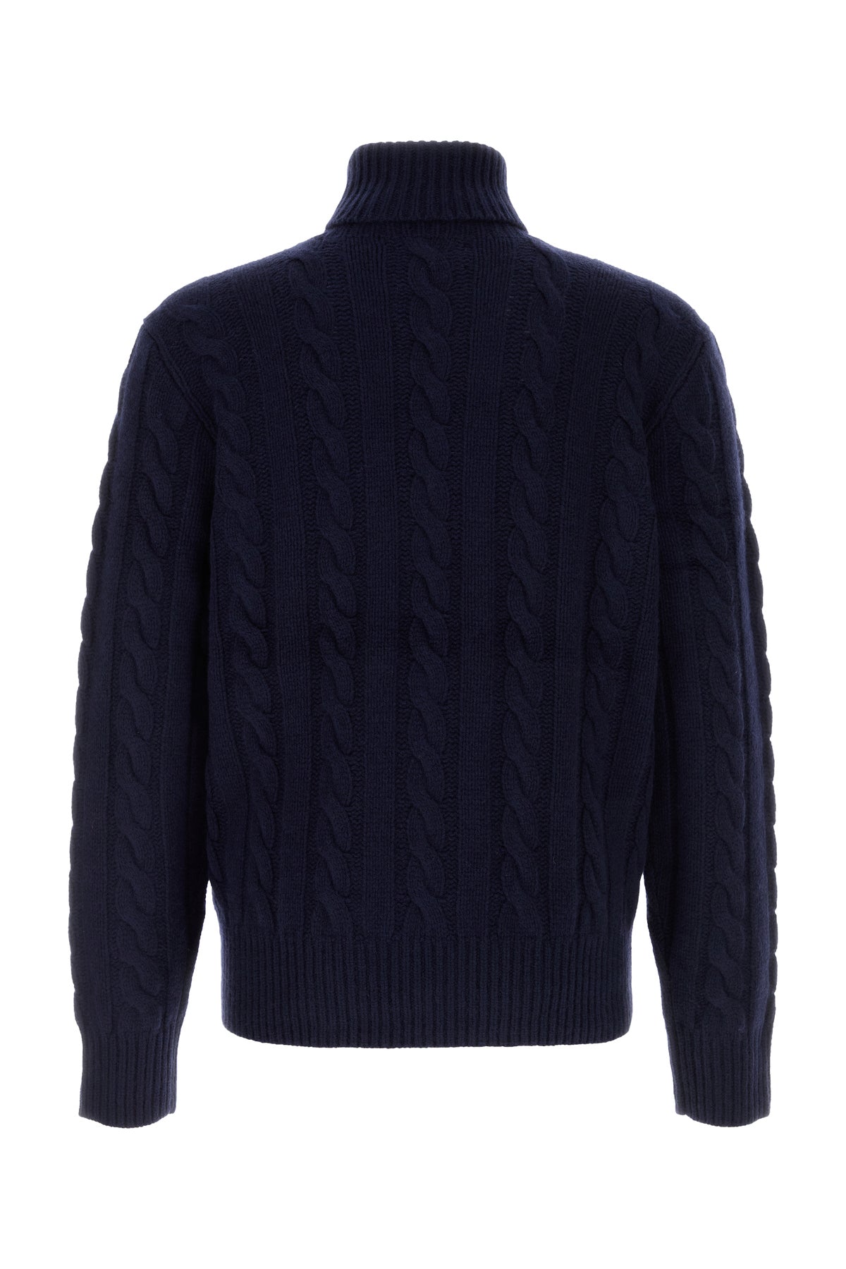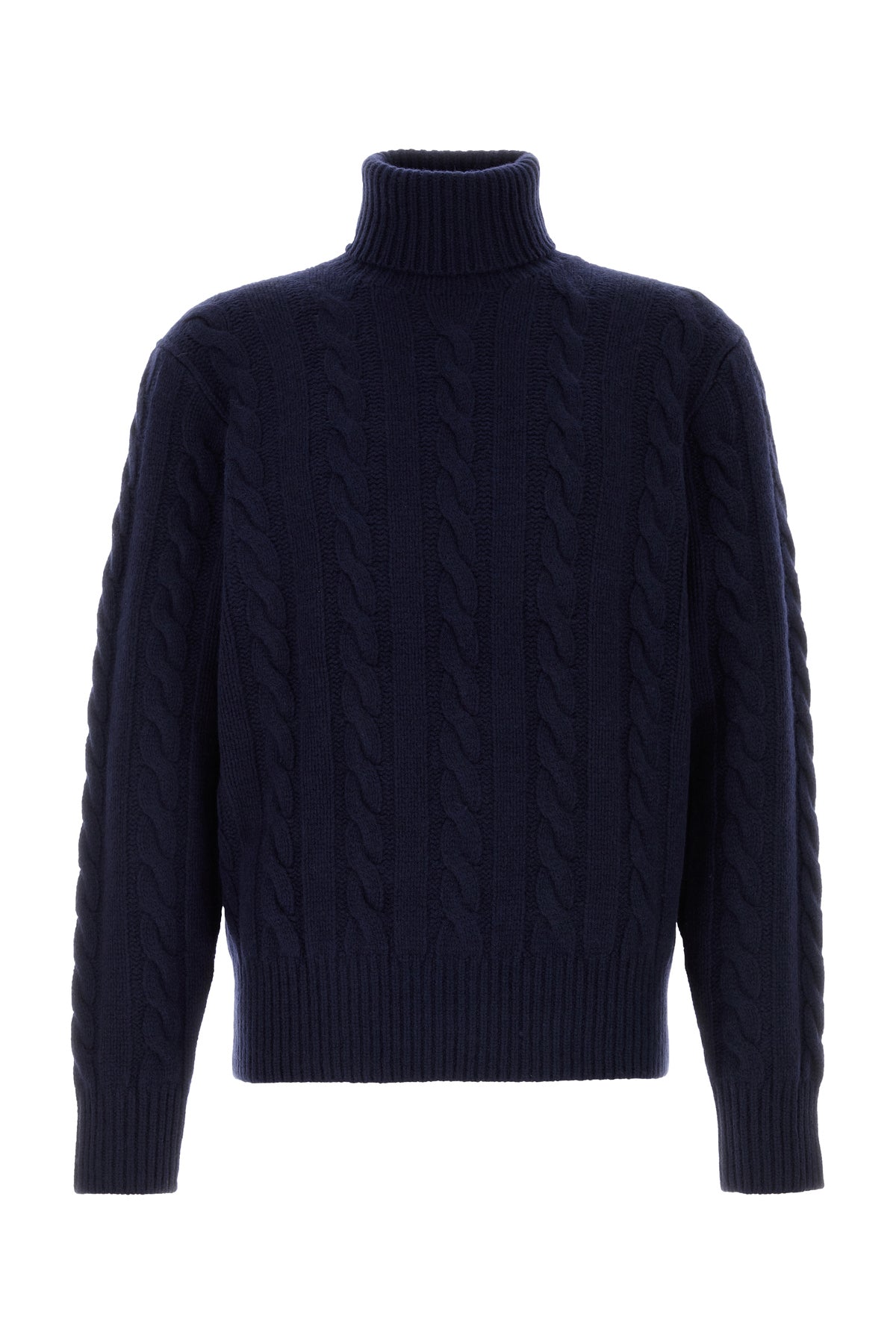 Sweater realized in wool and cashmere characterized by ribbed turtleneck, cuffs and hemline.