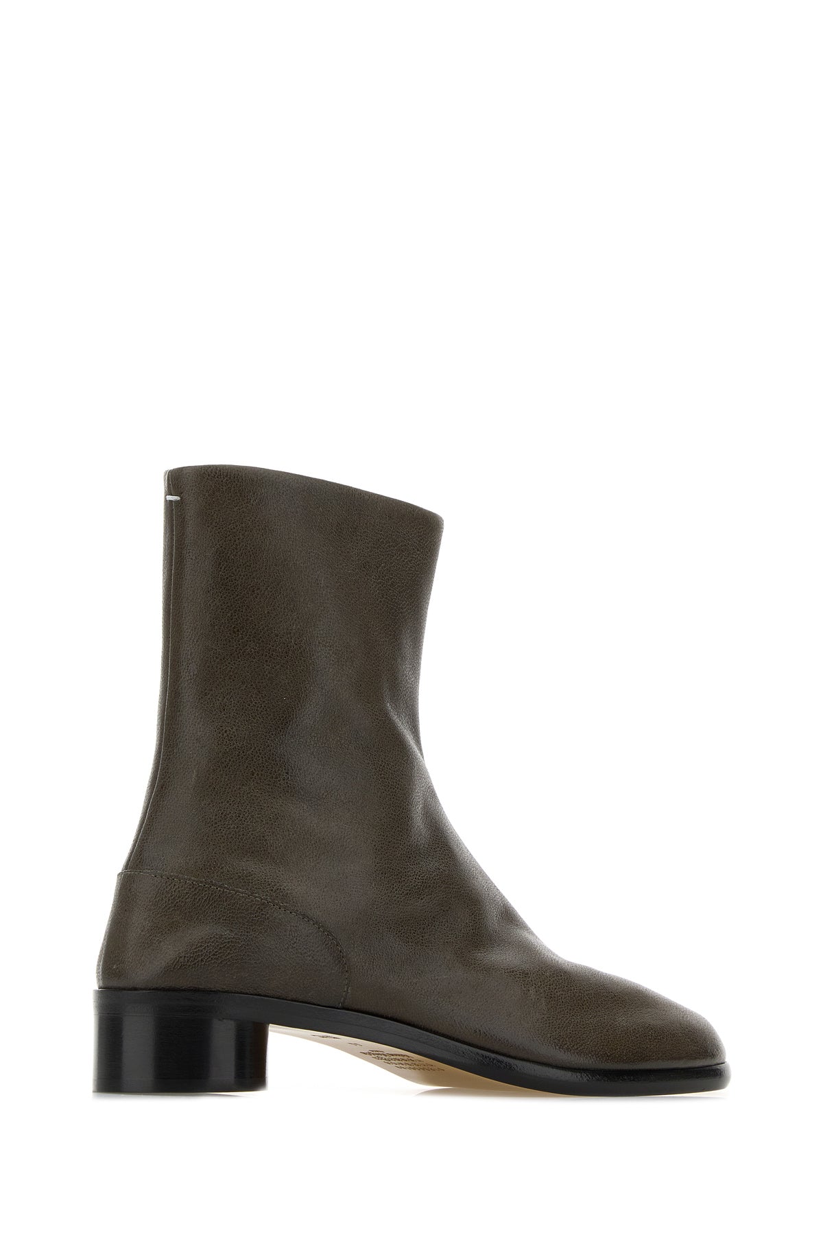 Ankle boots realized in pebble leather characterized by iconic moulded toe.