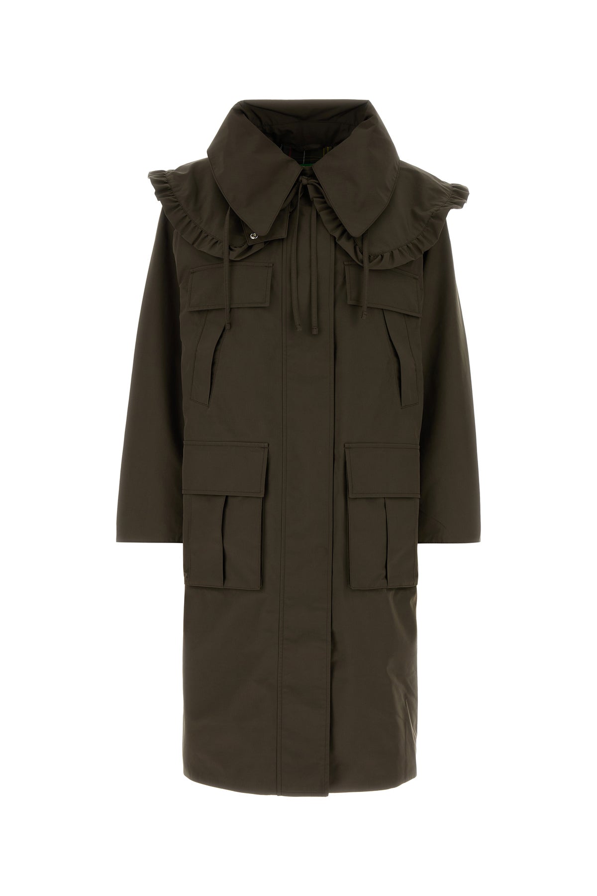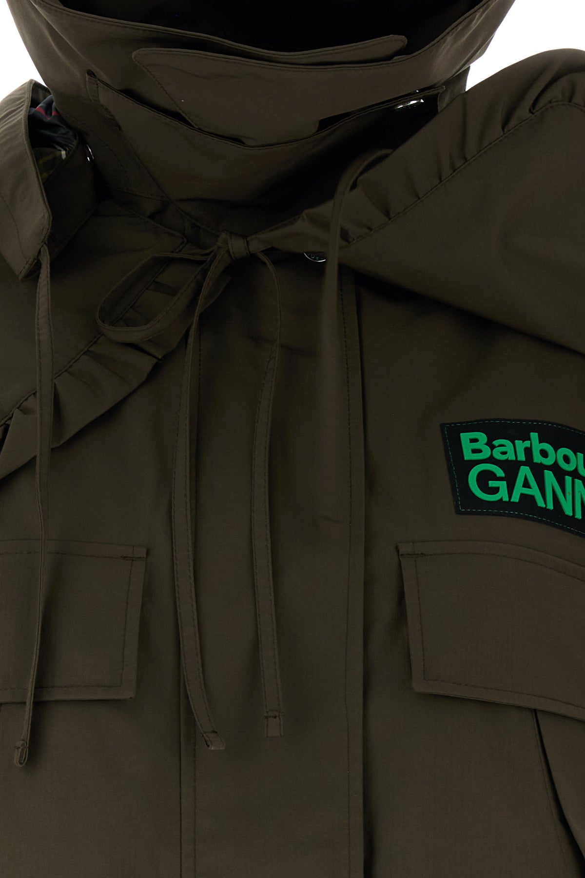 Parka coatto realized in coated polyester with tartan motif inserts enriched by Barbour Ganni patch on the chest.