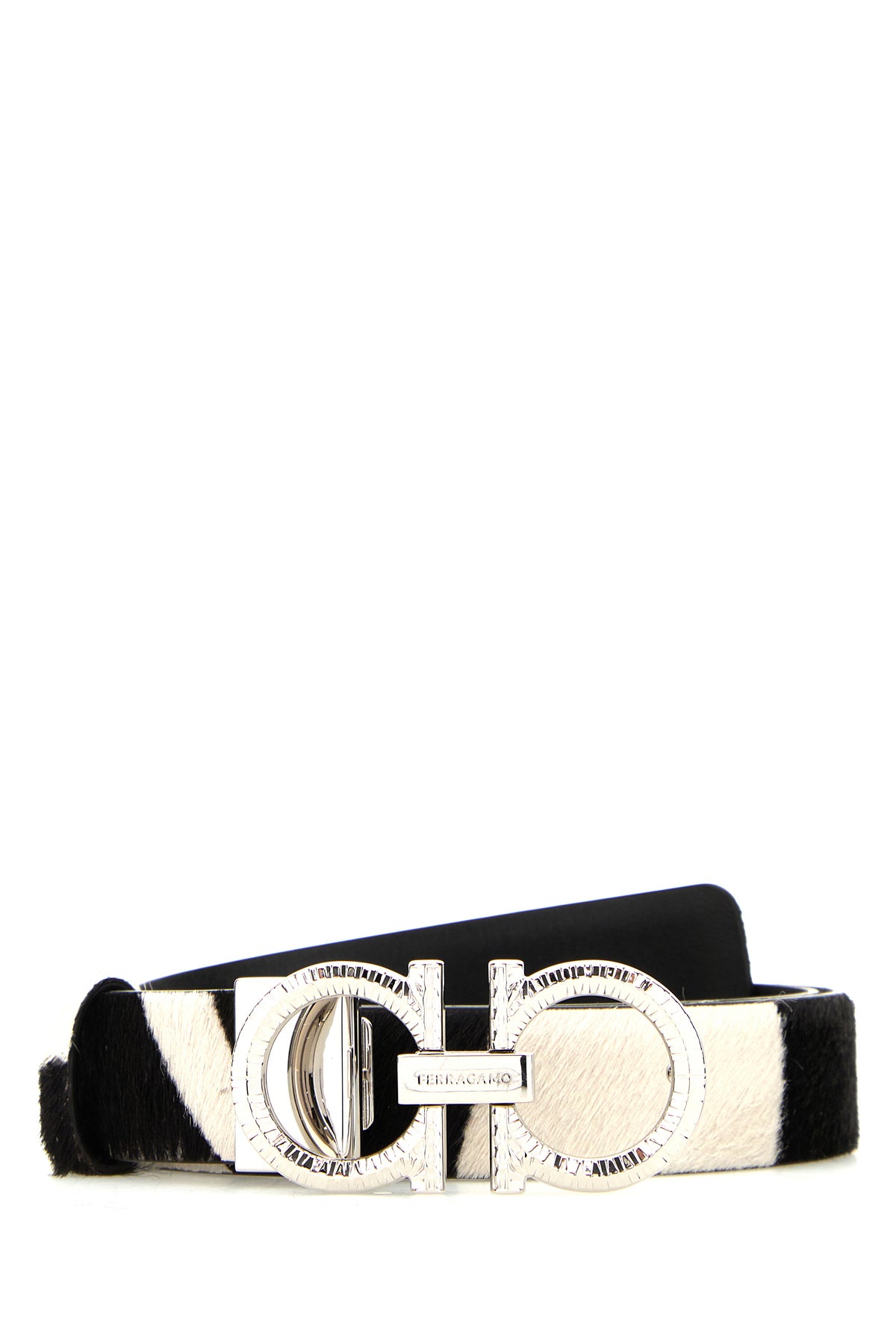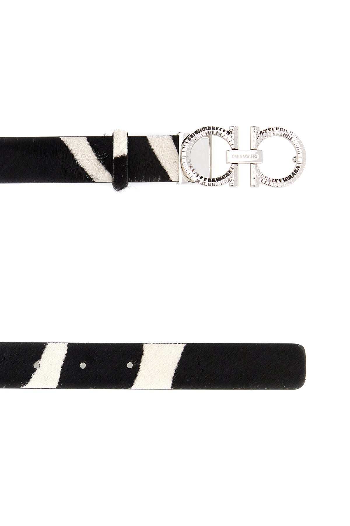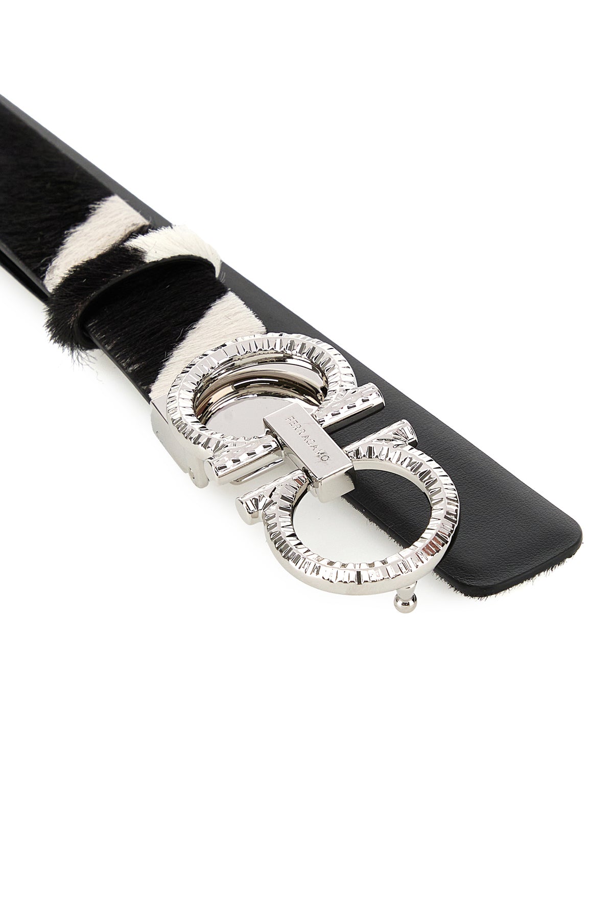 Reversible belt realized in calf hair characterized by animal print on the entire surface enriched by Gancini metal buckle.