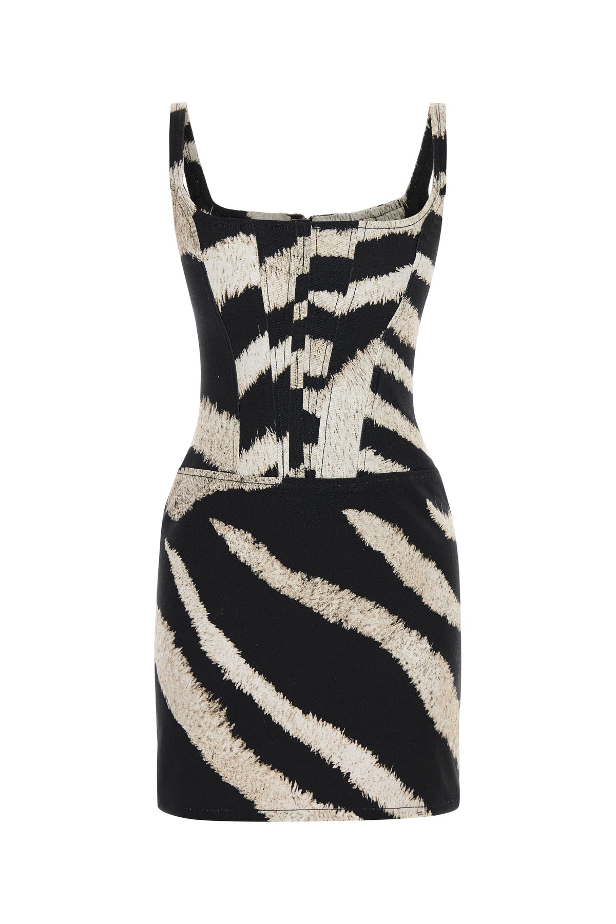 Mini dress realized in pure cotton denim characterized by animalier print on the entire surface.