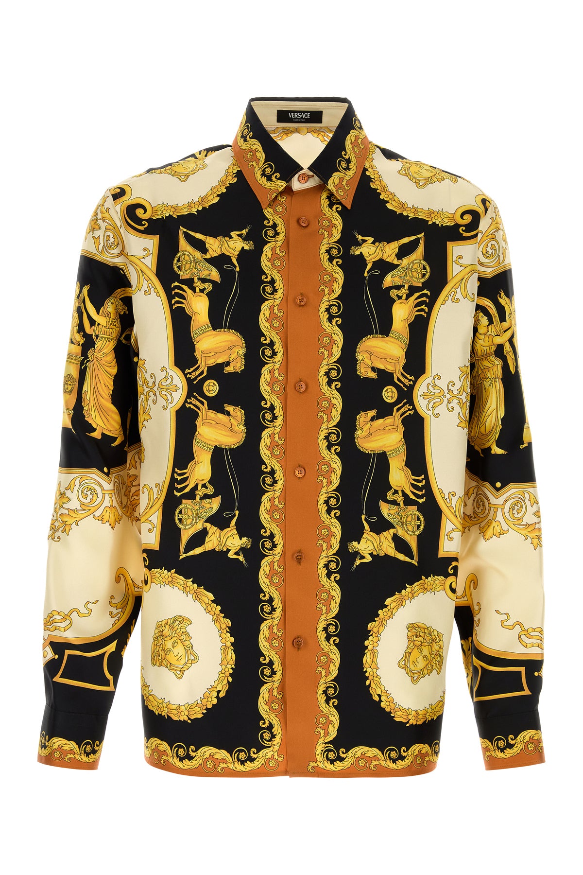 Shirt realized in pure silk characterized by Hall of Heroes print on the entire surface.