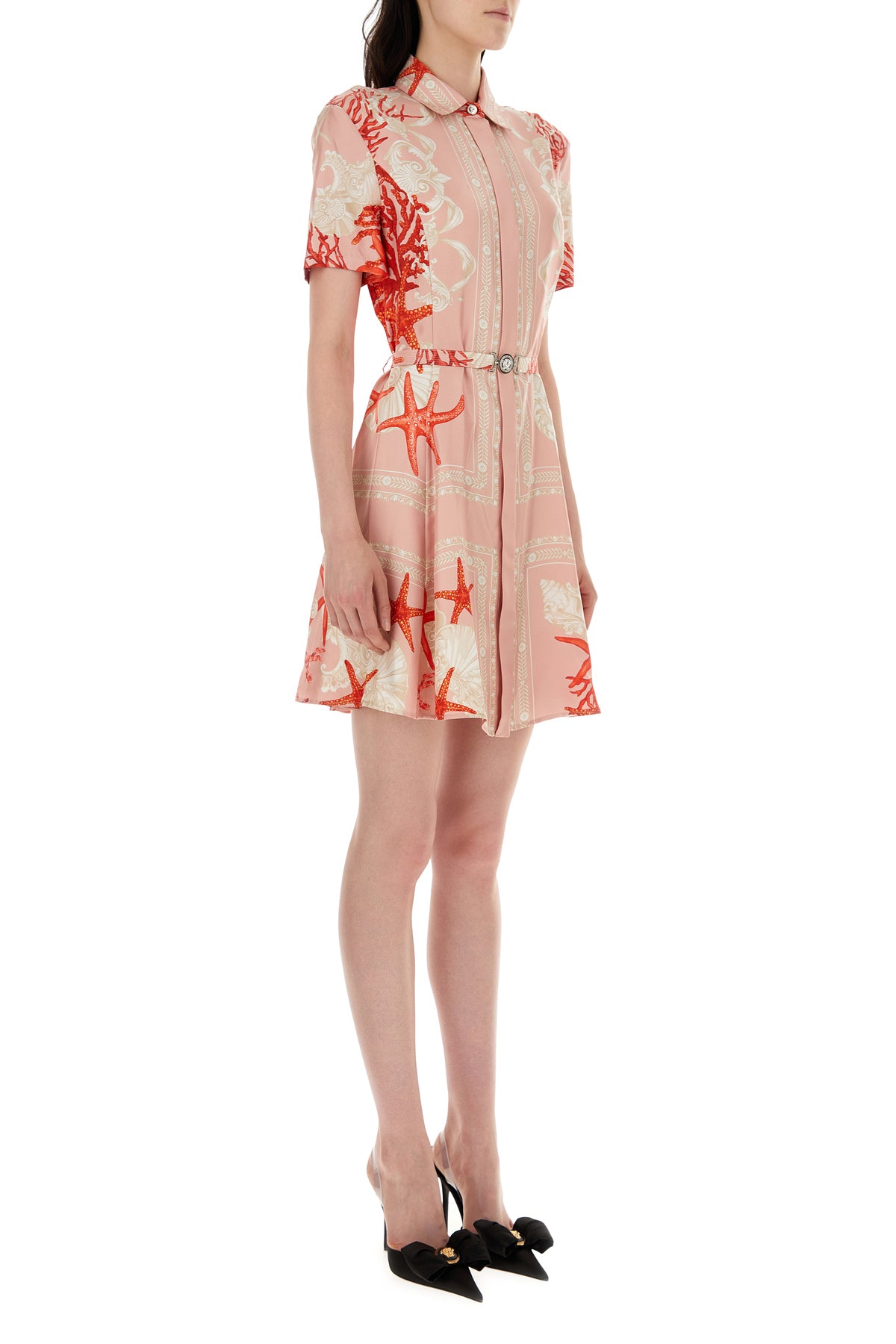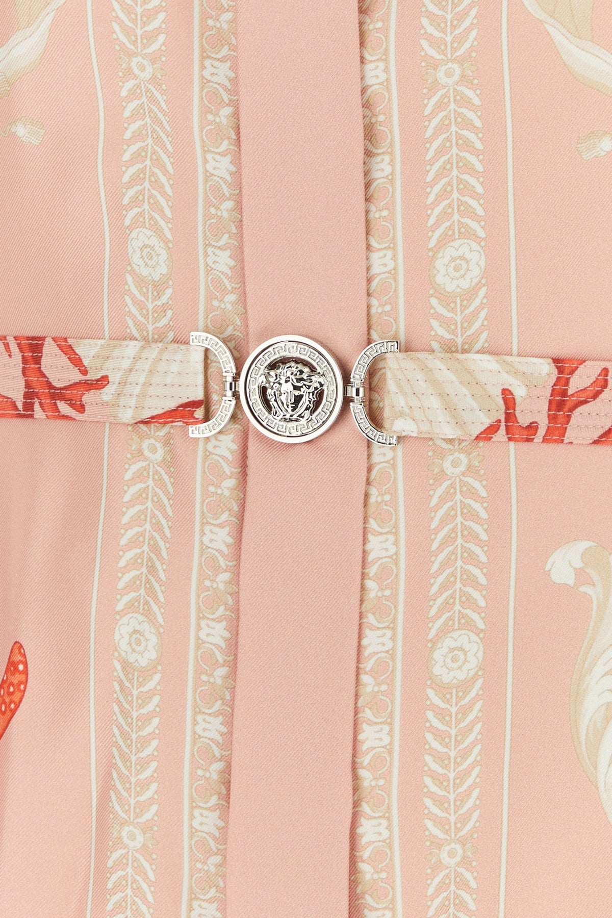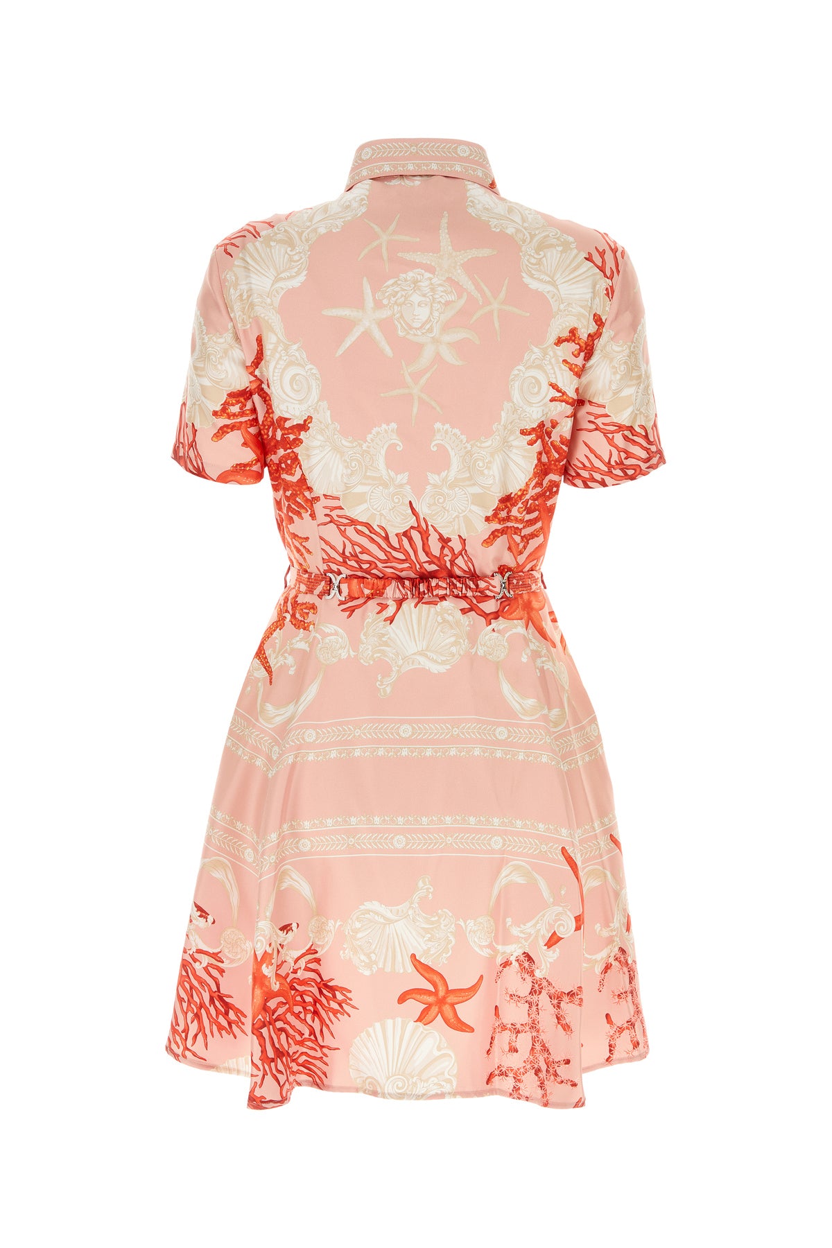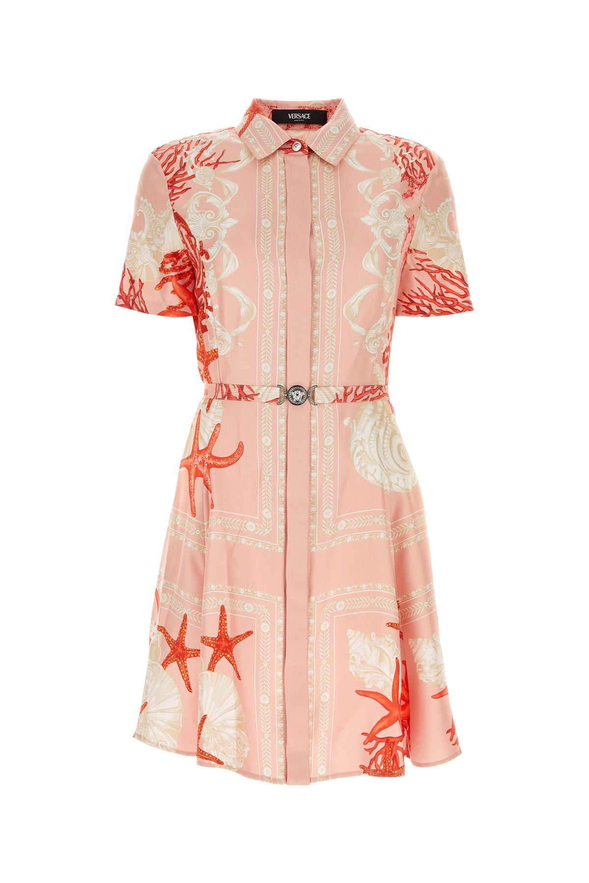 Shirt dress realized in pure silk characterized by Barocco Sea print on the entire surface enriched by detachable belt with Medusa '95 metal detail at the waist.