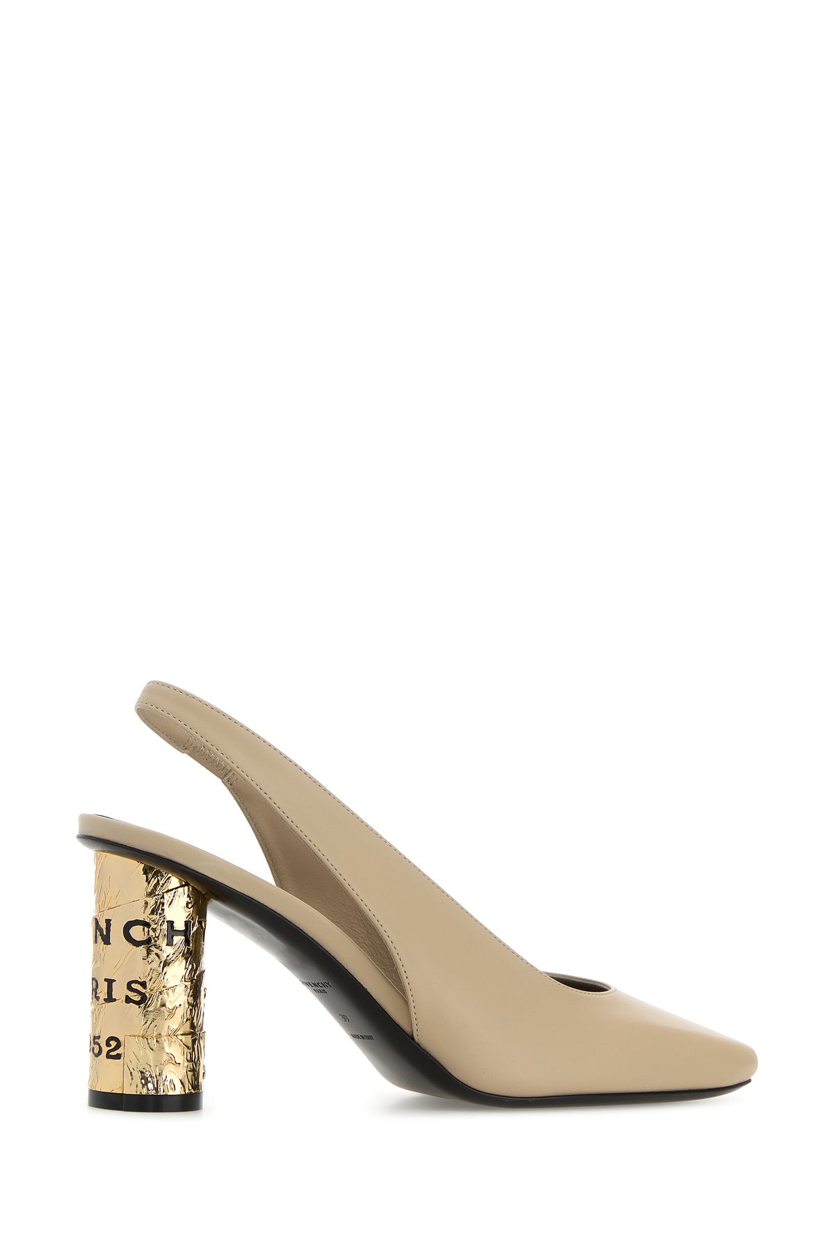 Slingback realized in smooth calf leather characterized by logoed metal thick heel.
