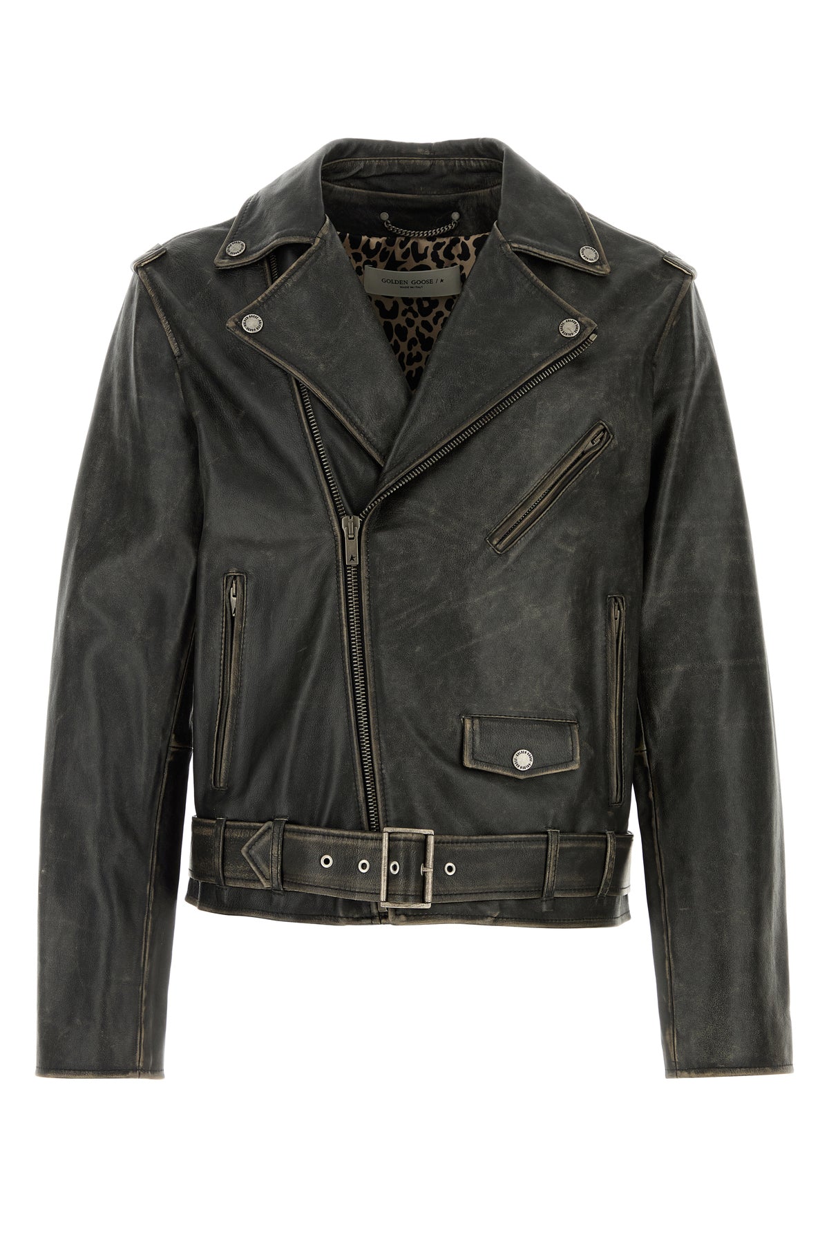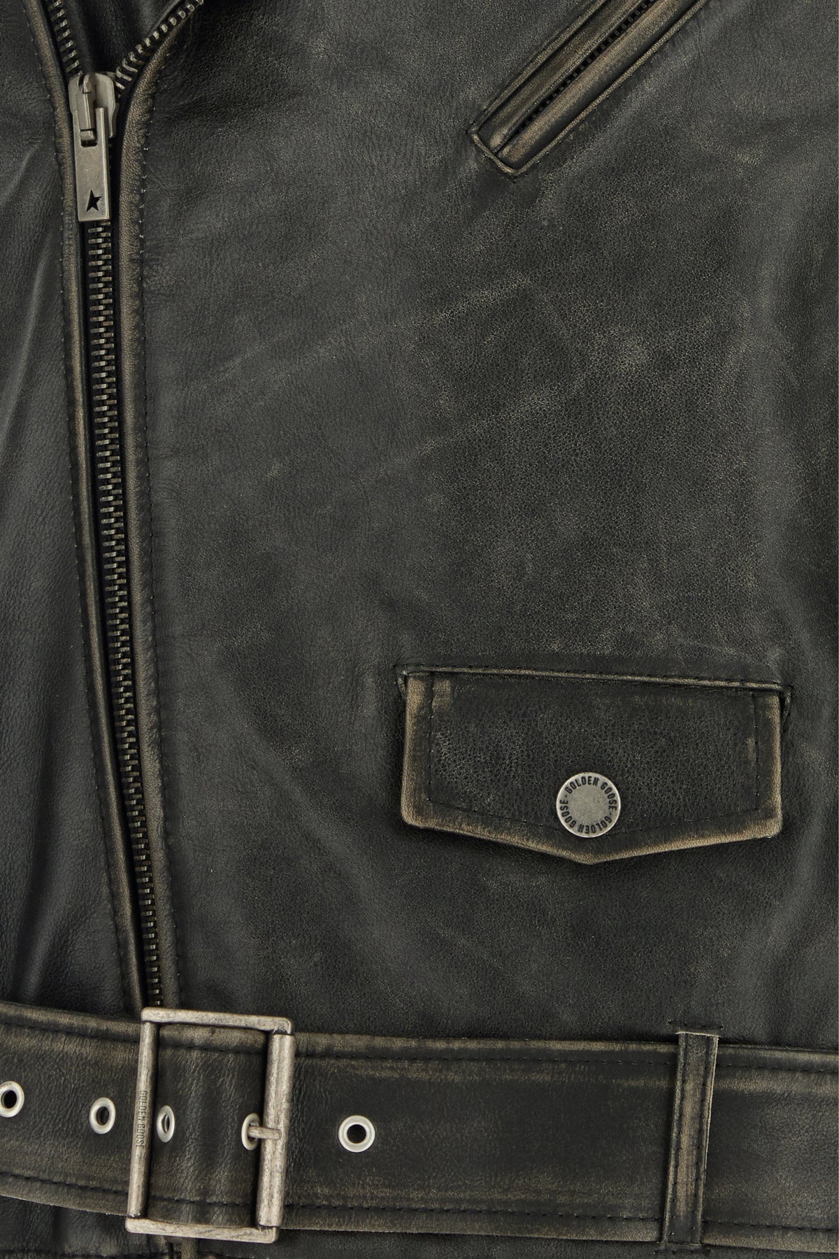 Jacket realized in vintage effect bovine leather enriched by Star metal detail at the back.