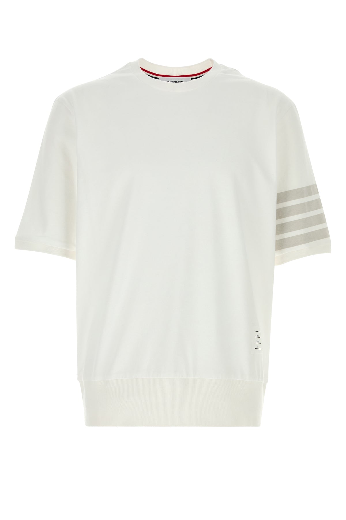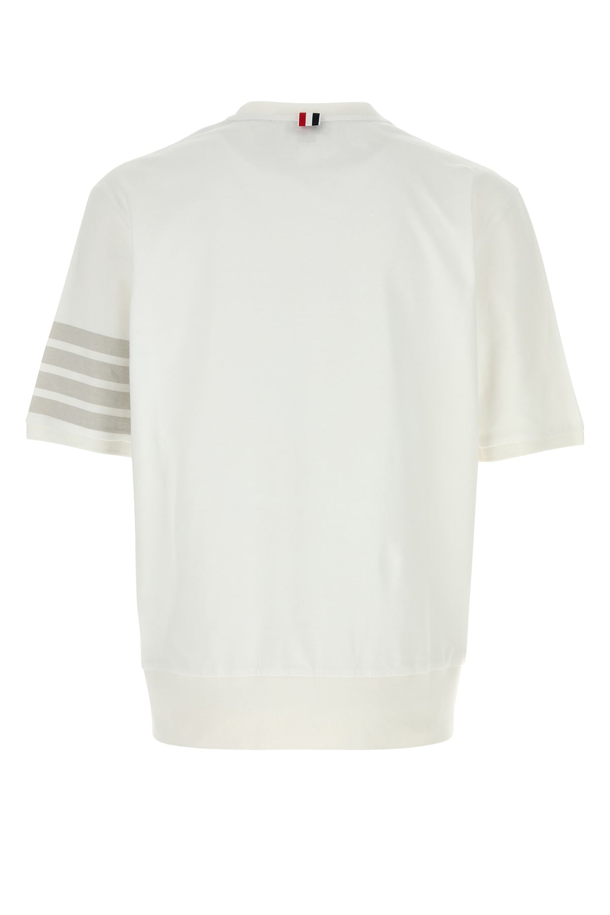 T-shirt realized in pure cotton characterized by striped print on the sleeve enriched by logoed label on the hemline and iconic tricolor label at the back.