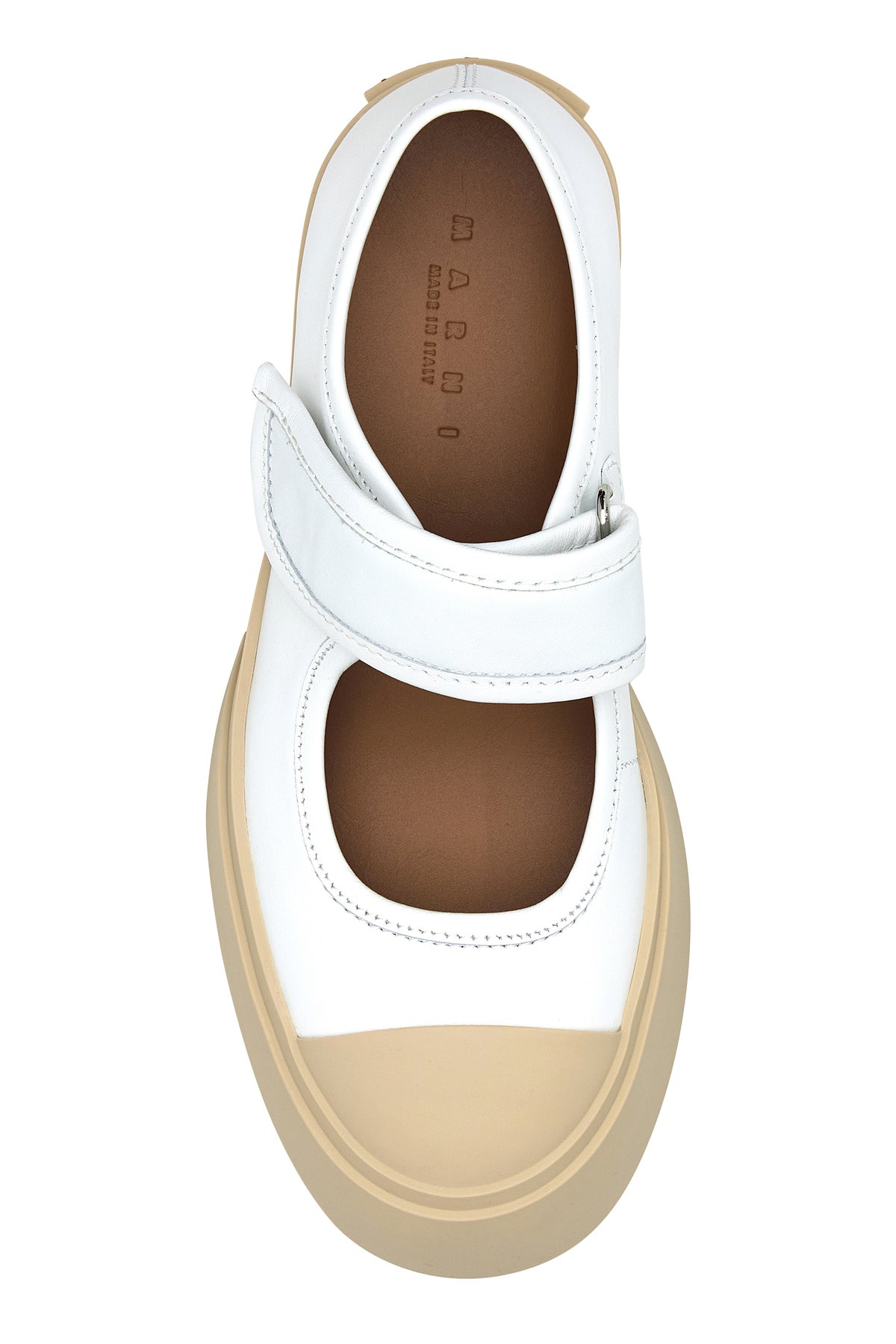 Sneakers realized in polished-finish slightly pebble leather characterized by contrasting logo in relief at the back.