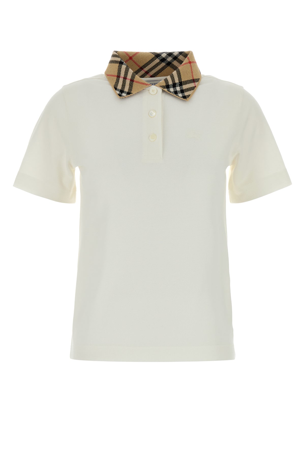 Polo shirt realized in pure cotton piquet characterized by Burberry Check embroidery and Equestrian Knight embroidery on the chest.