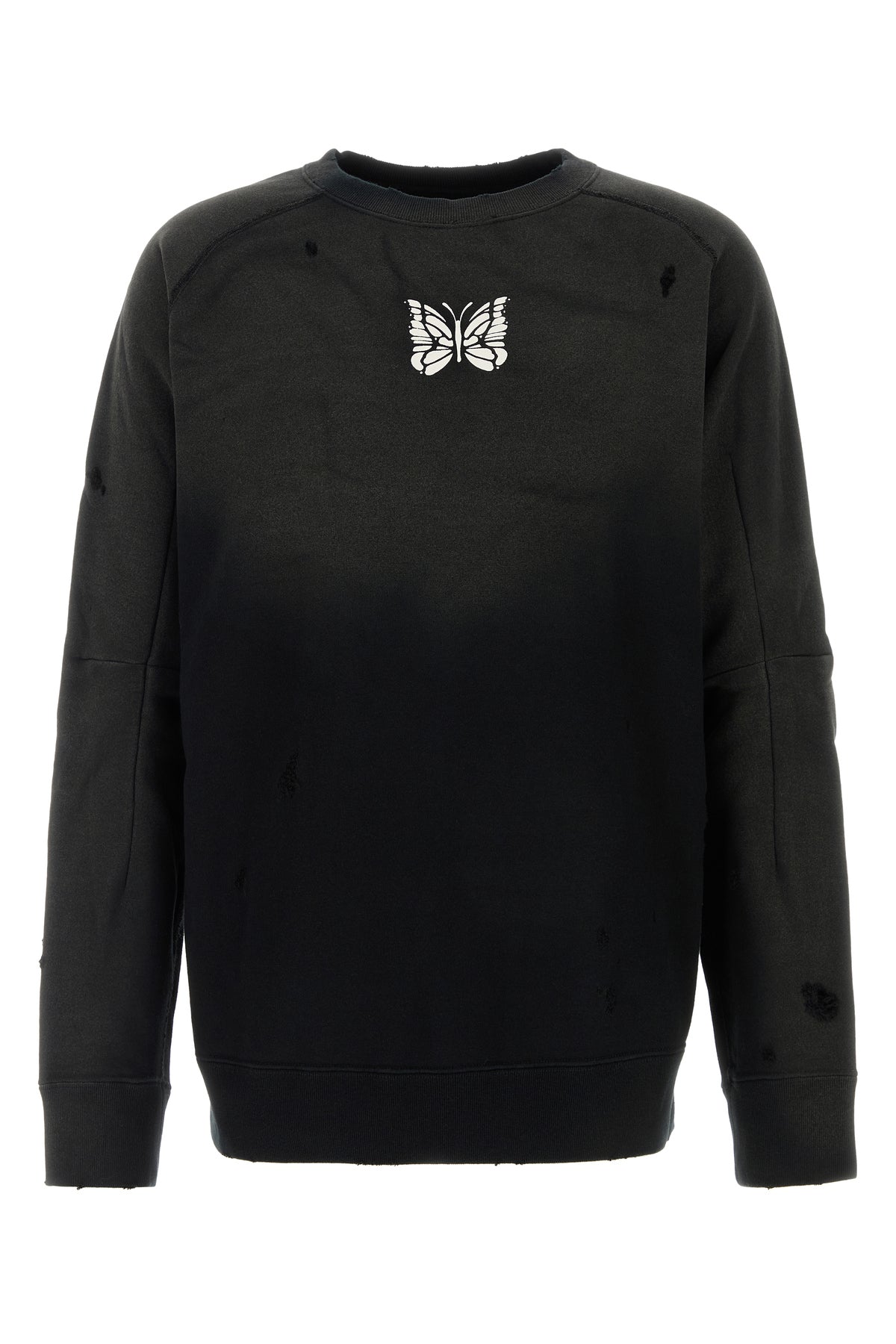 Sweatshirt realized in stonewashed and distressed pure cotton characterized by printed logo at the front.