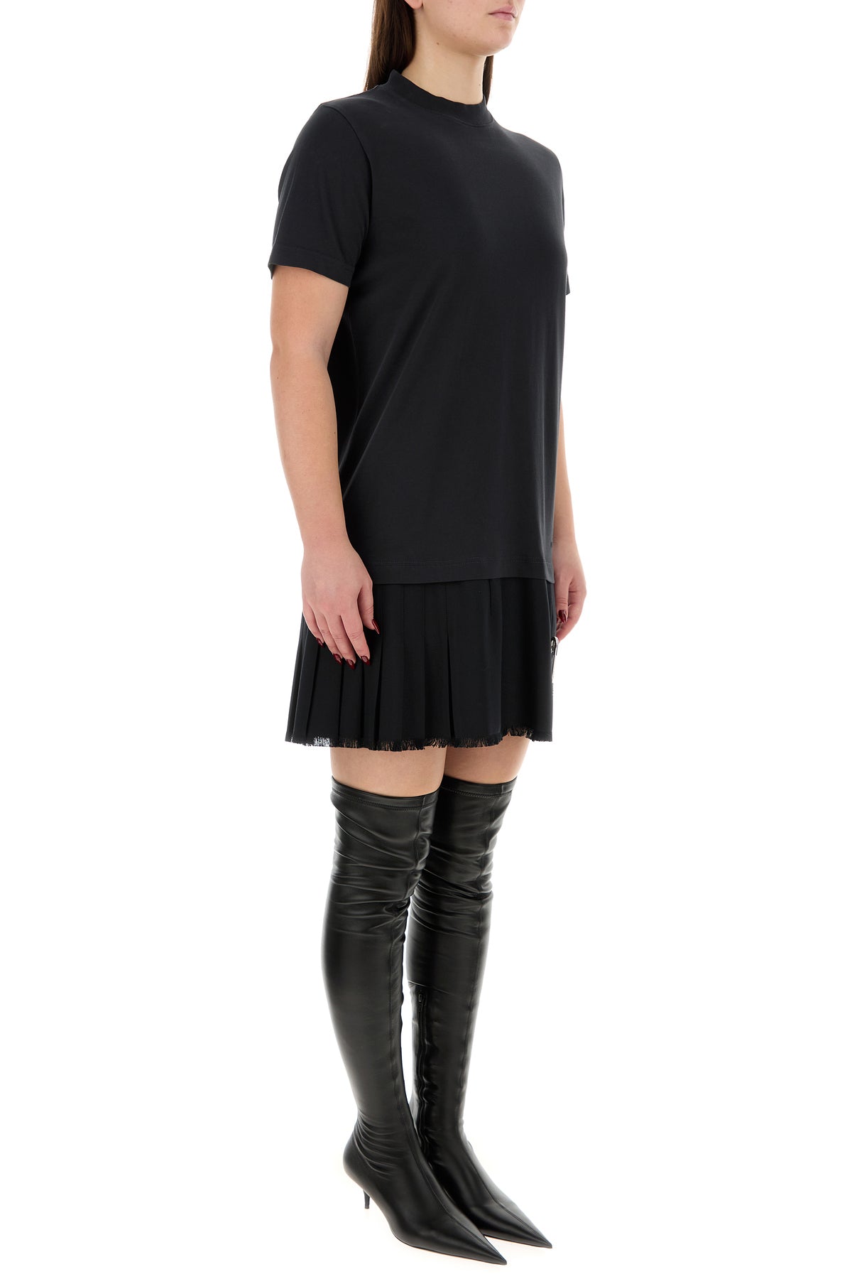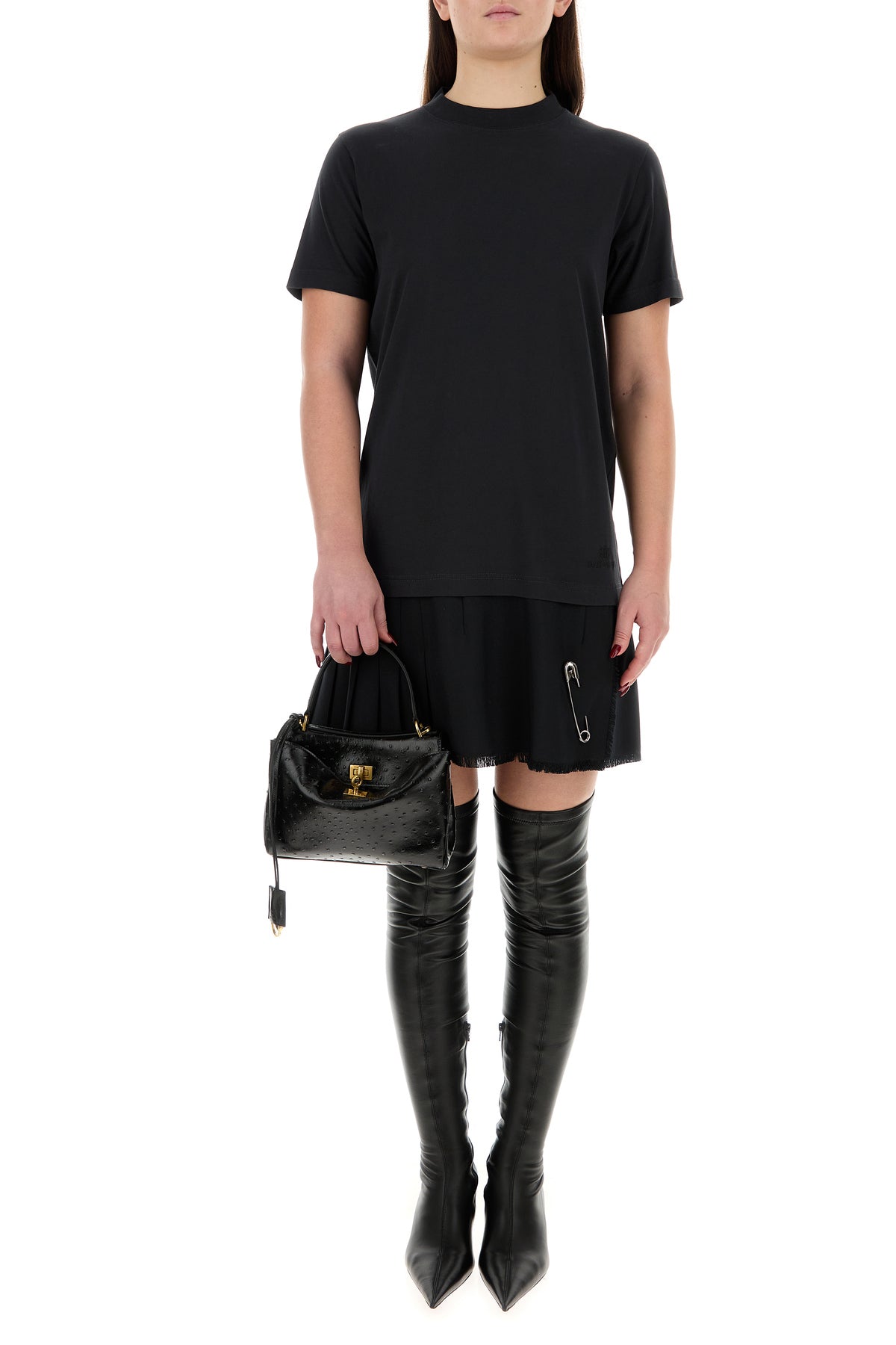 T-shirt dress realized in stonewashed pure cotton with wool blend insert on the hemline characterized by tonal BB embroidery on the hemline.