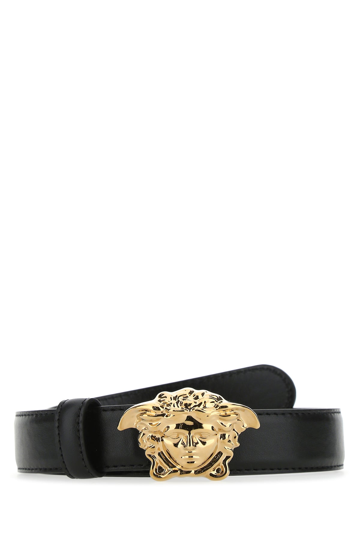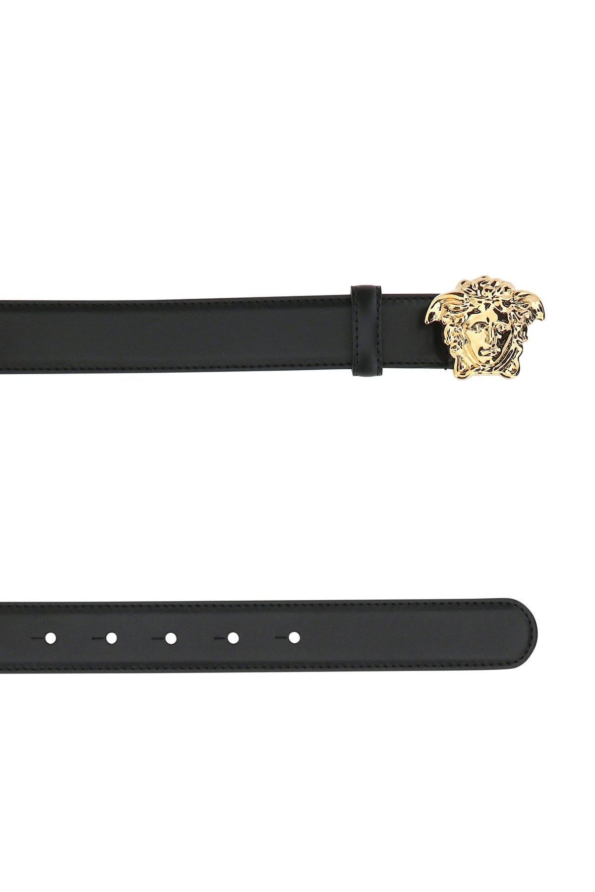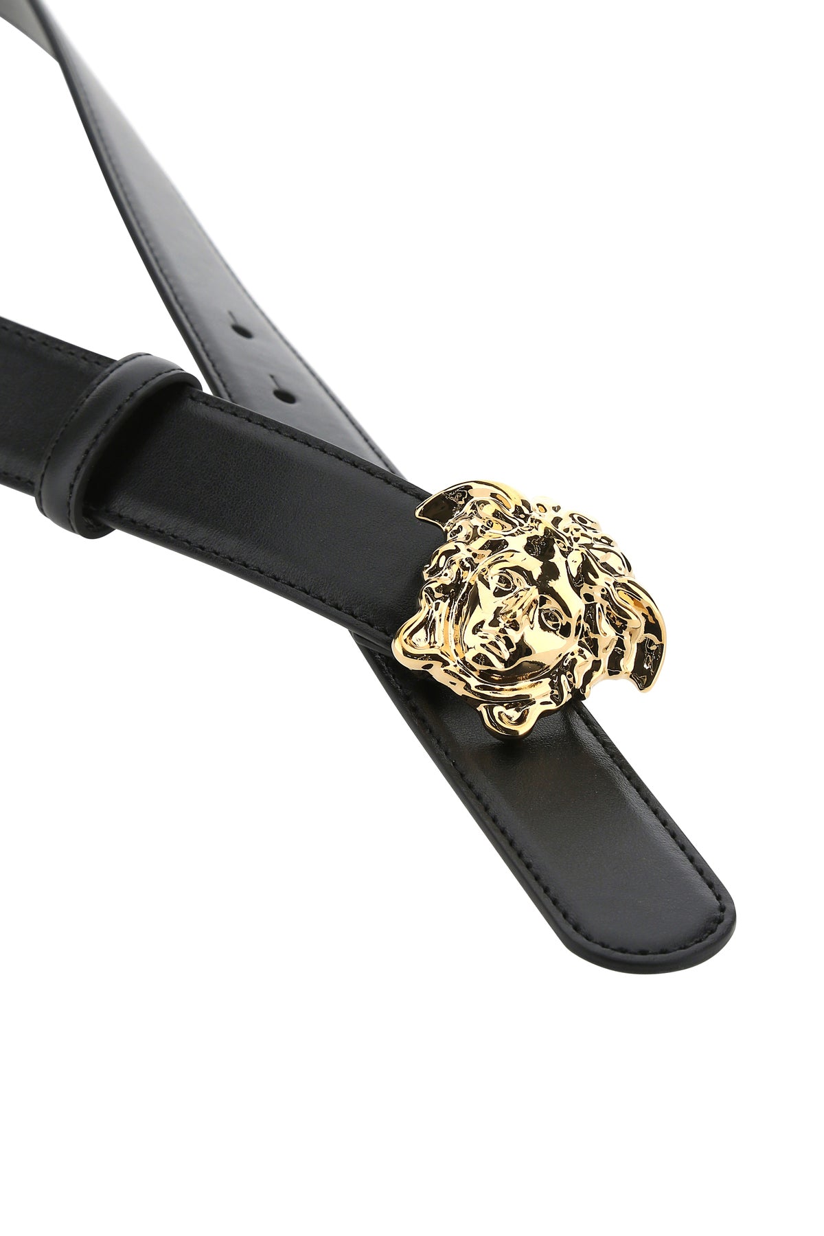 Belt realized in smooth leather characterized by plated metal iconic Medusa Head detail.