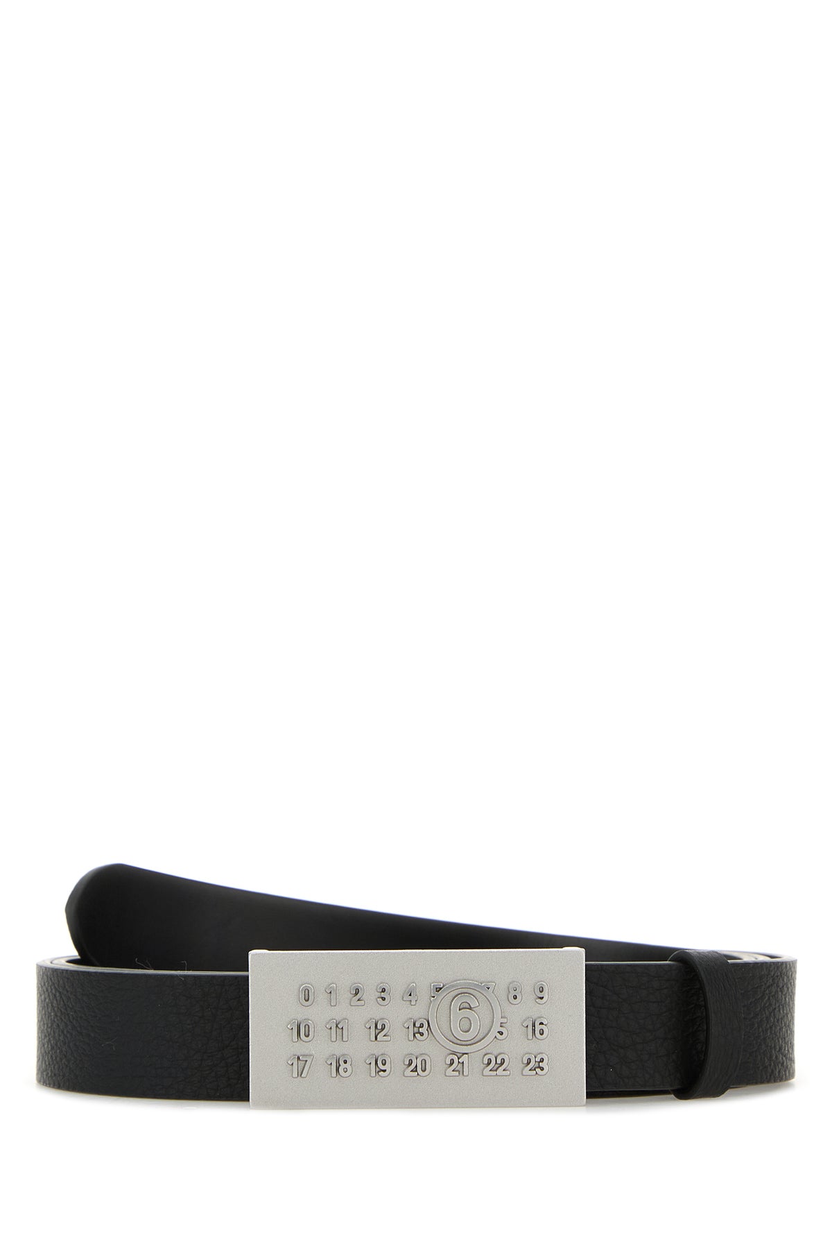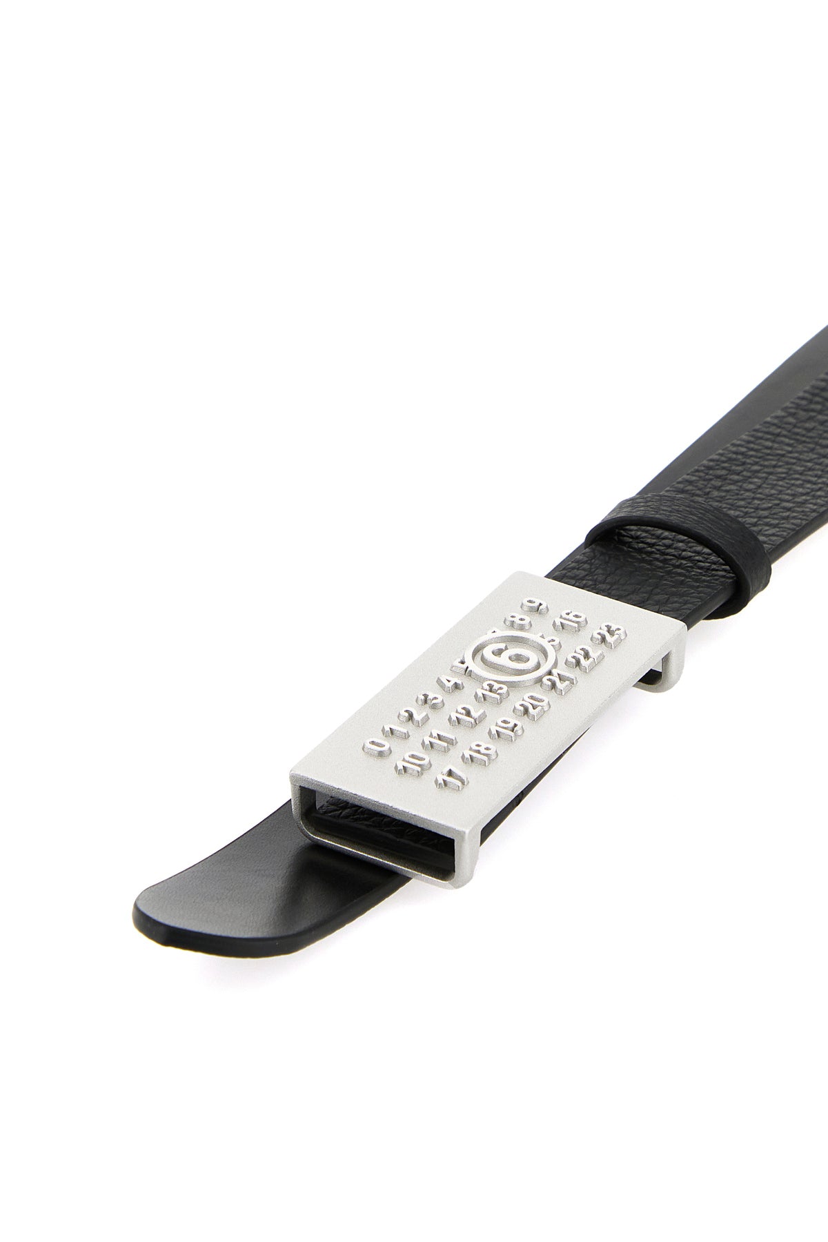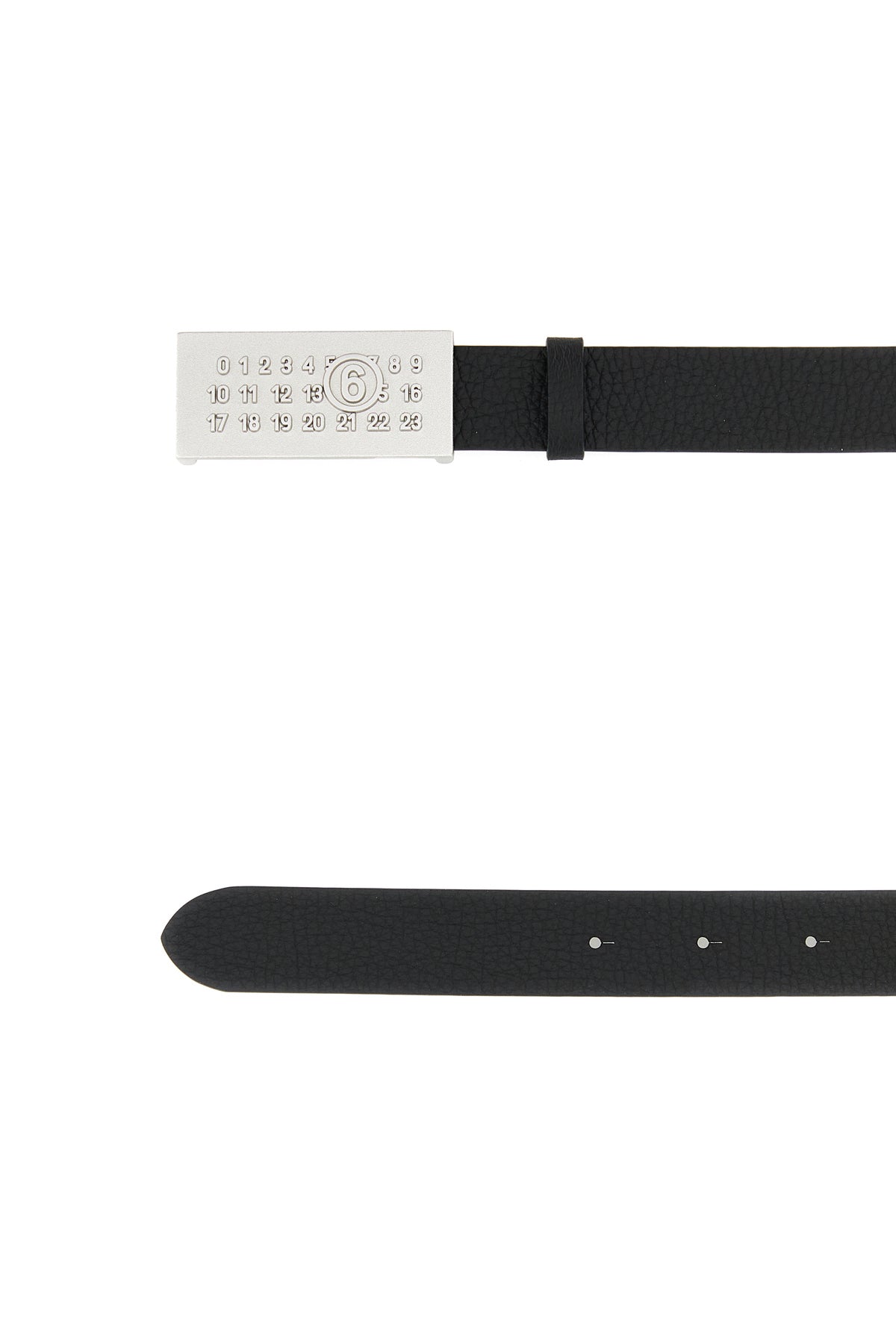 Belt realized in pebble calf leather enriched by metal logoed buckle.