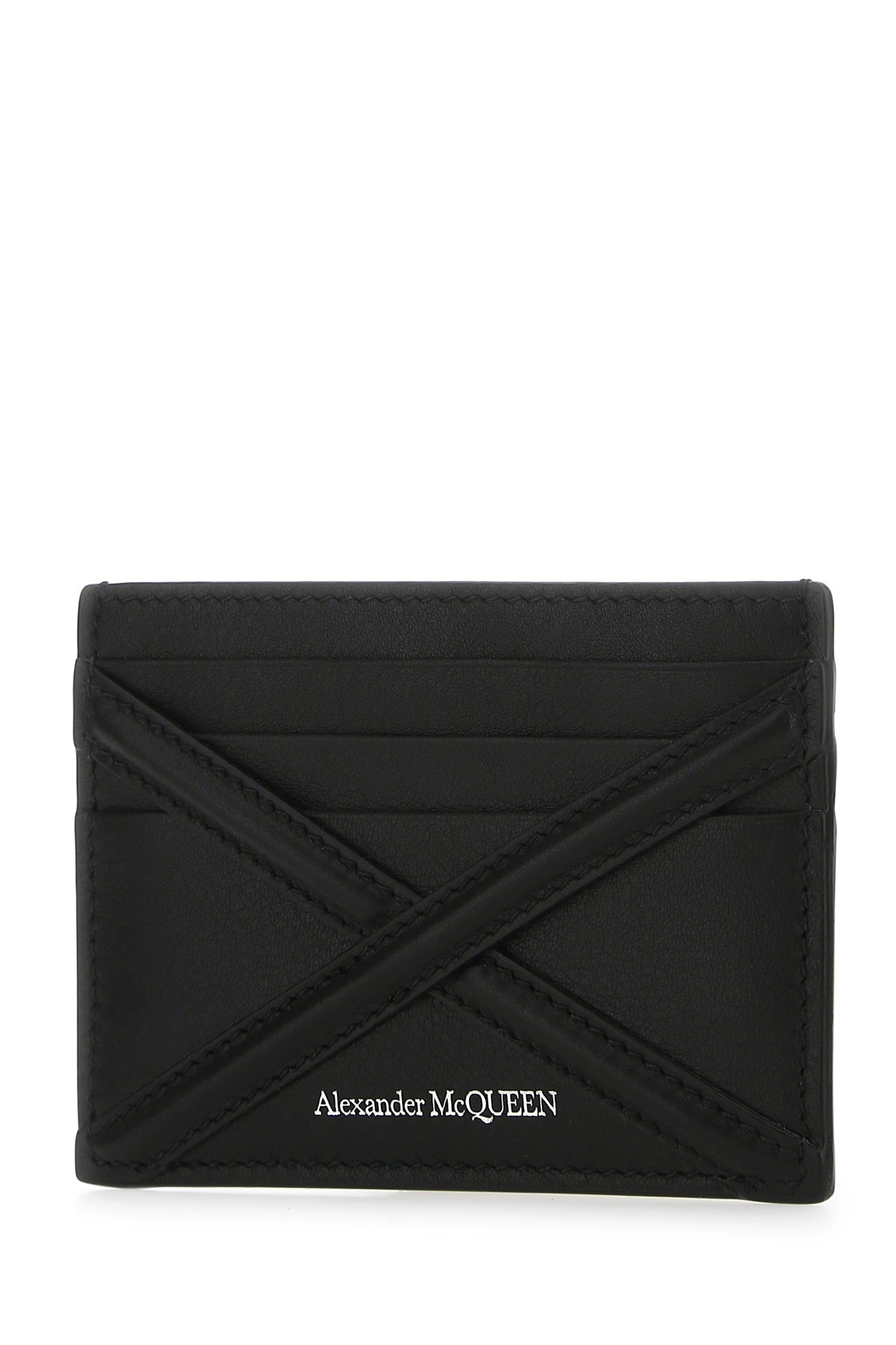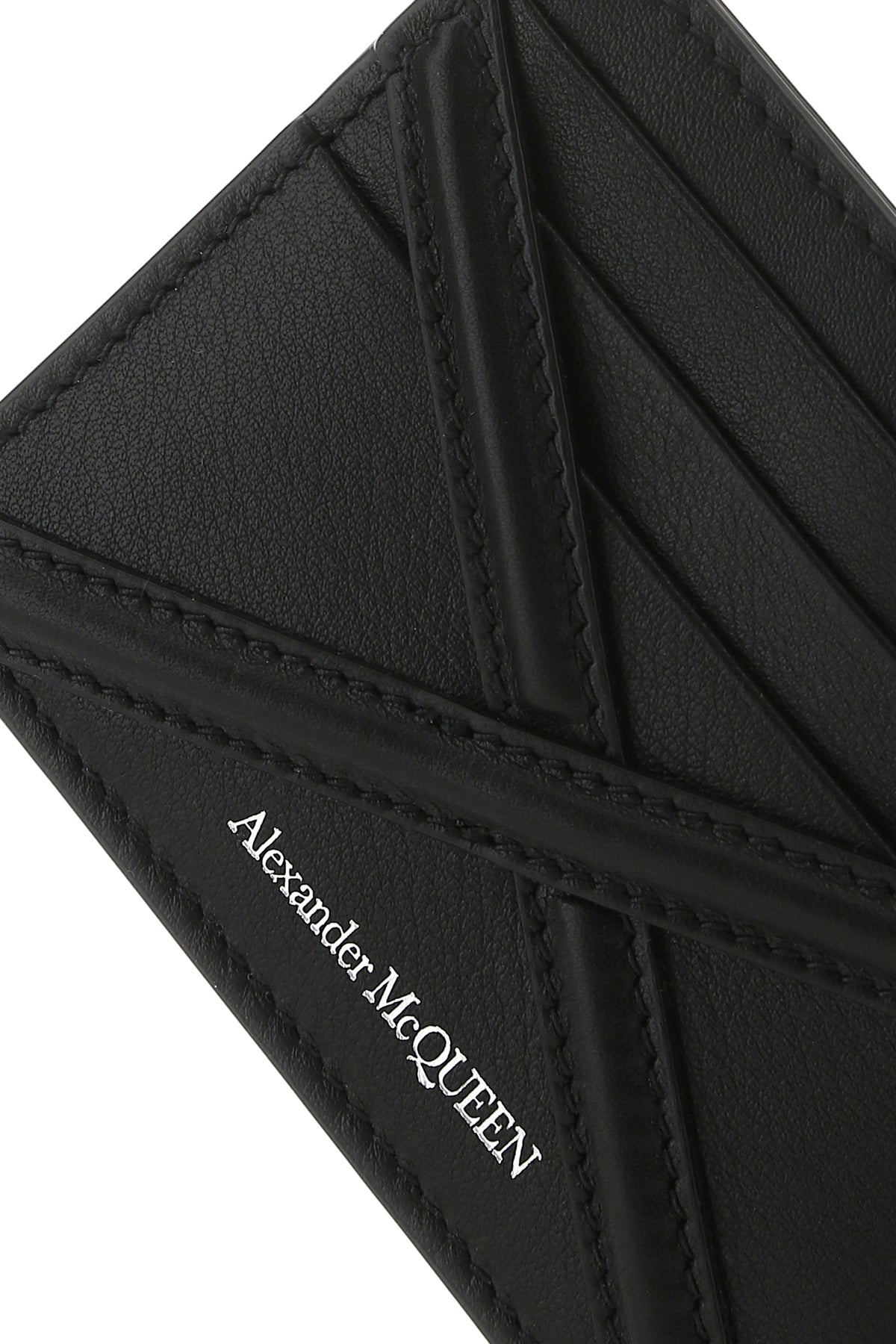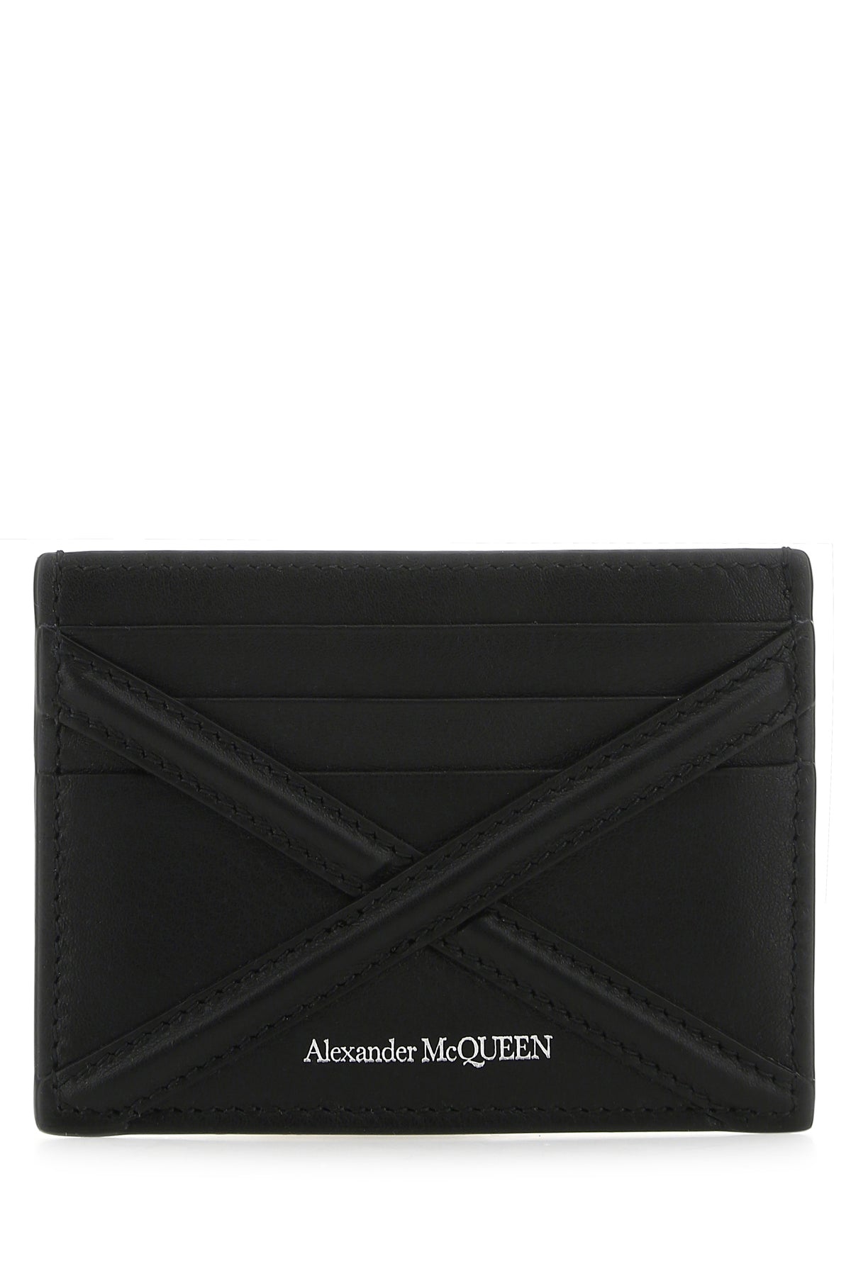 Card holder realized in smooth leather characterized by contrasting printed logo at the front.
