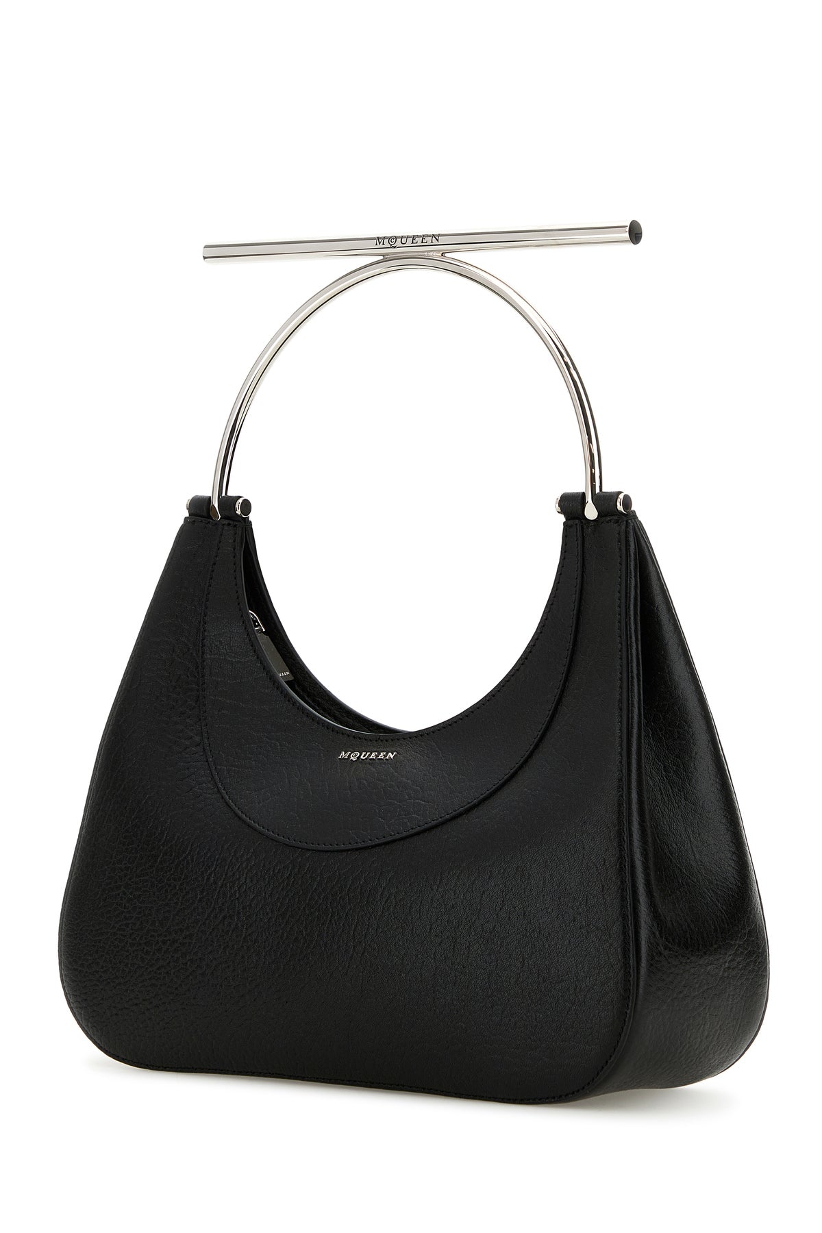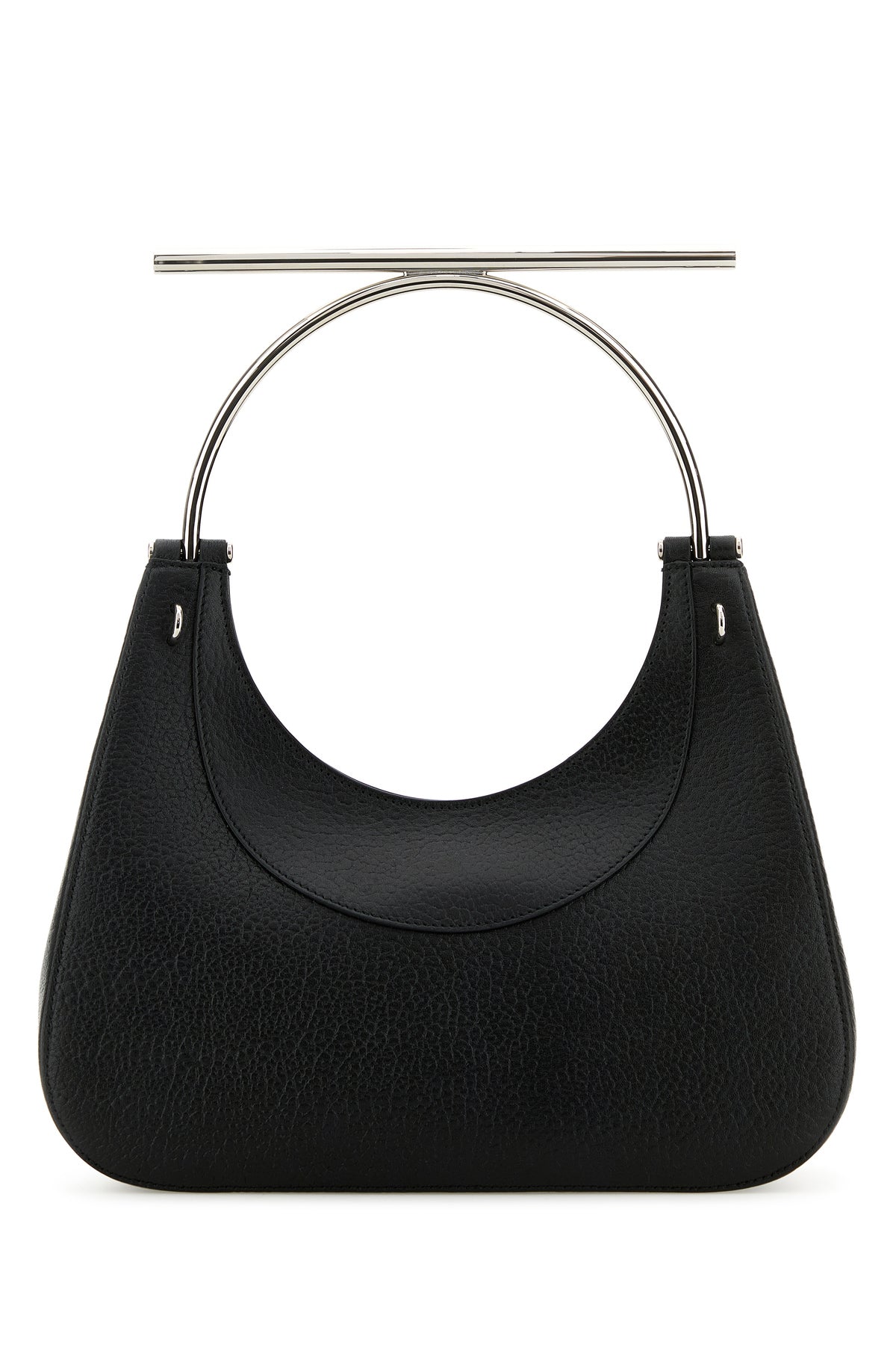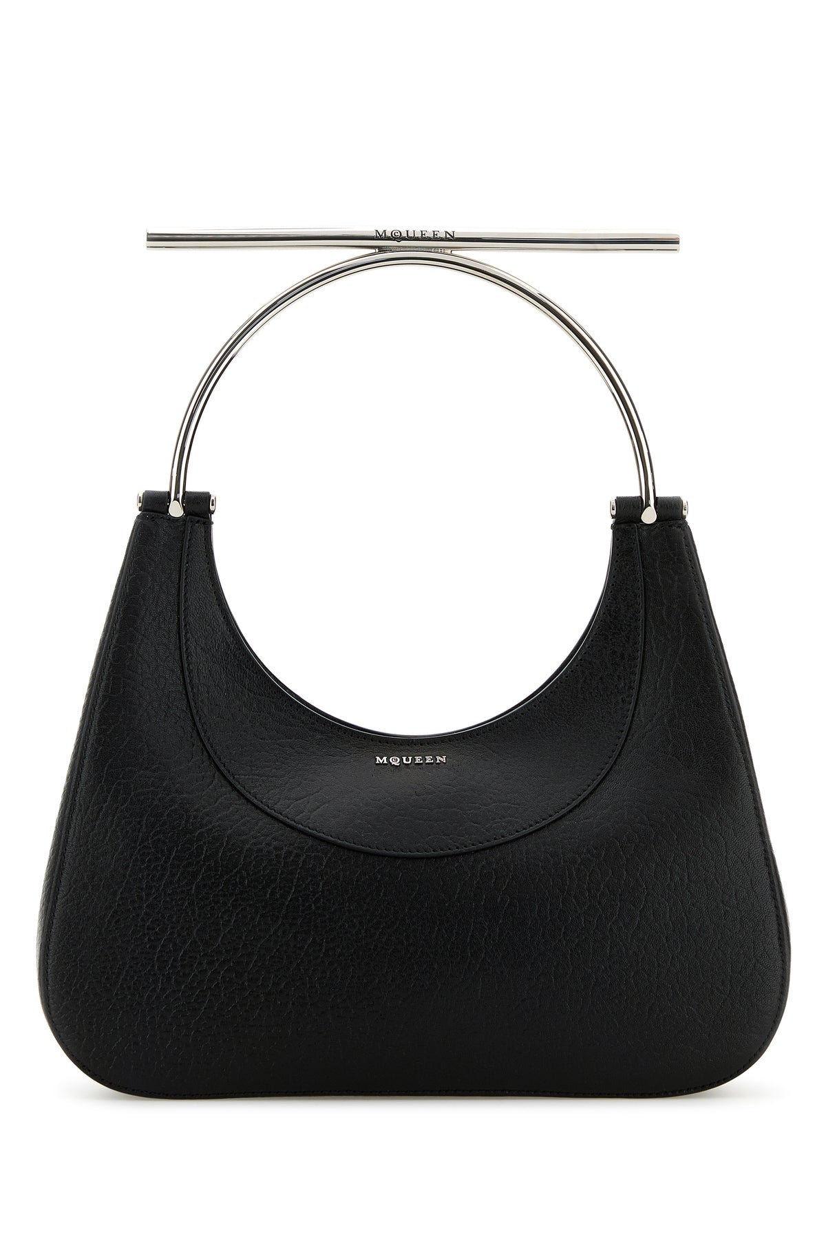 Handbag realized in pebble lamb leather enriched by metal lettering logo at the front.