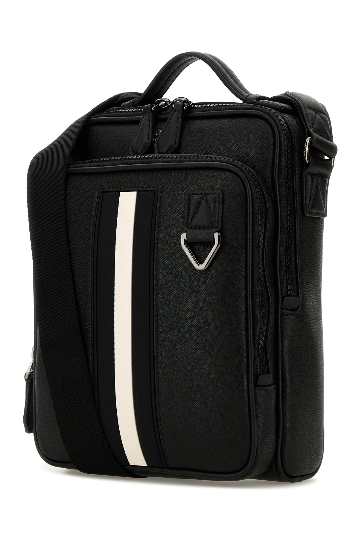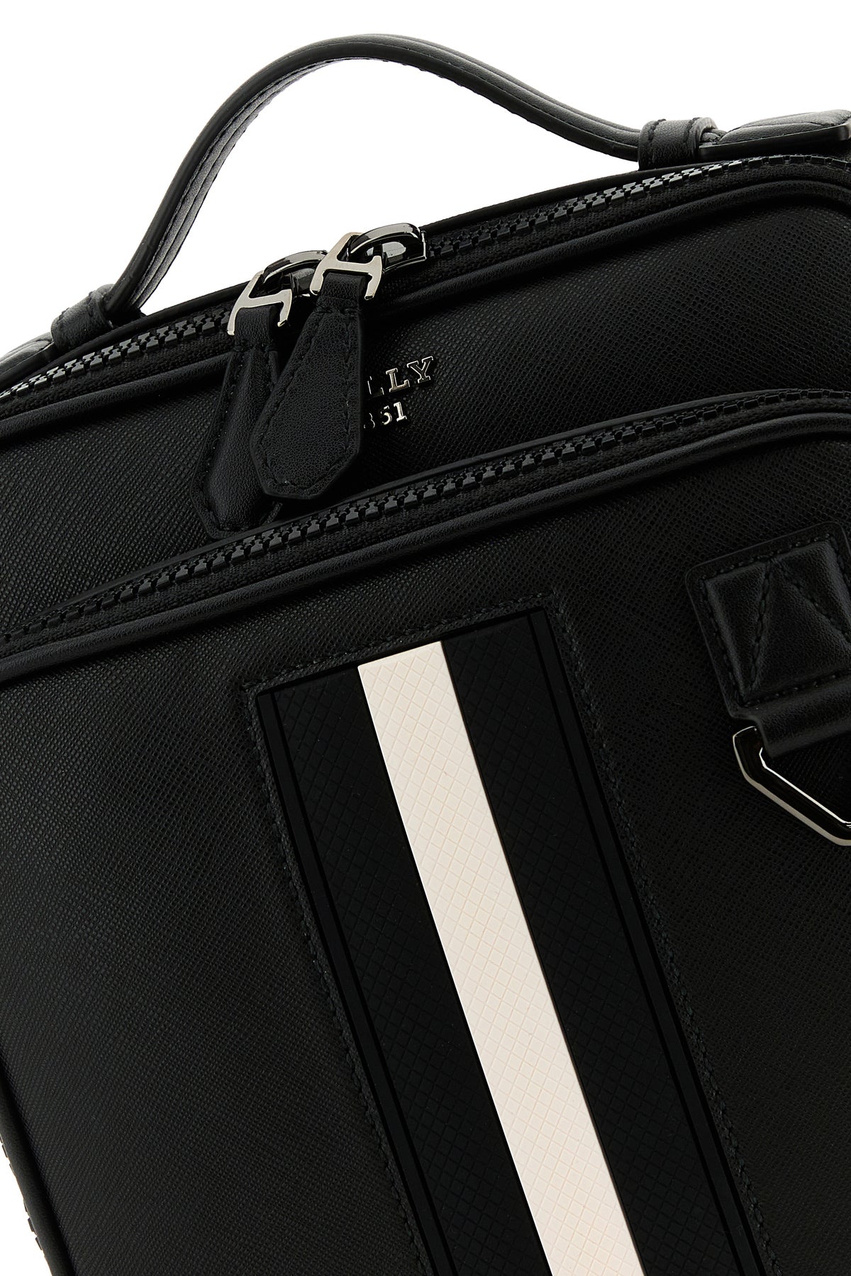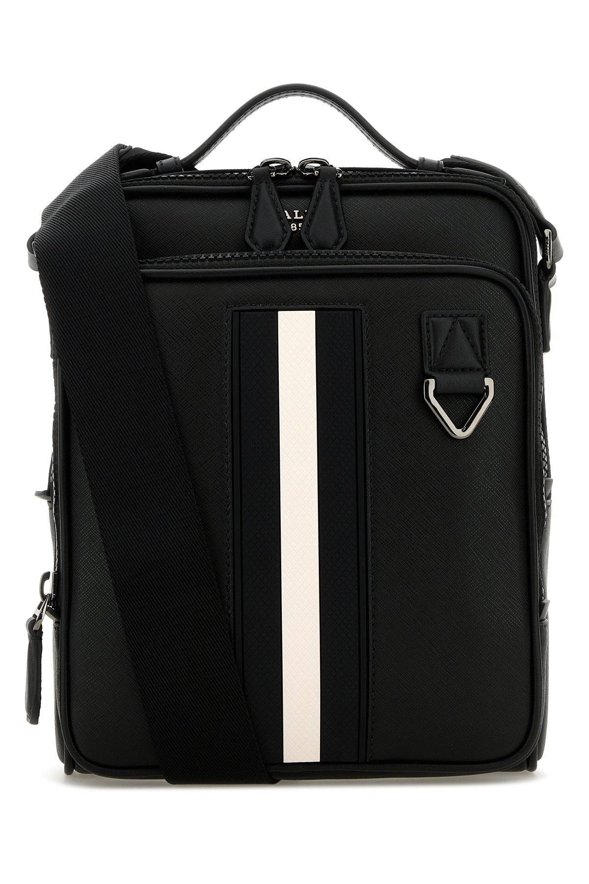 Crossbody bag realized in grained leather enriched by metal lettering logo at the front.