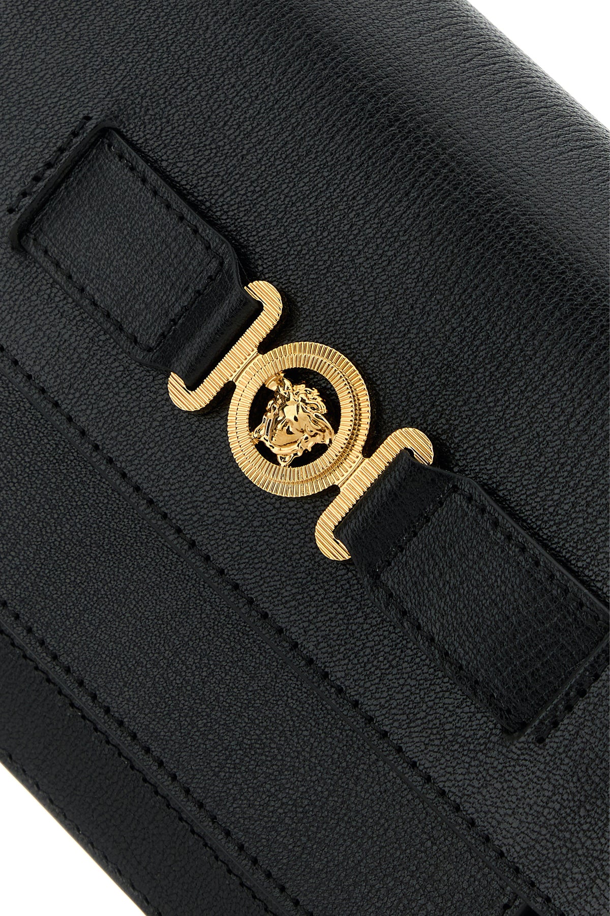 Crossbody bag realized in grained ovine leather characterized by printed laminated logo at the back enriched by metal Medusa Biggie detail at the front.