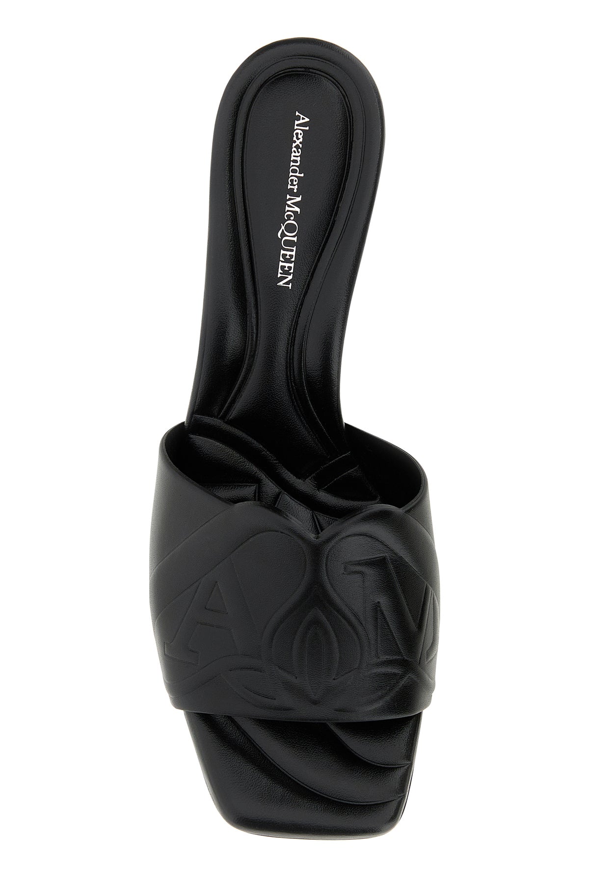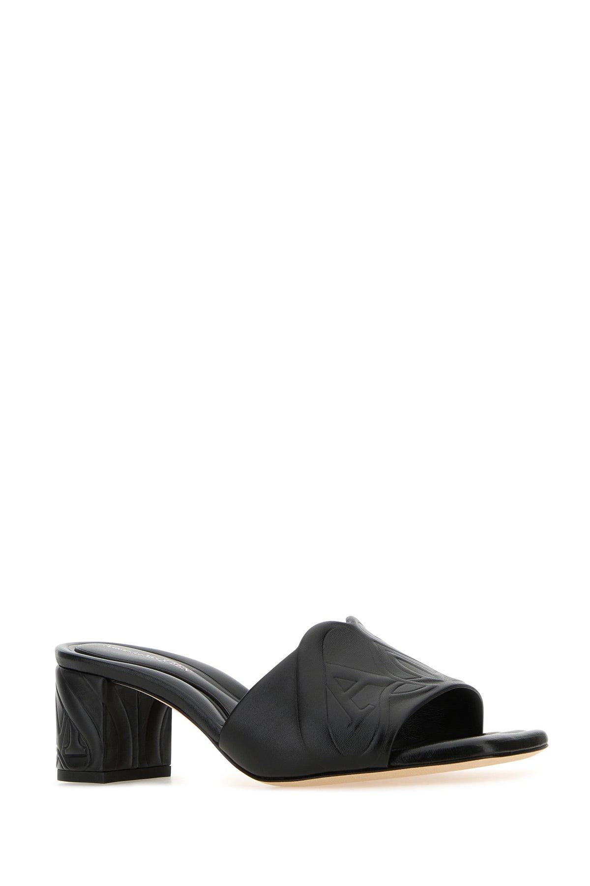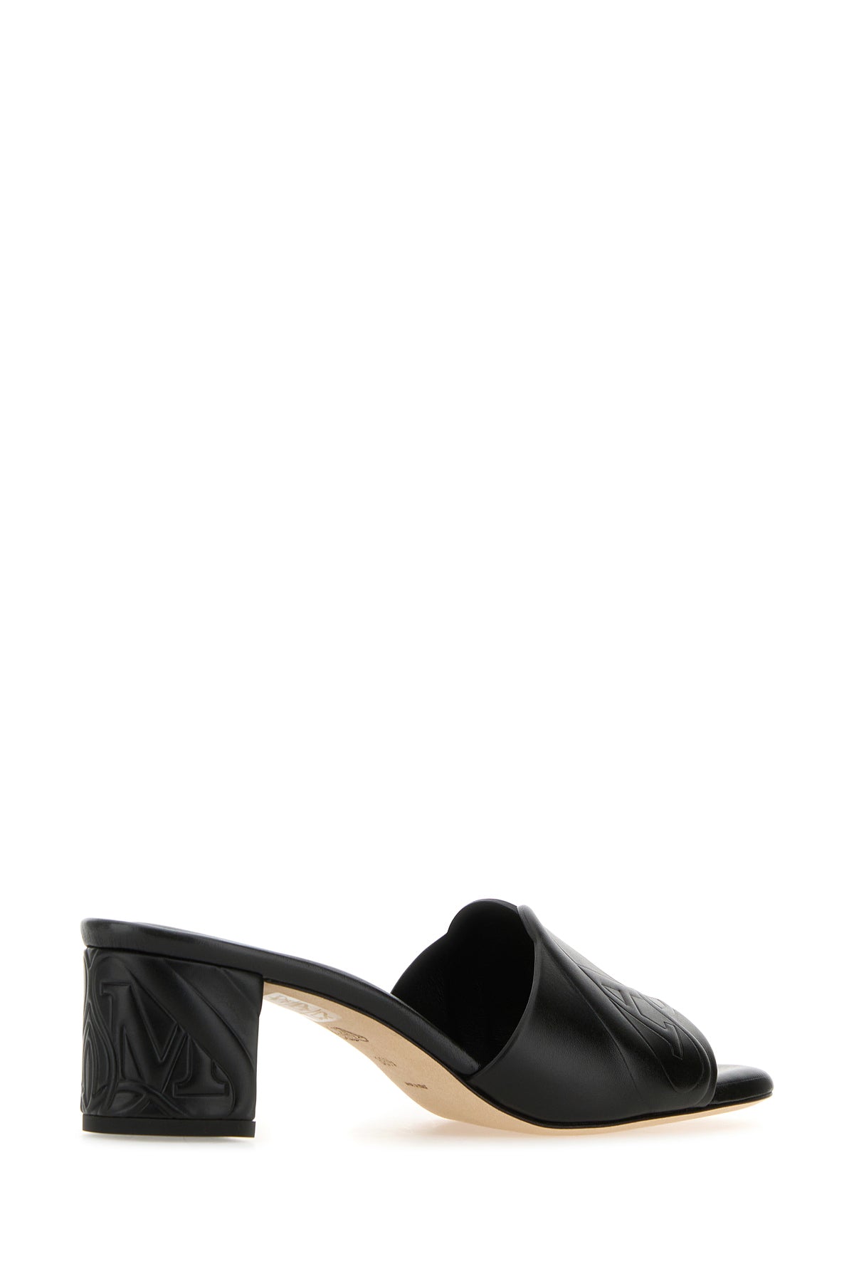 Mules realized in Seal motif embossed leather at the front and on the heel.