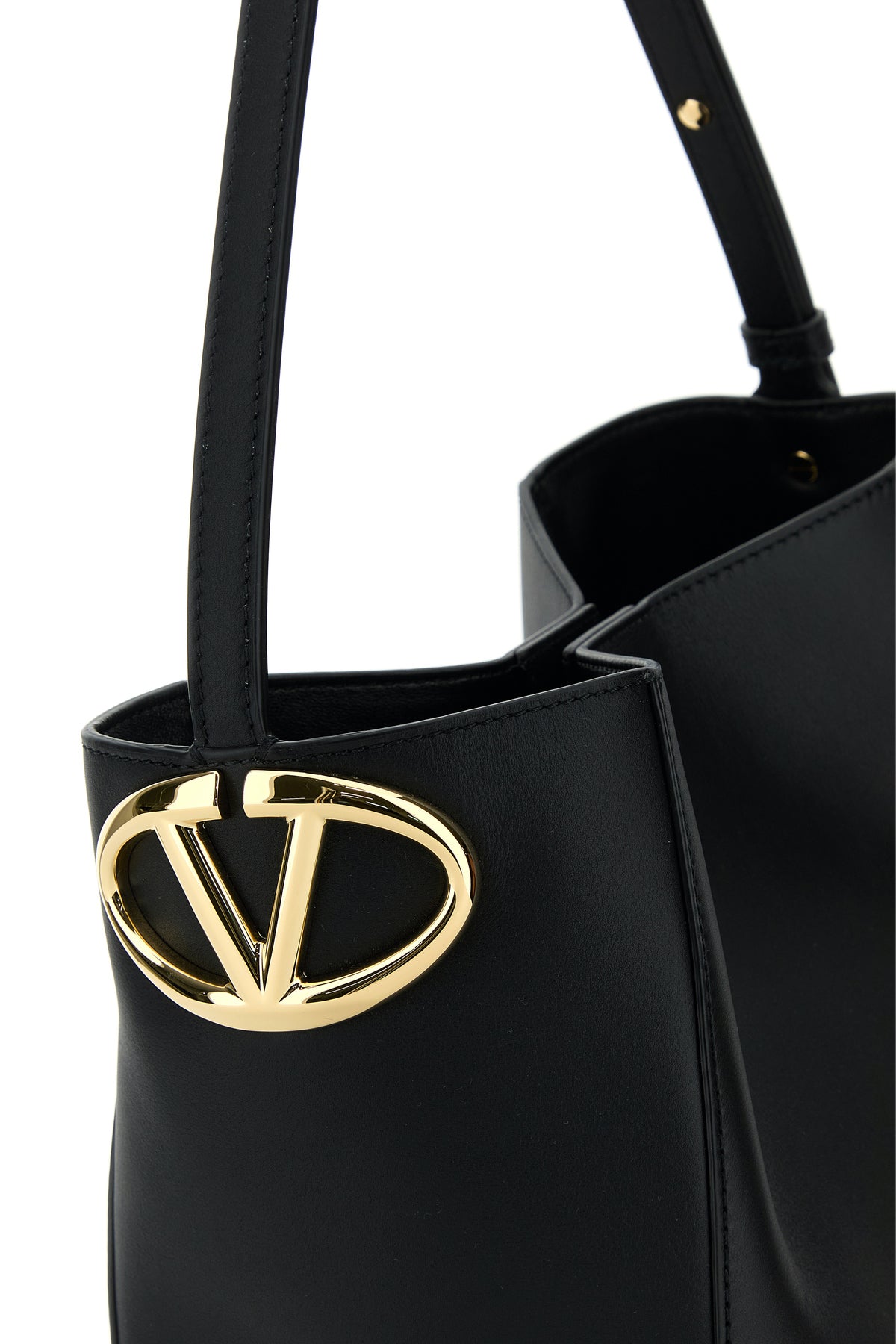 Bucket bag realized in smooth leather enriched by metal VLogo detail on the side.