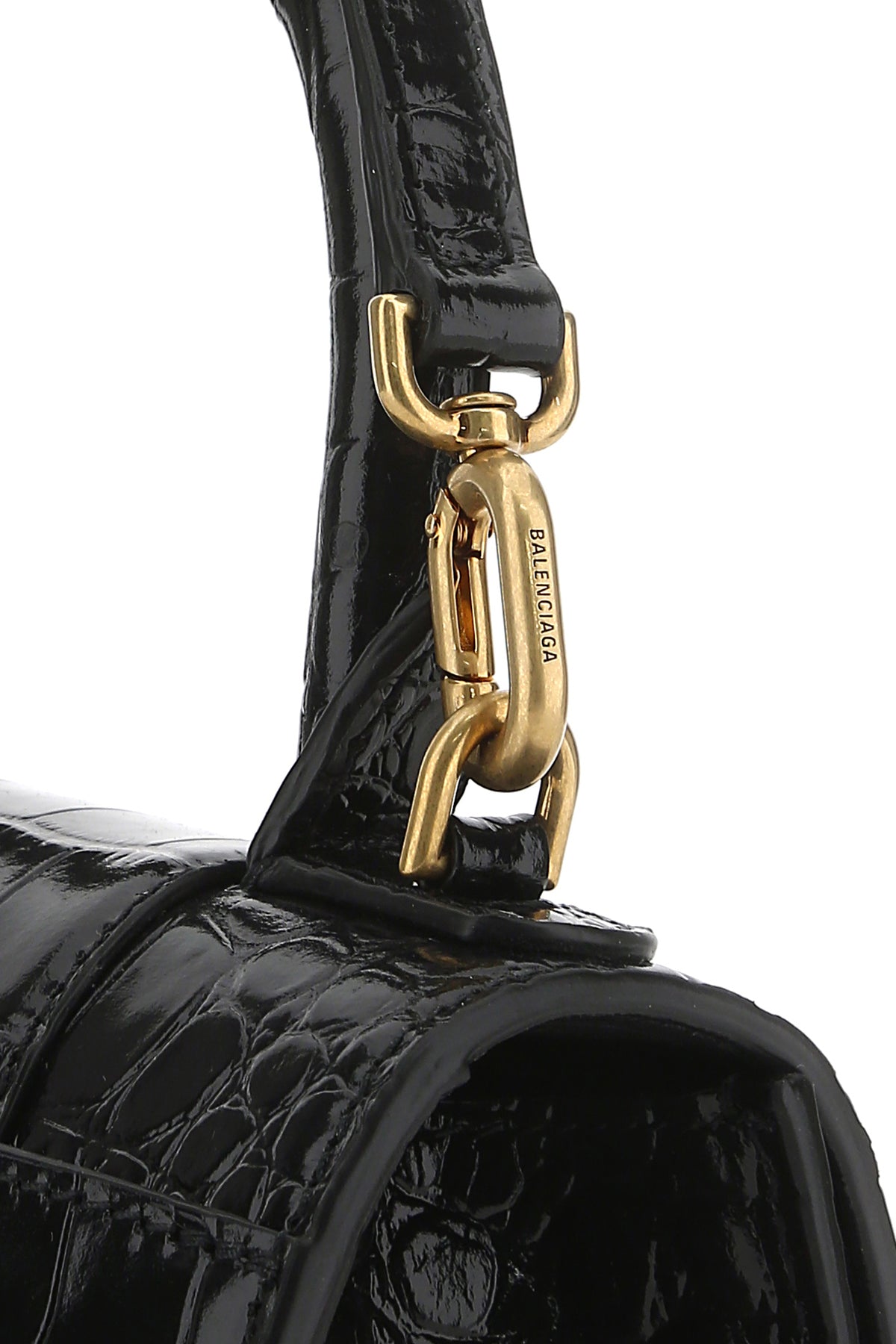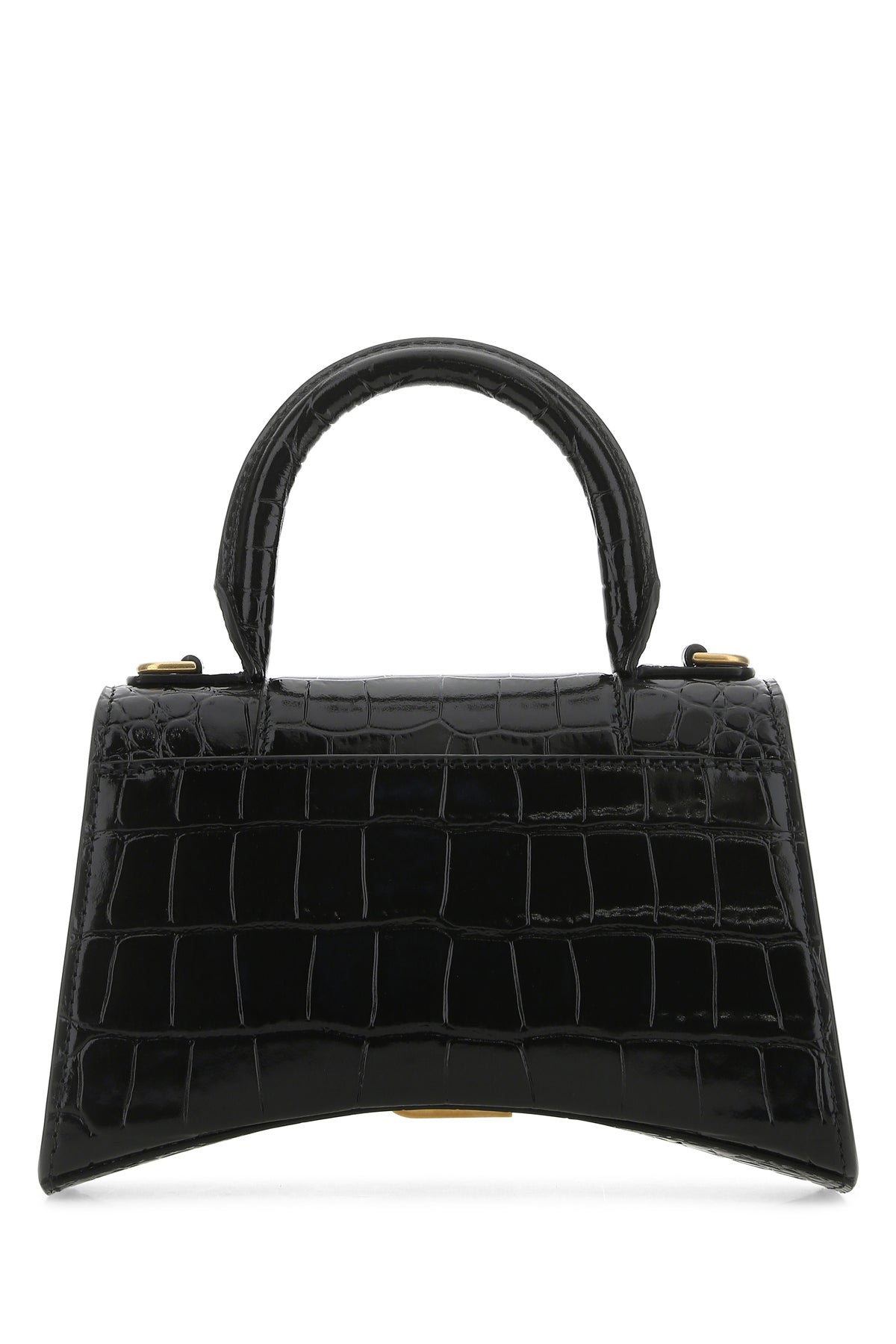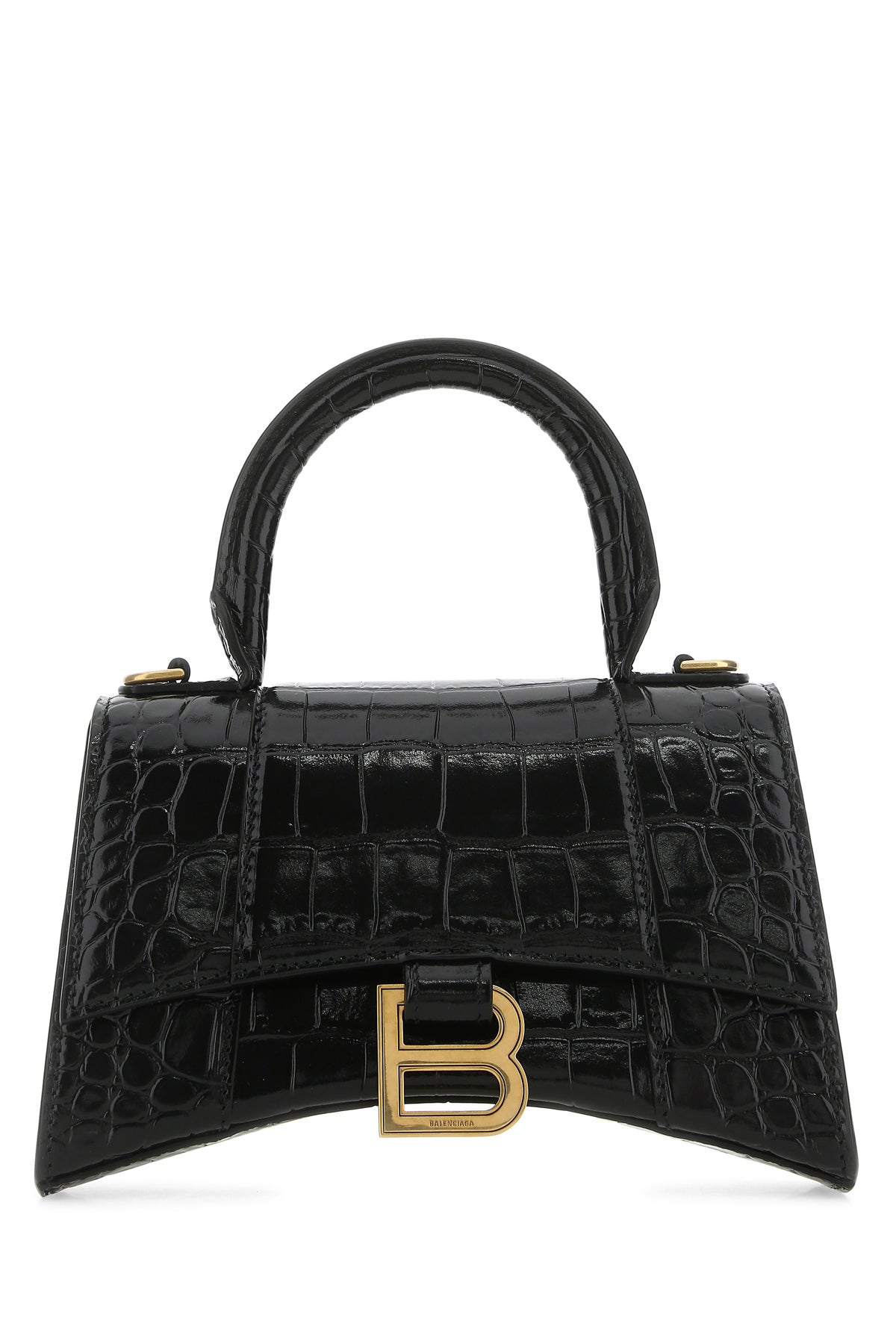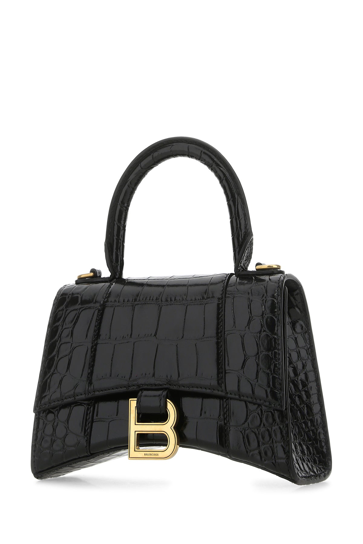 Handbag realized in crocodile motif embossed calf leather enriched by metal B detail at the front.