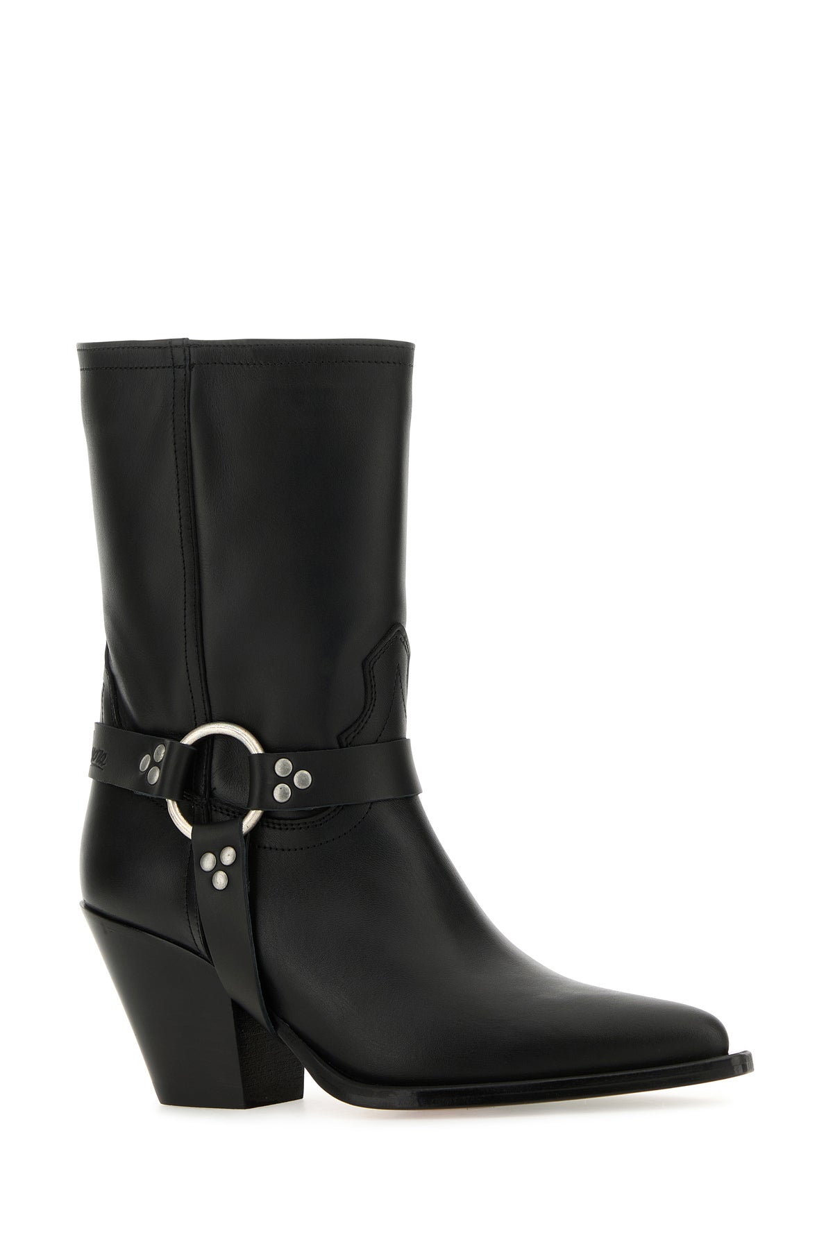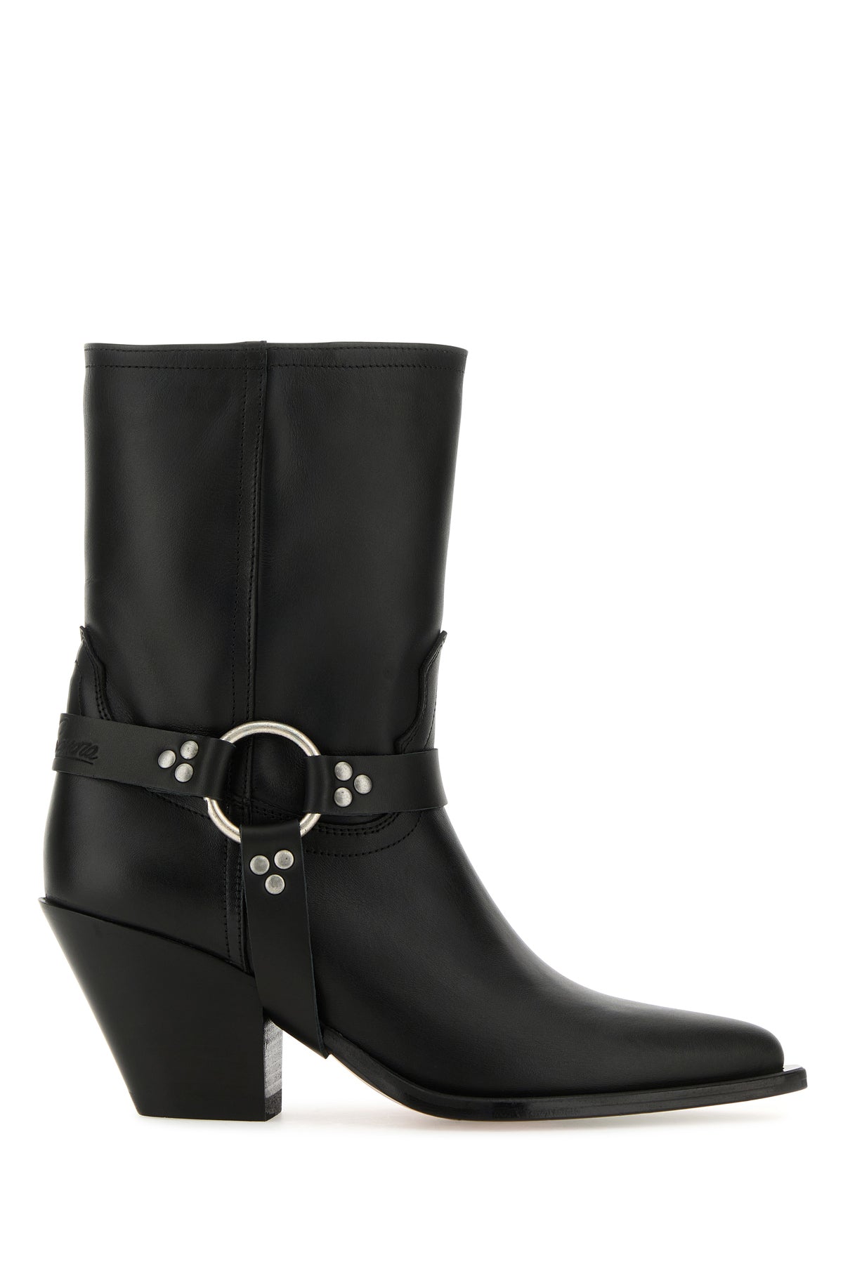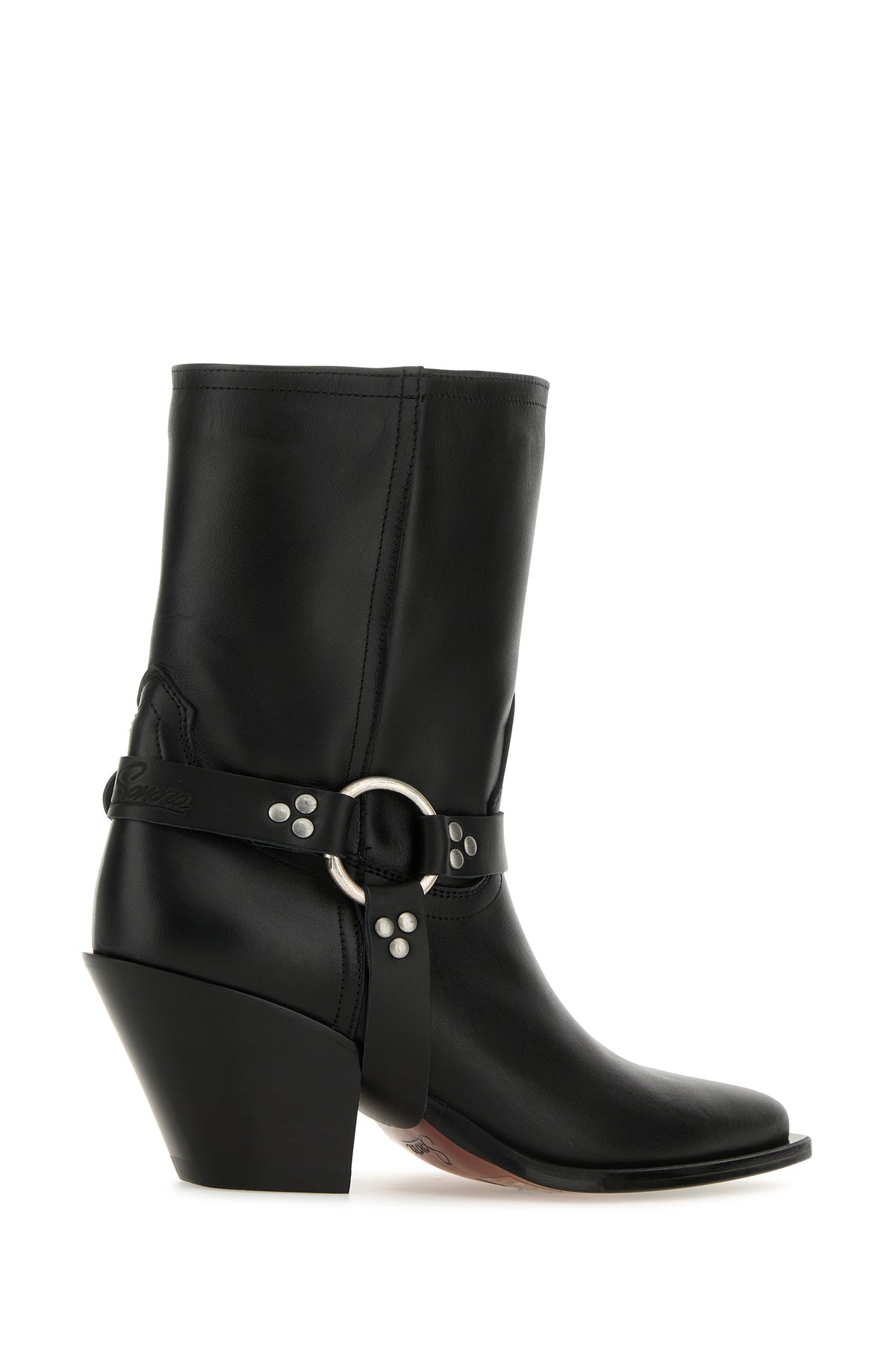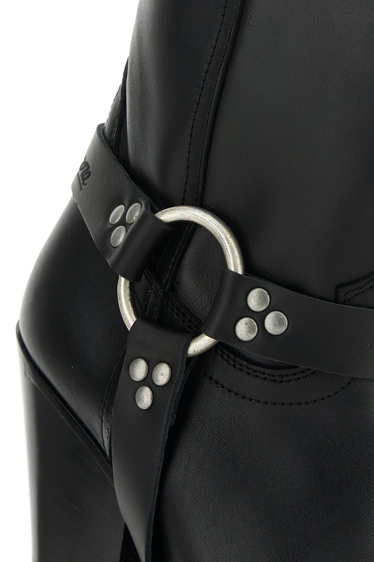 Ankle-boots realized in nappa leather characterized by embossed logo at the back enriched by peculiar strap on the sides.