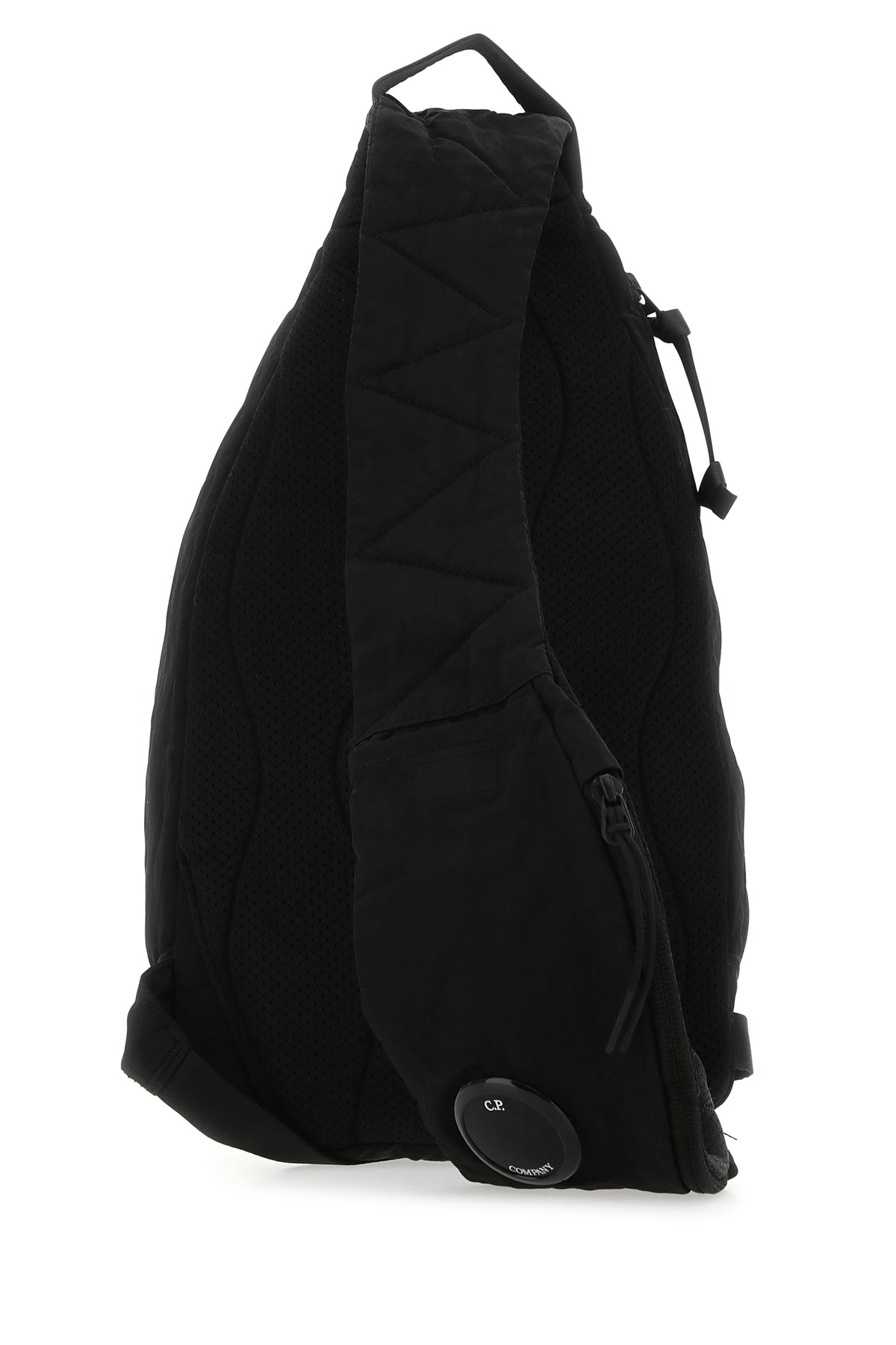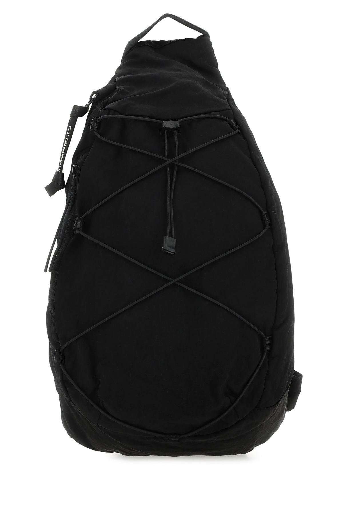 Backpack realized in nylon enriched by tonal logoed patch on the padded shoulder strap.