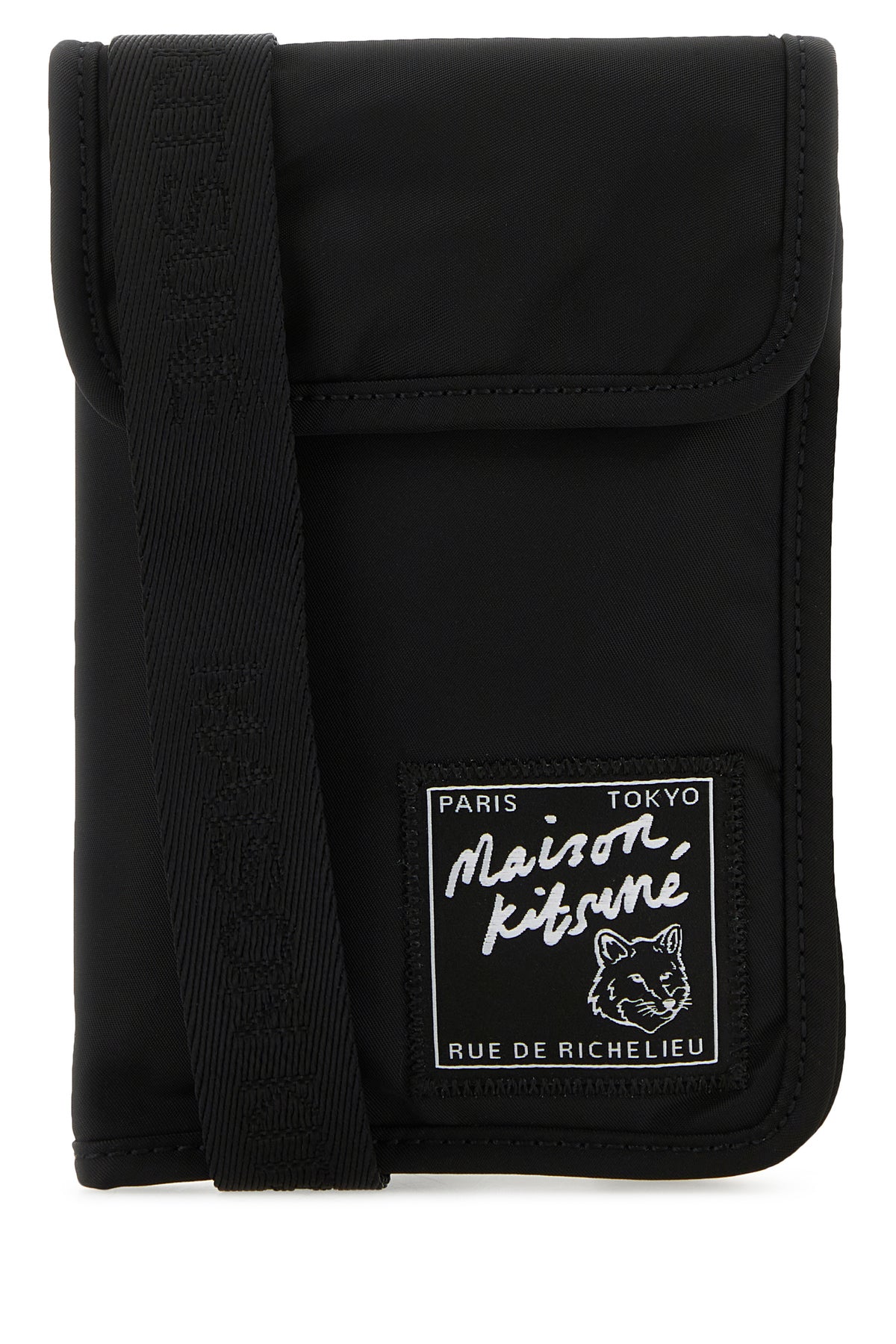 Phone case realized in nylon enriched by Maison Kitsuné Richelieu label at the front.