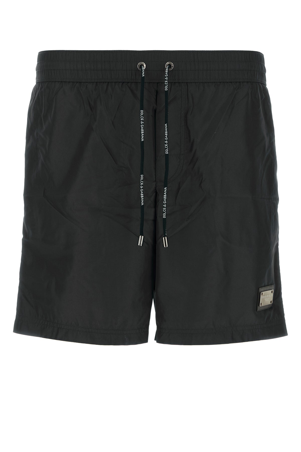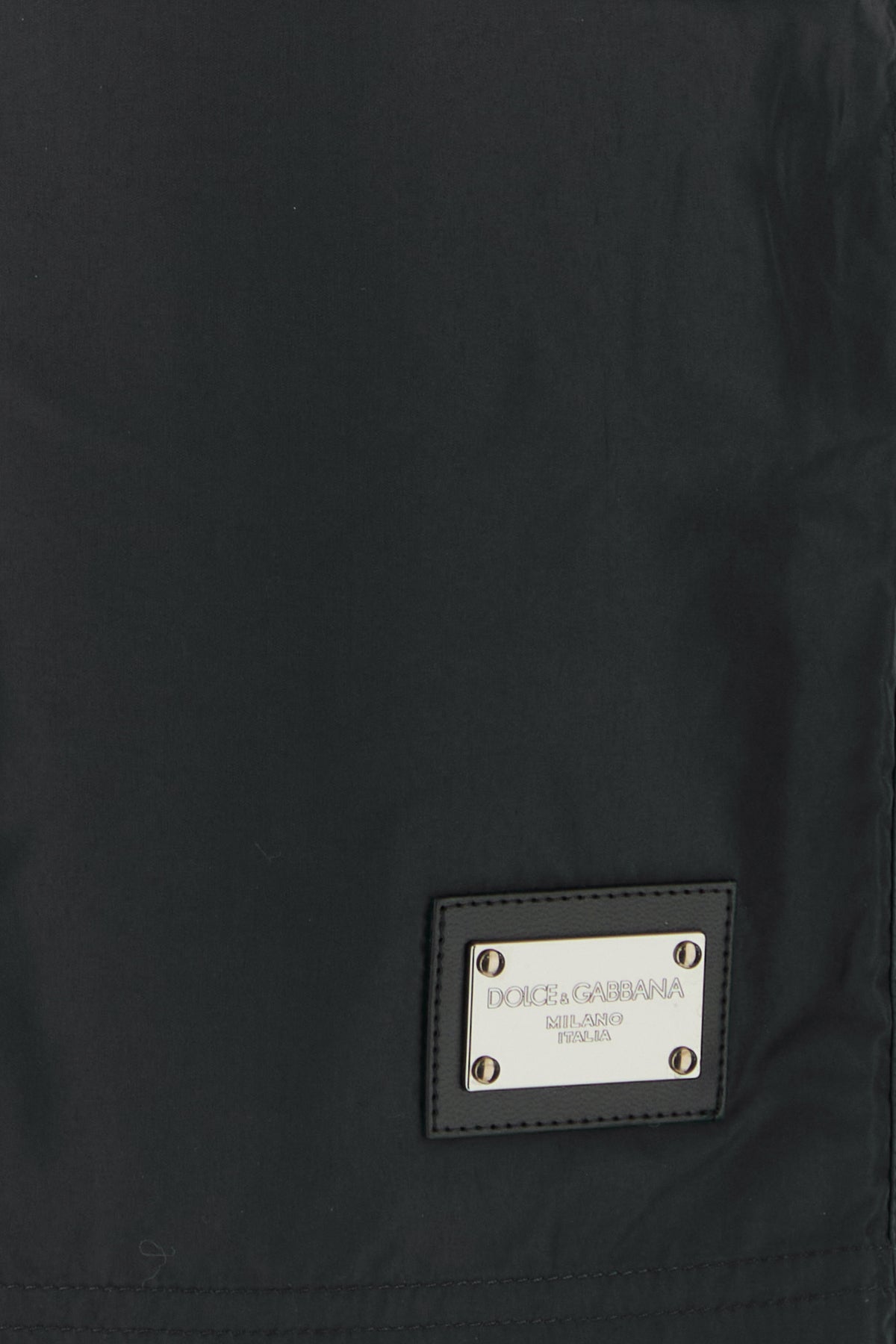 Swimming shorts realized in polyester enriched by logoed metal plate on the hemline.
