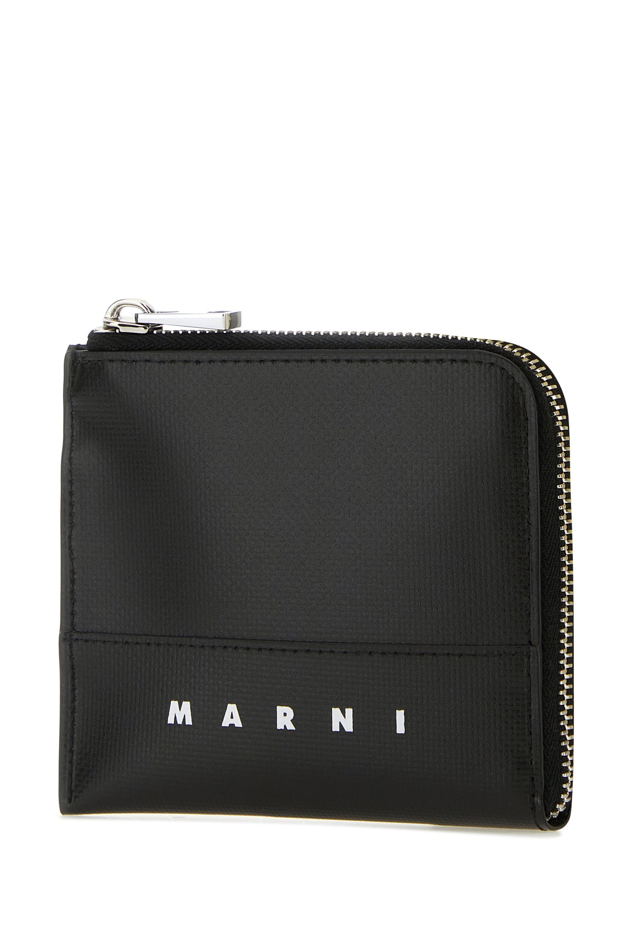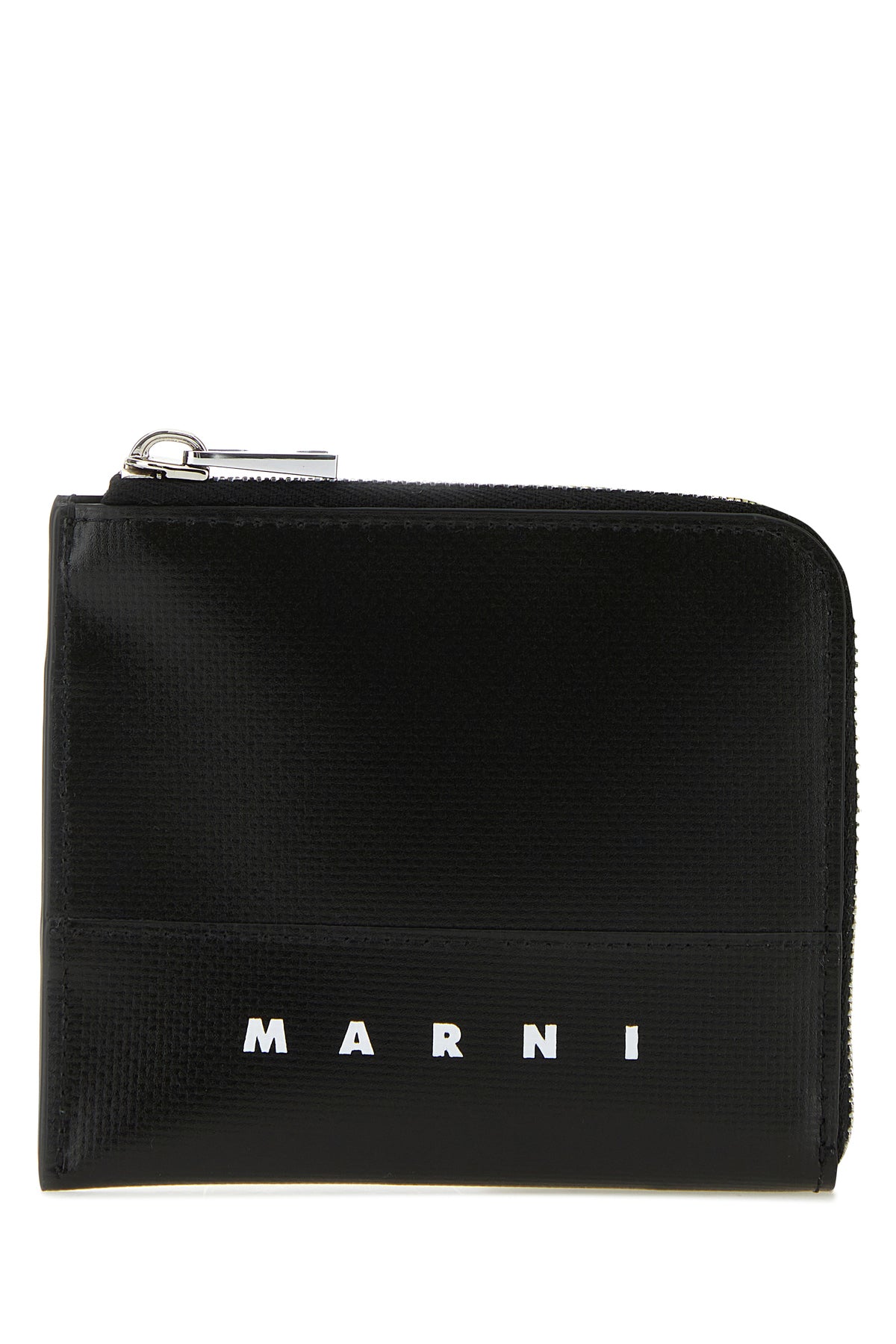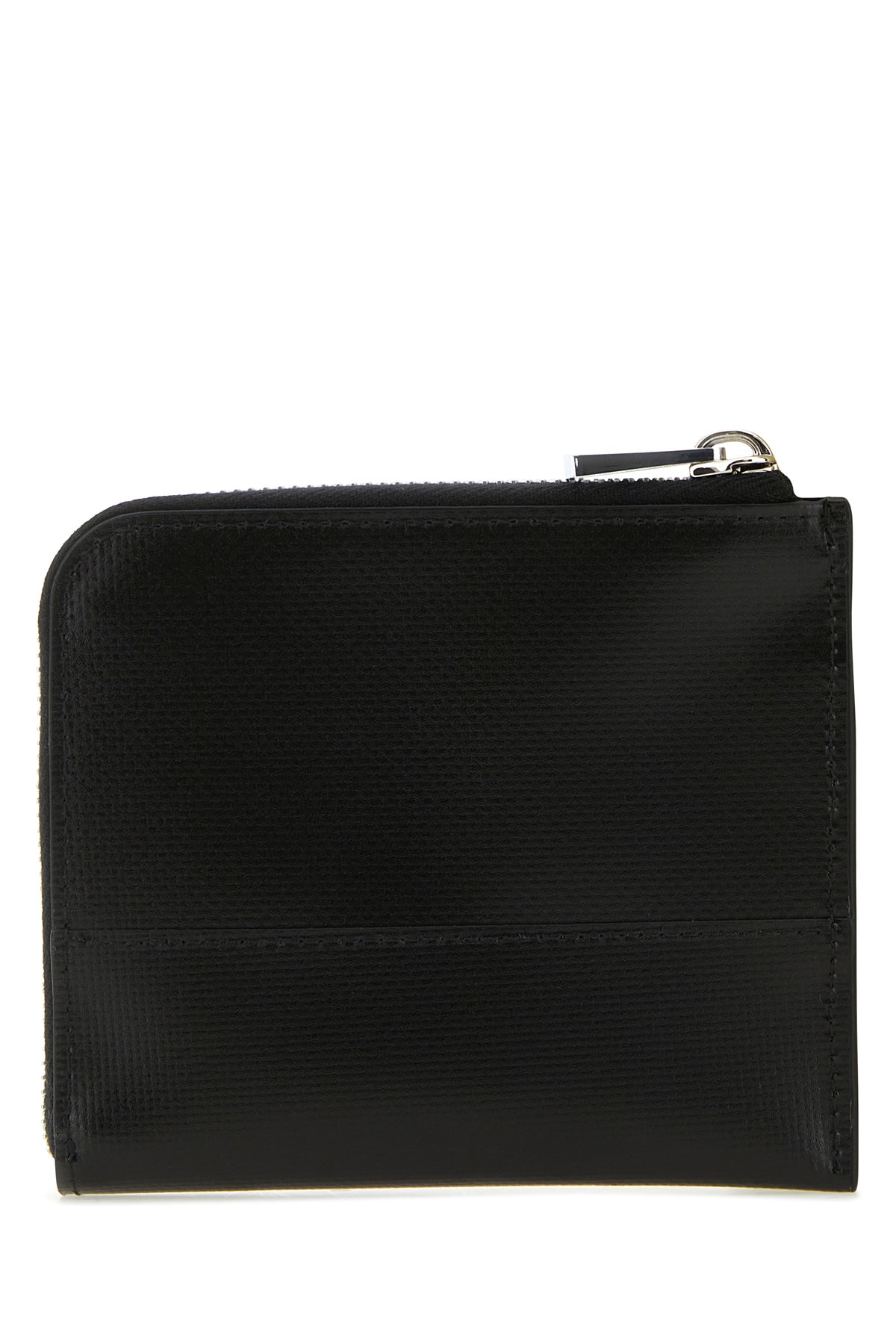 Wallet realized in polyester characterized by contrasting printed logo at the front.